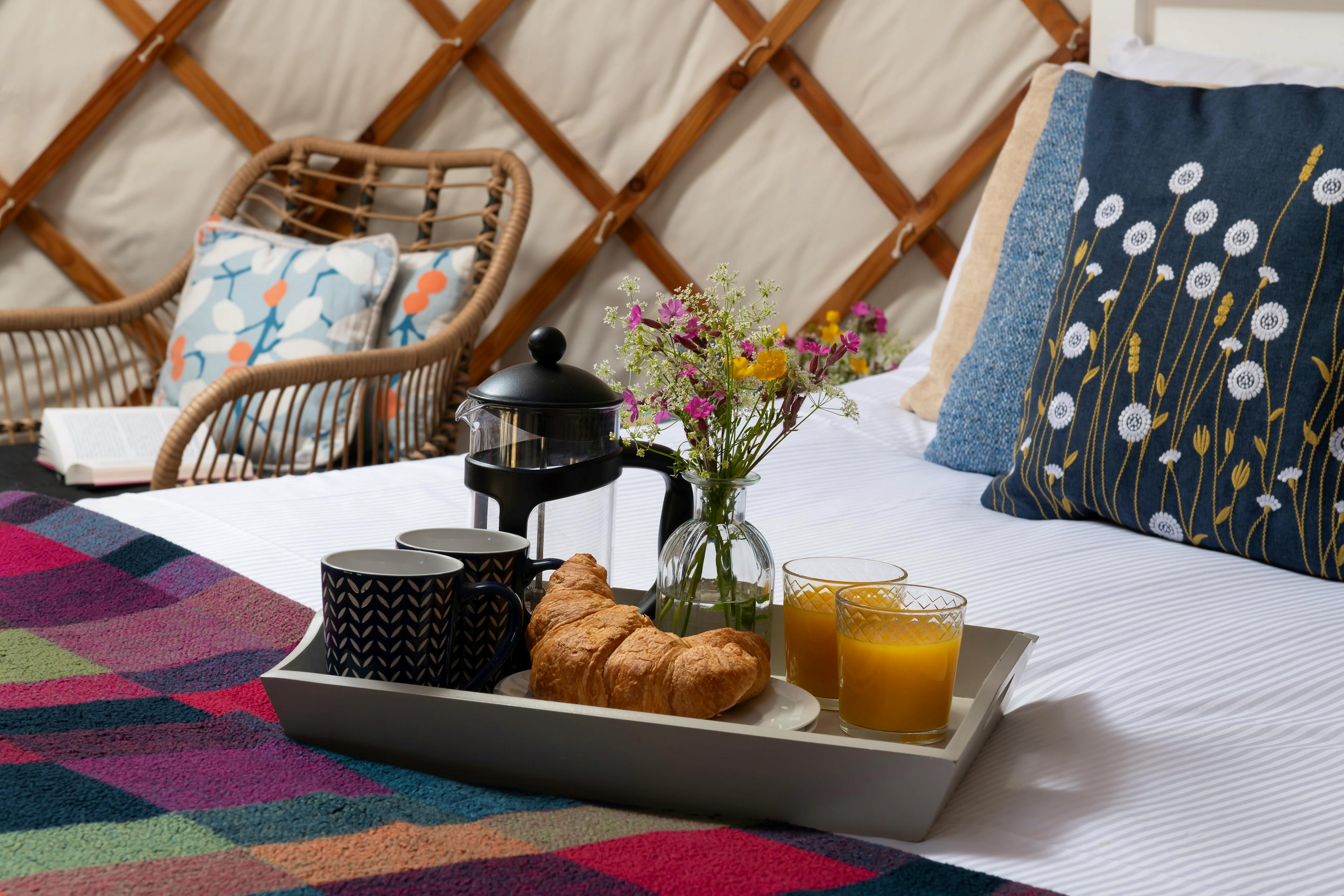 A two night midweek stay ranges from £387 to £419 per stay. A two night weekend (Fri and Sat nights) stay ranges from £421 to £455. This includes a late 4pm Sunday checkout. A three night weekend (Fri to Mon) stay ranges from £558 to £607. The best nightly rates are available on longer stays with a £50 discount applied to a four / five night stays and a £100 discount applied to six or more nights. These discounts are applied per yurt. Exclusive site bookings are available with a saving of £40 compared to booking both yurts individually. Exclusive site bookings include one hot tub only. A second hot tub can be added as an optional extra.