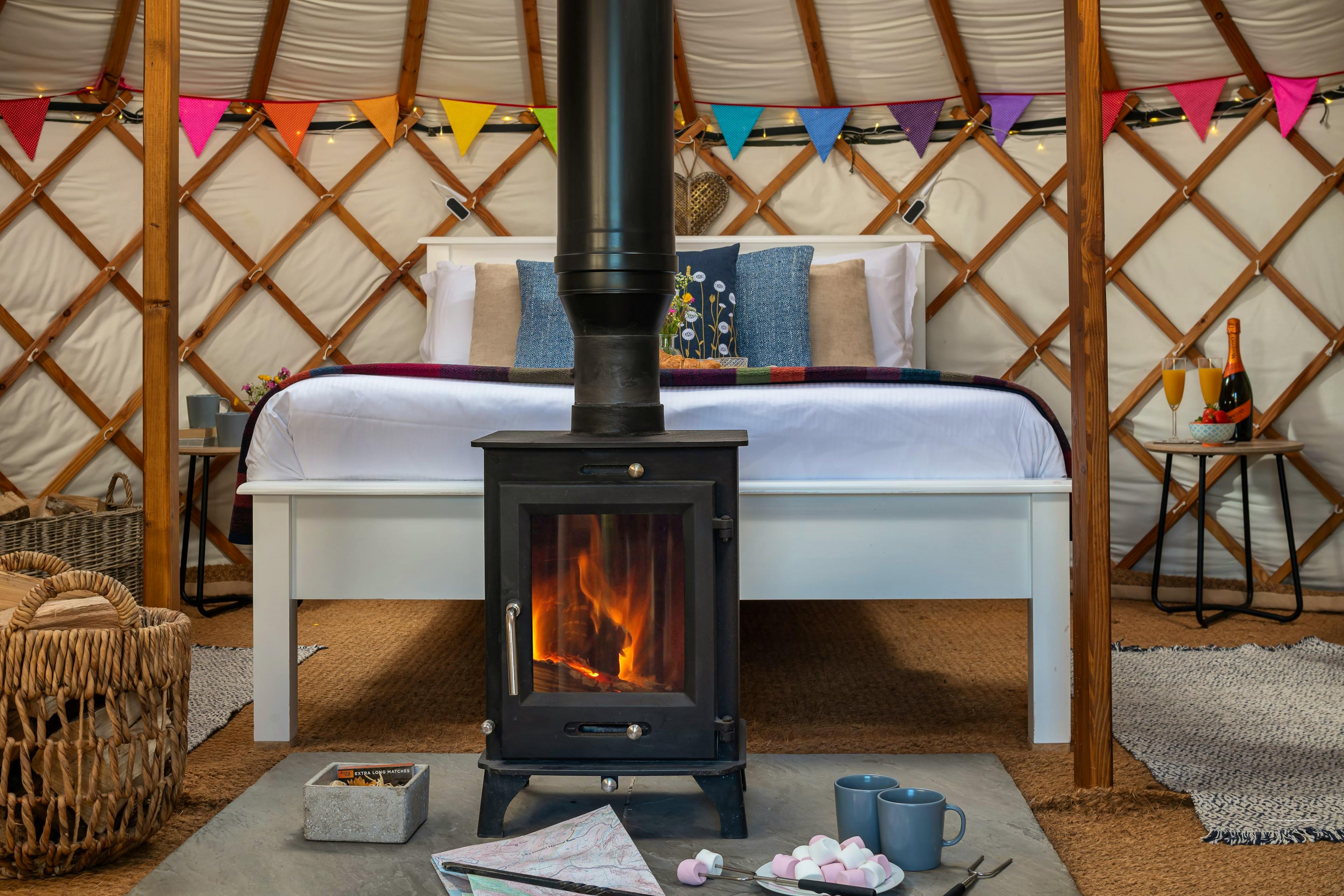 Nestled in the Cumbrian countryside, just a mile away from Hadrian’s Wall, you’ll find two traditional Mongolian-style yurts. These charming hideaways can each sleep up to four guests with log burning stoves to keep you cosy with your first fire laid ready for you. Enjoy the views that stretch as far as the Northern Pennines and the Fells of the Lake District from your private outdoor space. After a long walk along the Hadrian’s Wall Path, relax in the hot tub or fire up the BBQ to get dinner on the go in the outdoor cooking area. As the evening draws in, turn on the fairy lights and gather around the firepit and enjoy the stars. The 18ft yurts are situated 30 metres away from each other and have screens to provide a bit of privacy while you’re relaxing in your outdoor space. This means you can enjoy the space without being disturbed, however, they’re close enough to be sociable if you want to hire both yurts for a trip away with friends. Inside each, you’ll find a cosy space with a double bed, freshly made up with crisp white linen and the option of two extra single beds. There’s a breakfast bar and a high tech cool box to keep your food and drinks cold. In the evenings, the wood burning stove will keep you toasty and there are extra logs provided. When it’s time to go to bed, you’ll be able to stargaze through the skylight. You’ll find the private composting toilet and a hot shower with environmentally-friendly shampoo and body wash in separate cabins nearby. There's a covered cooking area with a BBQ and a gas hob in your own private outdoor space. There’s also a picnic bench for enjoying your meals alfresco or you can always head inside to eat at the breakfast bar if it’s getting a bit chilly. Soak up the views of the surrounding countryside as you relax in the hot tub before toasting marshmallows late into the evening over the firepit with a mug of hot chocolate. The yurts are located near a protected Dark Sky area so on clear nights, the stars put on quite a show. The yurts are located just a mile from Hadrian’s Wall Path, a 20-minute walk if you fancy exploring on foot and are not far from the longest exposed section of the wall itself. You’ll also find the forts of Birdoswald, Housesteads and Vindolanda nearby with museums and plenty of Roman artefacts to discover. There’s more history to discover at Lanercost Priory and Carlisle Castle, the latter being where Mary Queen of Scots was imprisoned. There’s plenty of walking and cycling to be done in the area but if you fancy venturing a little further and tackling a few fells, the Lake District national park is less than an hour away.