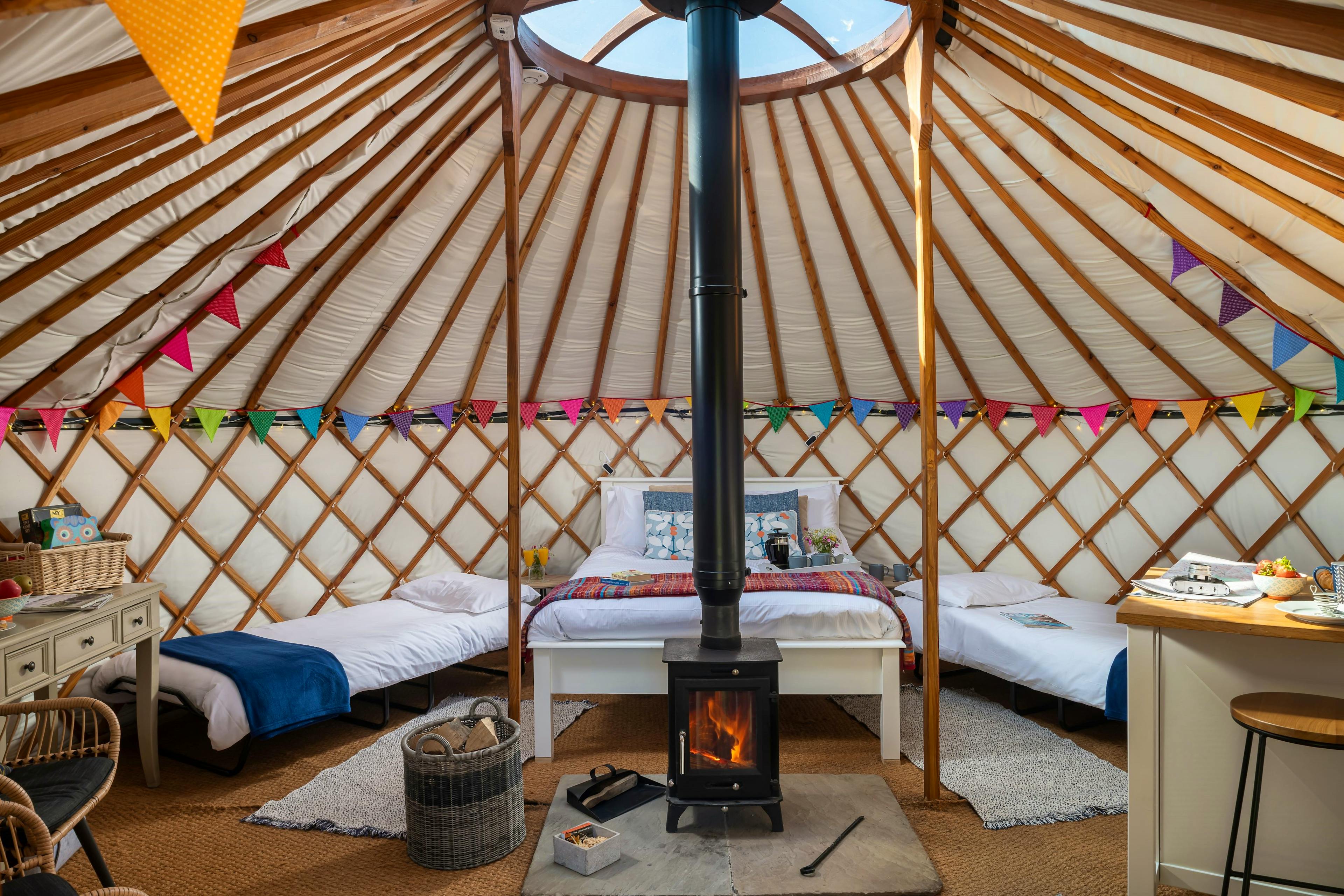 These delightful Mongolian-style yurts, complete with proper beds and wood burners, are perfect for couples, families and friends looking for a peaceful escape surrounded by nature.