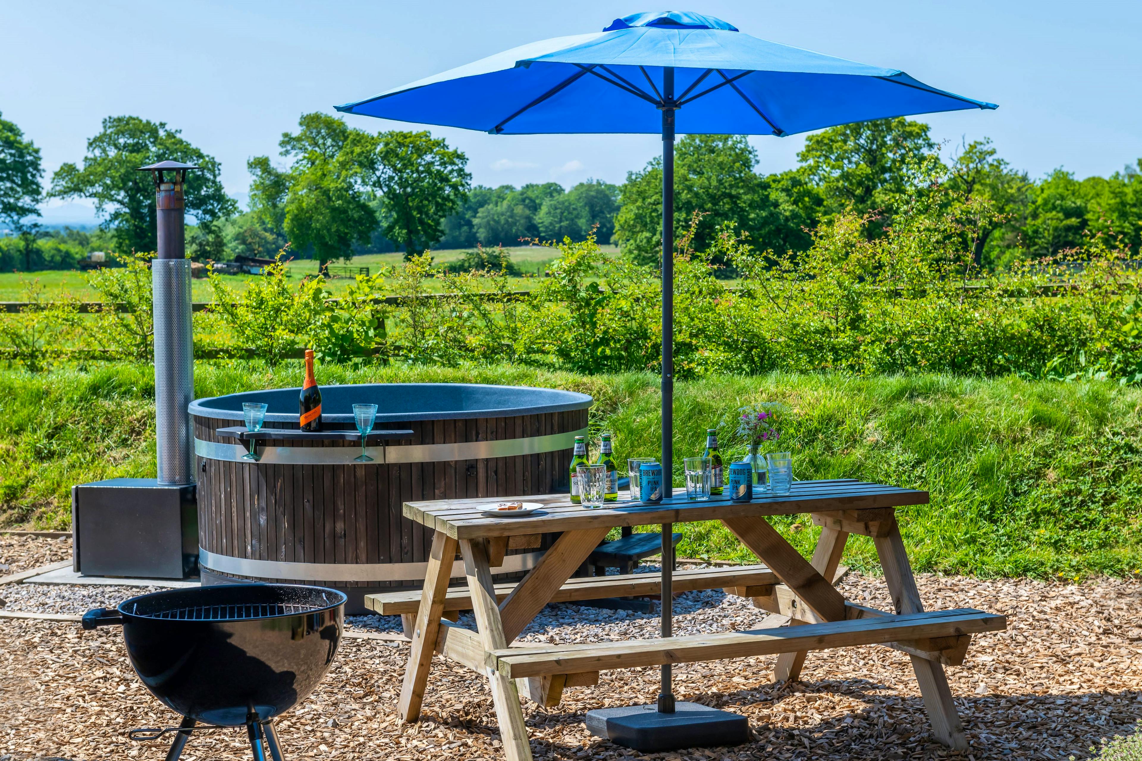Sit back and soak up the view from the comfort of the hot tub while you enjoy a glass of something.