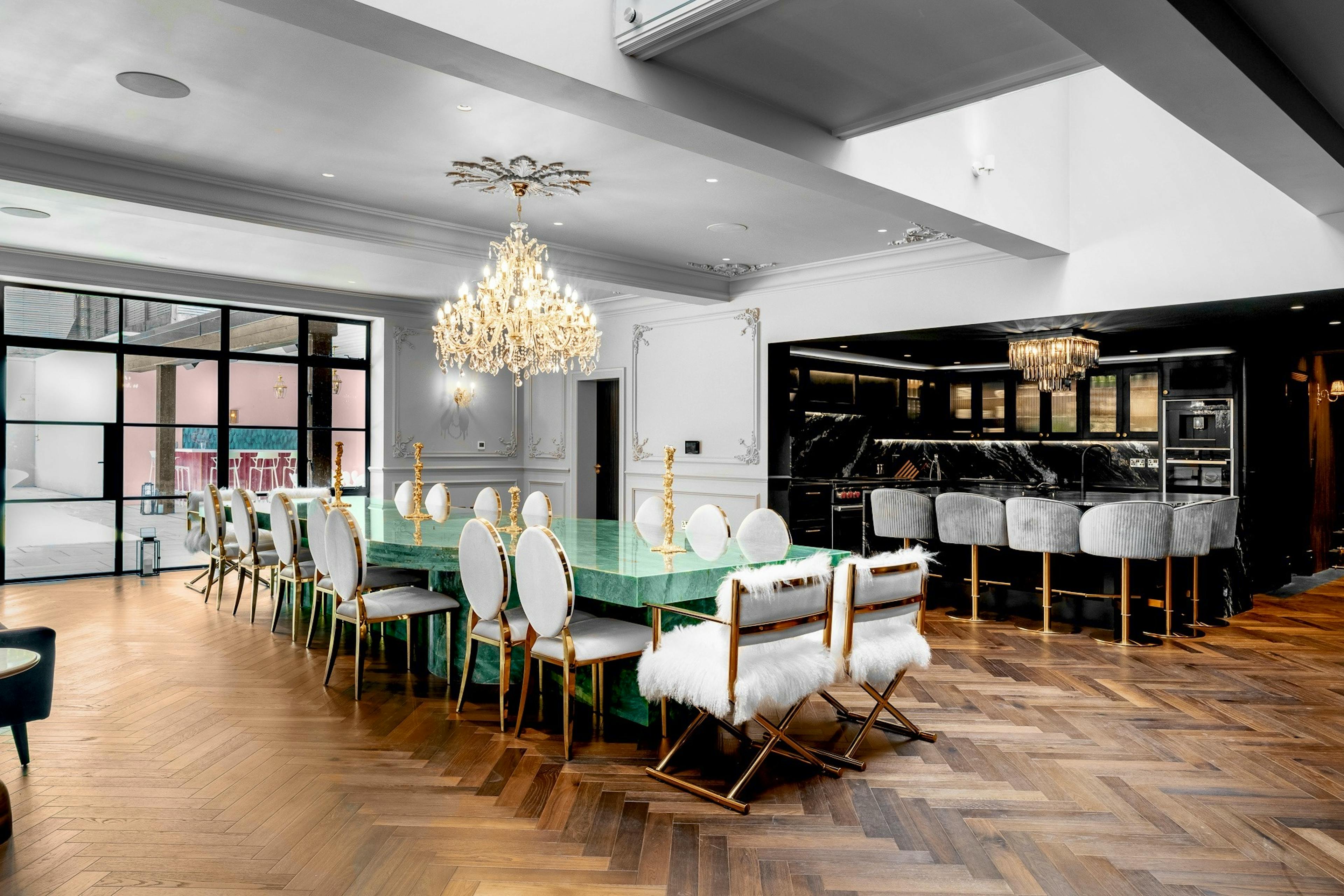 Hanks House is one of those rare places that stops you in your tracks the moment you step inside. A boldly luxurious, joyfully indulgent house in the heart of the Cotswolds, it has been designed as a celebration of colour, texture and global inspiration, drawing on Parisian elegance, Moroccan flair and a whole lot of personality. This is not a stay that blends quietly into the background – it’s a place made for memorable weekends, milestone celebrations and gathering your favourite people under one very glamorous roof. The house sleeps up to 14 guests across seven individually designed double bedrooms, each with its own distinctive character. From dramatic colour palettes to playful wallpaper and statement lighting, every room feels thoughtfully curated rather than themed. The master suite is particularly impressive, with views over the pool, a fireplace, walk-in dressing room and a beautifully indulgent ensuite. There’s also a separate annex above the gym that offers extra privacy, complete with a sitting room, kitchen area, super-king size bed and a freestanding bath for long, languid soaks. Living spaces are made for socialising. There’s a cinematic snug for movie nights, a seriously cool hidden bar that’s guaranteed to become the heart of the party and a collection of spaces that invite you to move effortlessly from daytime lounging to evening cocktails. Whether you’re sinking into sofas with a glass of wine or cranking up the music and letting the night unfold, the house has a wonderfully relaxed but polished flow. Outside, the indulgence continues. A heated swimming pool takes centre stage, flanked by sun loungers and outdoor seating for lazy afternoons and golden-hour drinks. There’s also an outdoor bar, perfect for summer evenings, while inside you’ll find a fully equipped gym, sauna and massage room for those mornings when wellness feels just as important as last night’s fun. Set just outside Chipping Norton, Hanks House puts you within easy reach of classic Cotswolds villages, country pubs and rolling countryside walks. Spend your days exploring honey-stone market towns or simply stay put and make the most of the house itself – because once you arrive, you may find it very hard to leave.