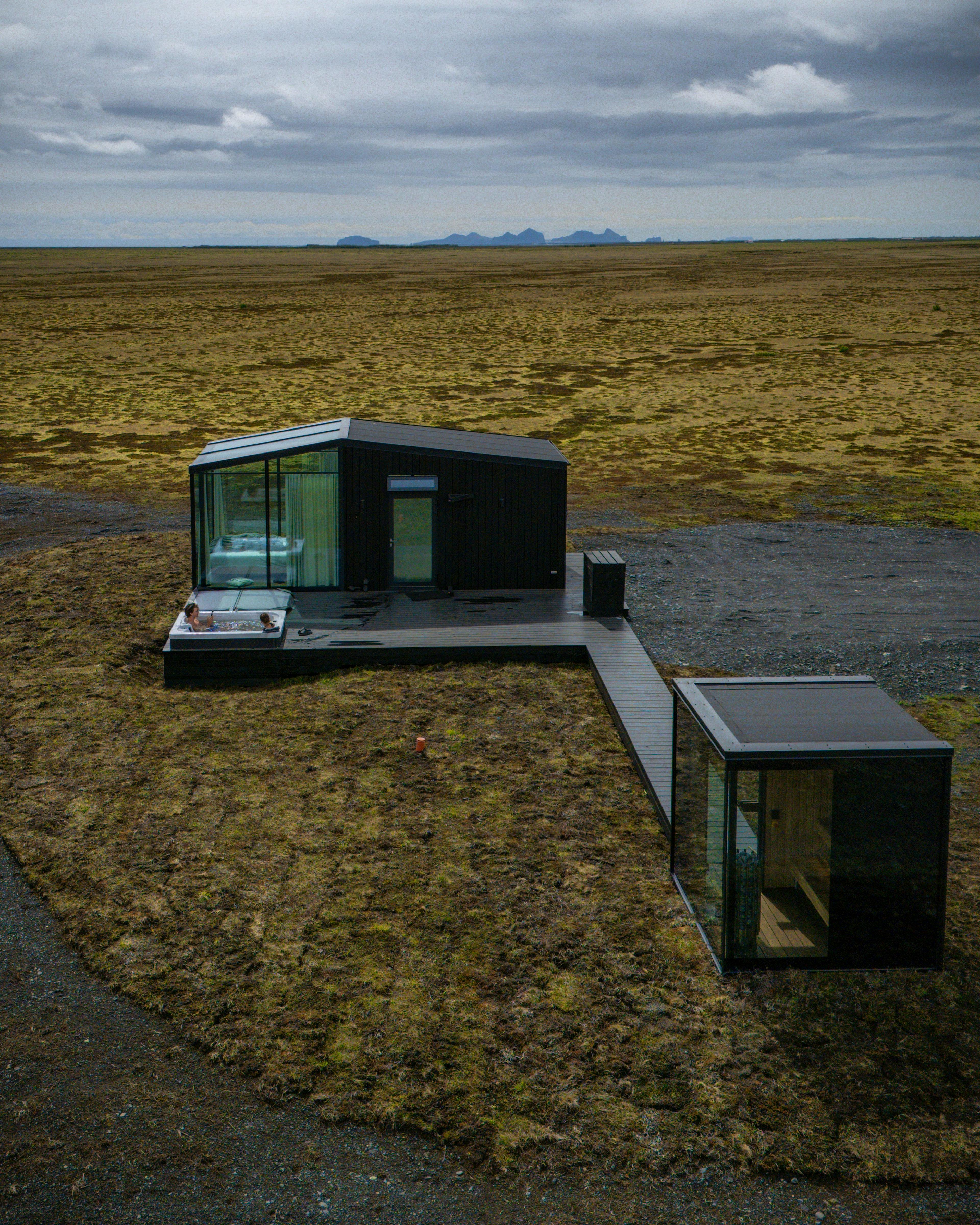 Floor-to-ceiling windows and a private hot tub allow guests to soak up panoramic views and the magic of Iceland - including the Northern Lights - from the comfort of the lodge.