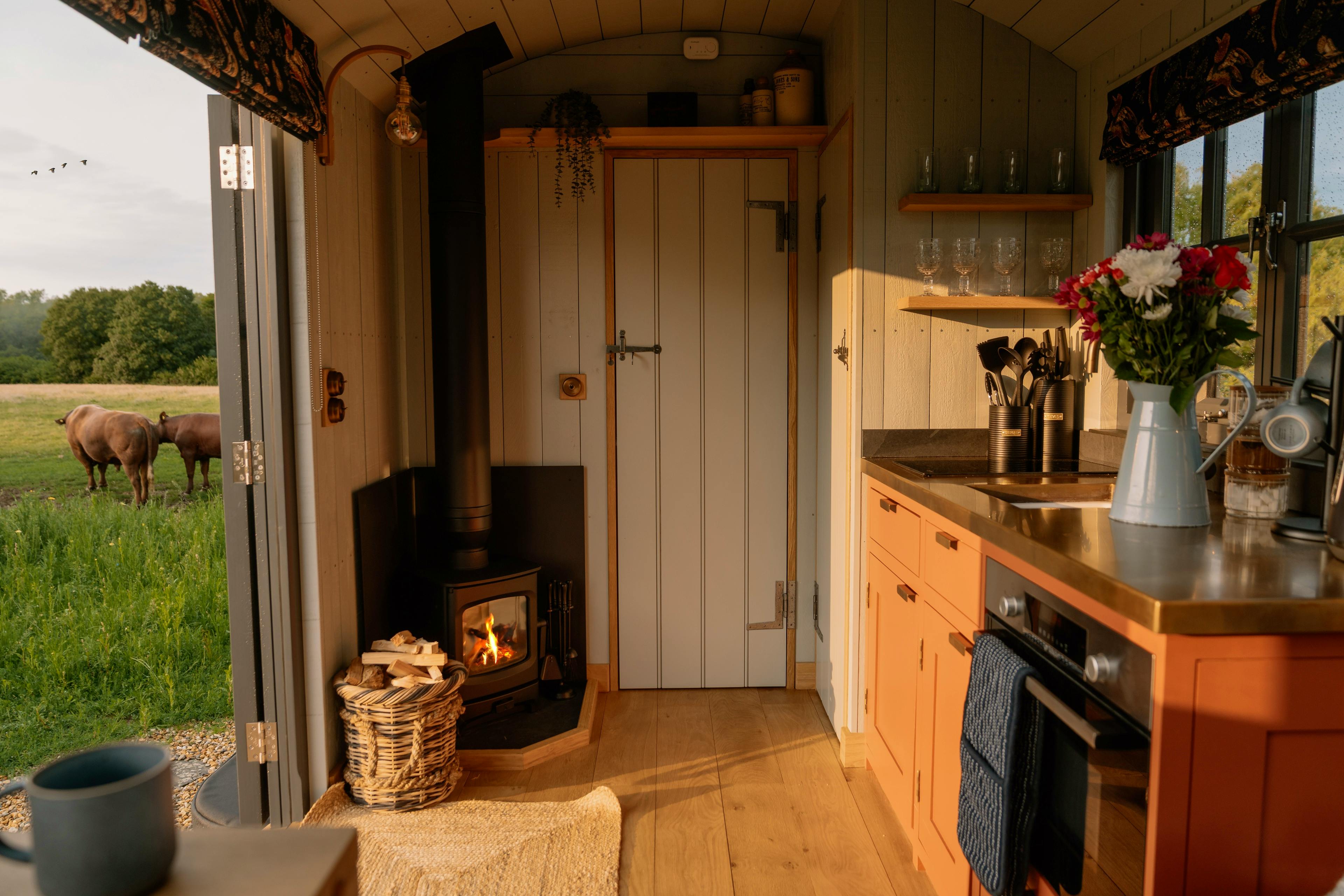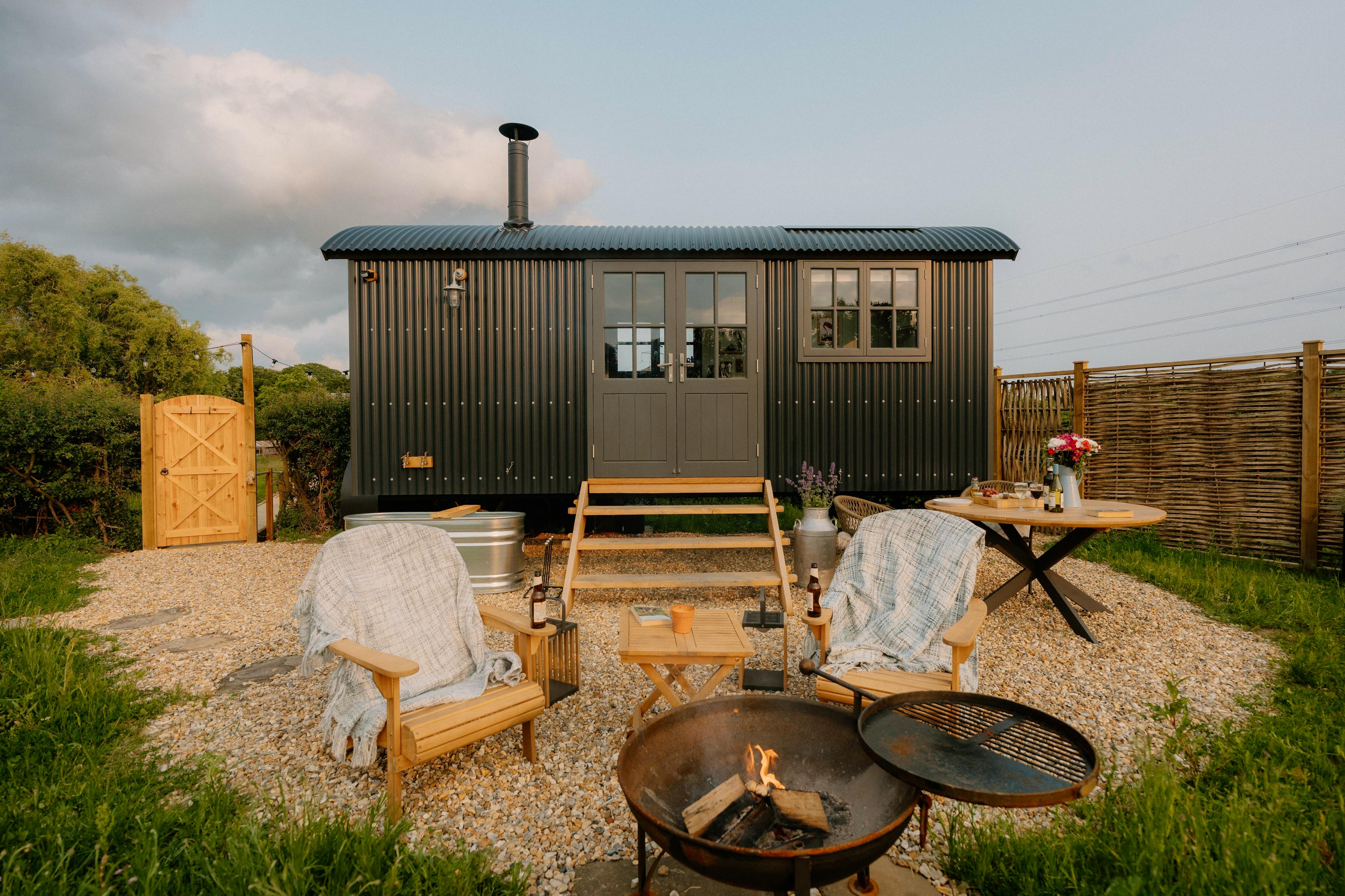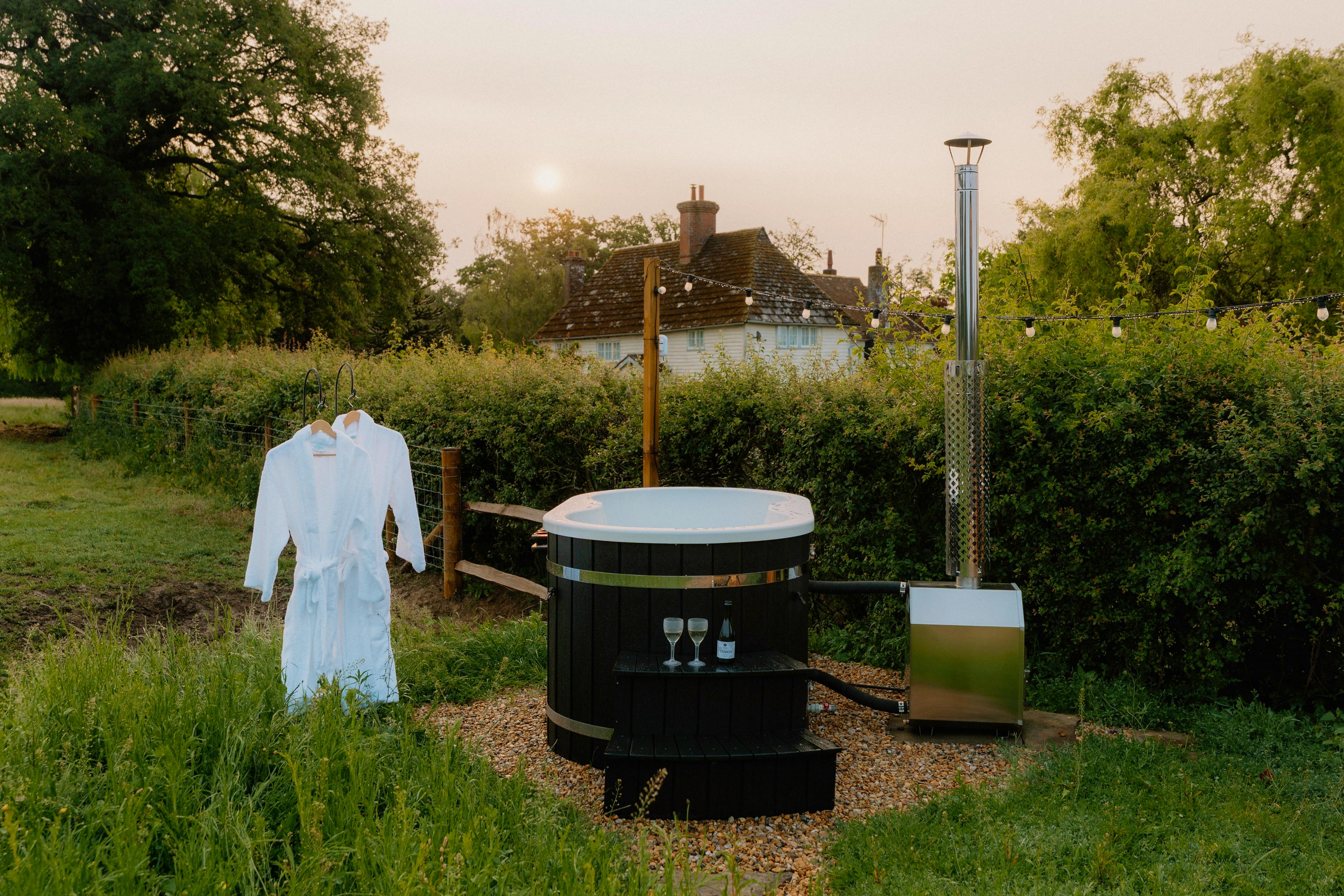 This charming shepherds hut offers couples or pairs of friends a fabulous stay on a working farm with a private hot tub and luxurious outdoor bath.