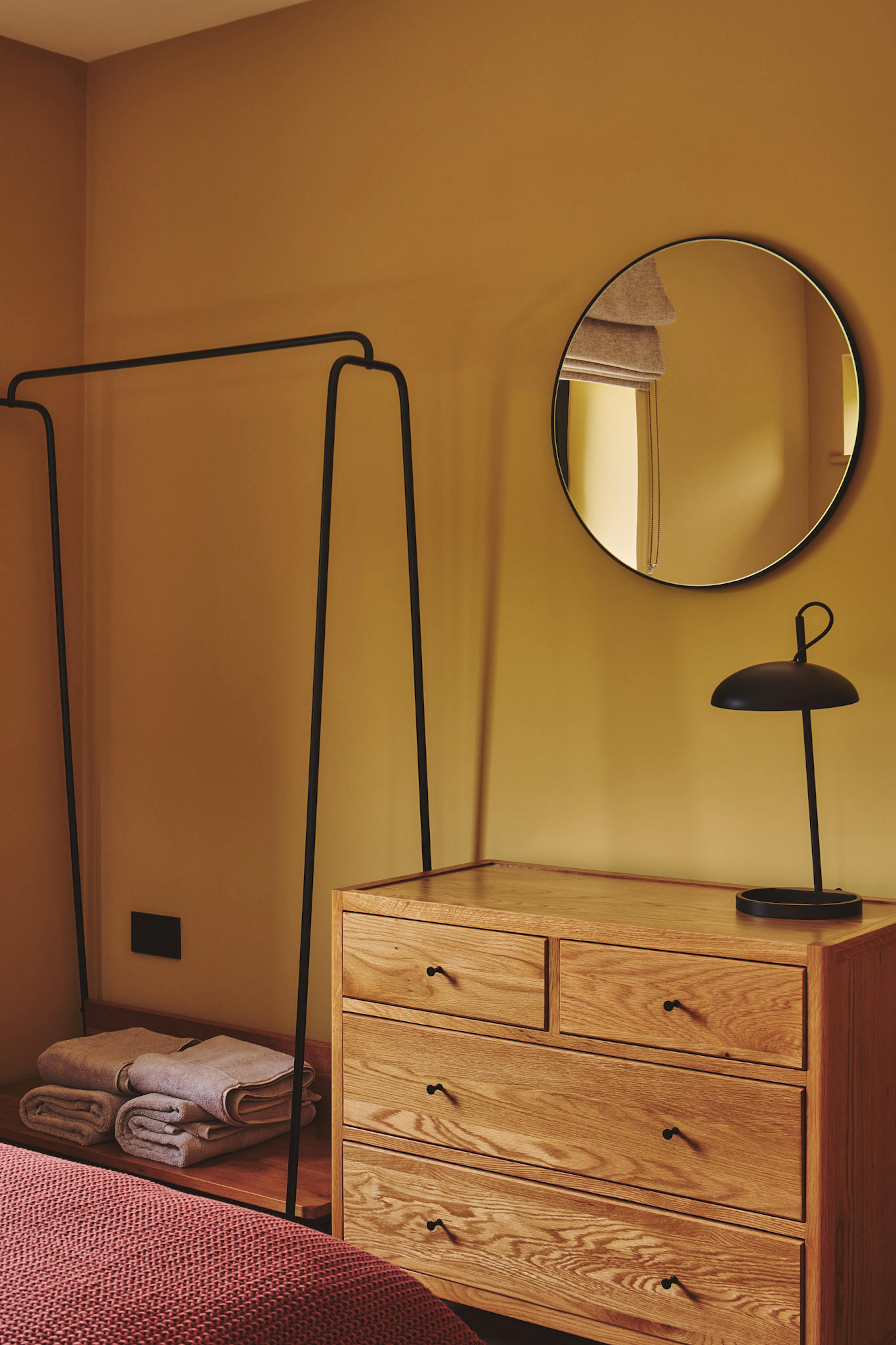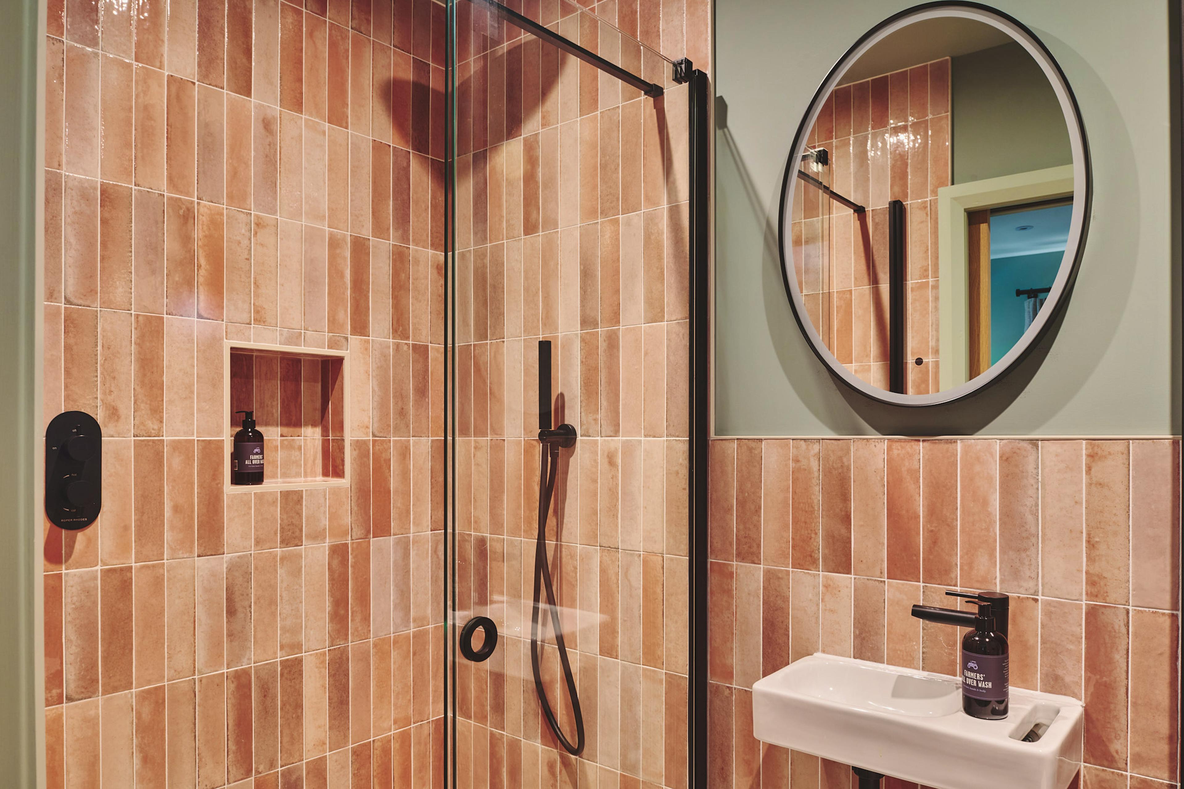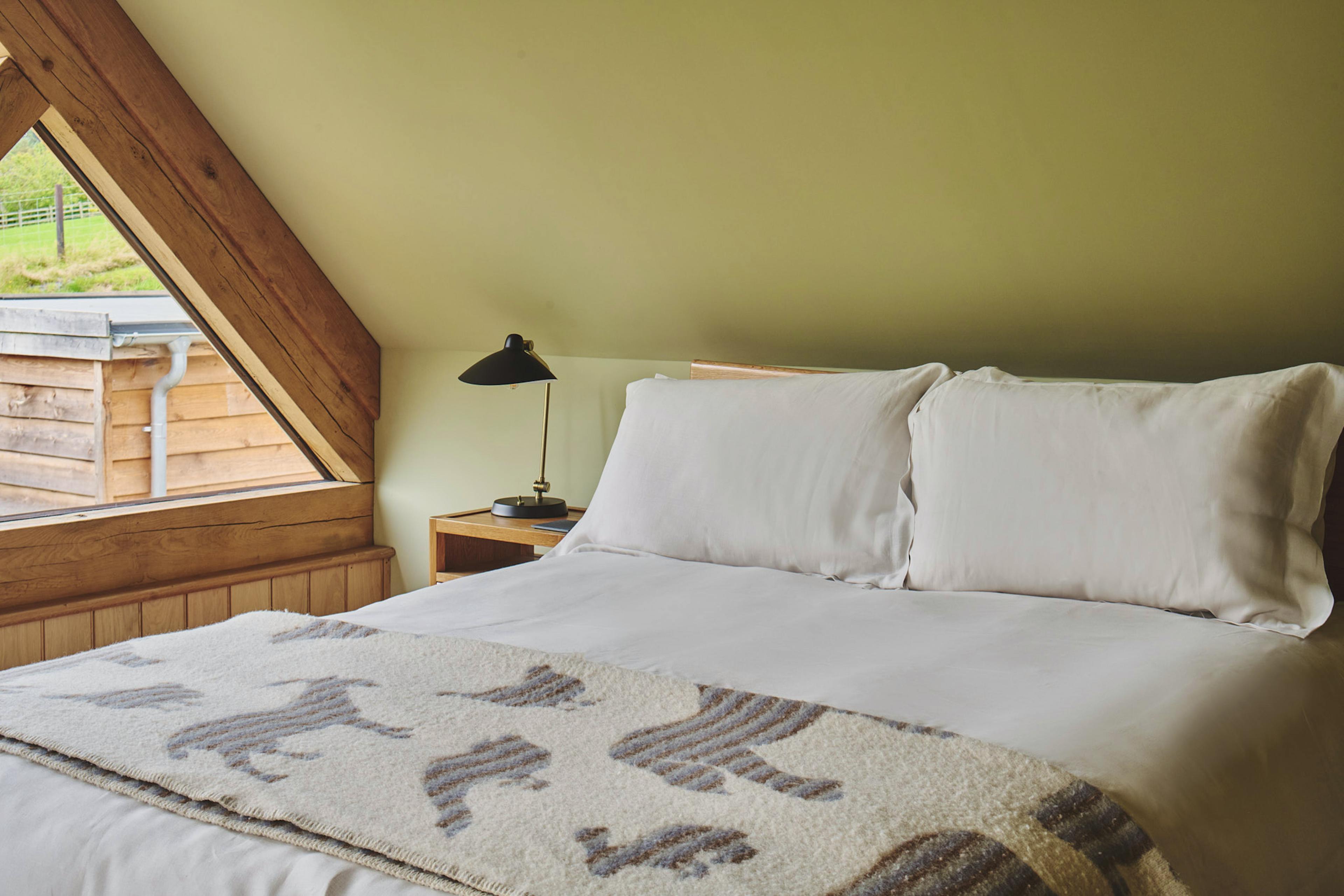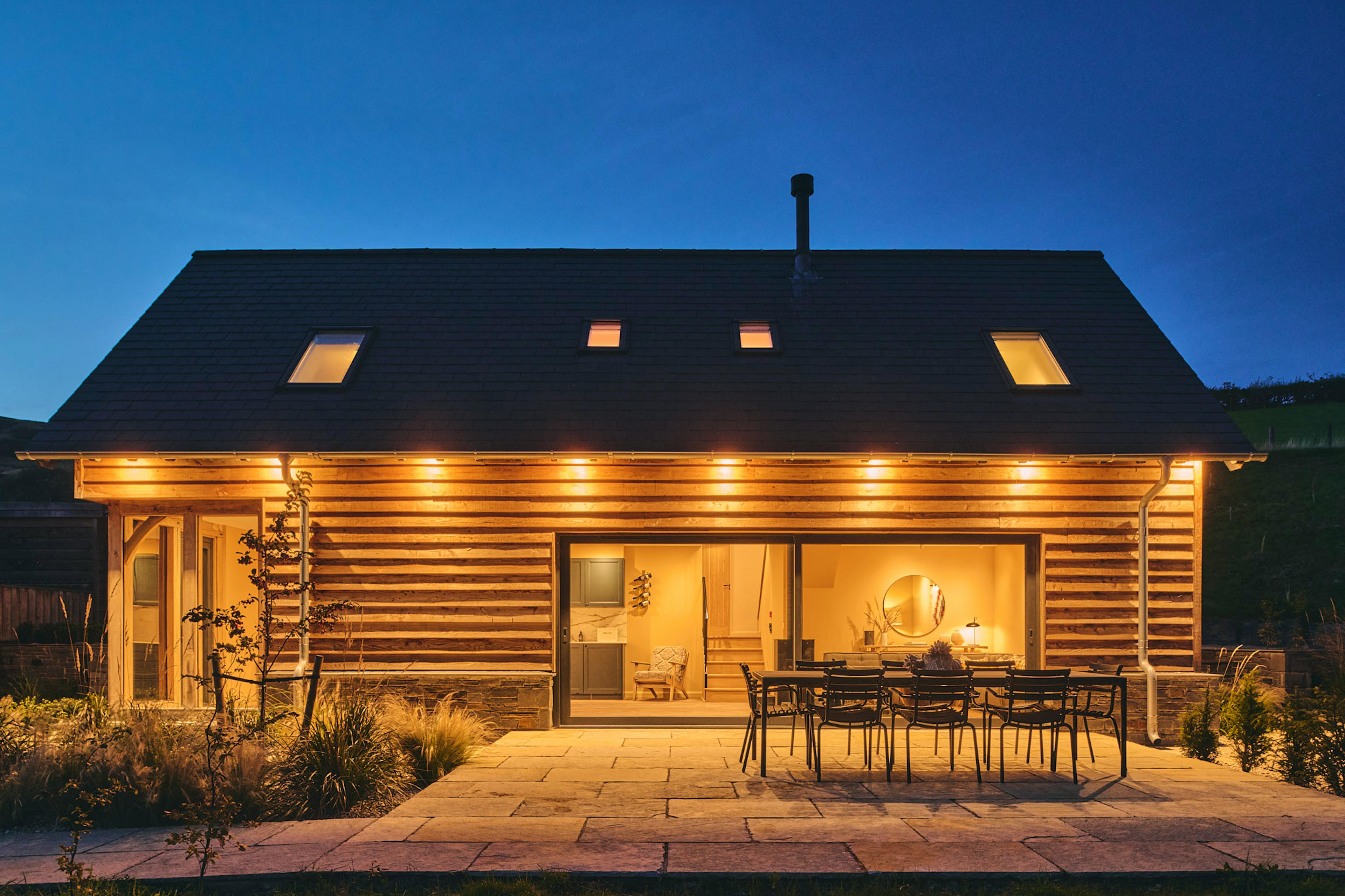 Tucked into a tranquil Welsh valley, Hay Barn is a beautifully crafted oak-framed retreat made for slow mornings, lingering evenings and unrushed time together. From the moment you pass through the striking pivot front door, the barn opens into a luminous living space where natural textures, contemporary design and panoramic countryside views set the tone for a restorative group getaway. Every window seems to frame a different scene of rolling meadows, the river and the ancient hills beyond, inviting you to pause and breathe in the quiet. Inside, the open-plan layout blends sociable comfort with refined style. The kitchen, inspired by the iron oxide tones of local Welsh stone, is fully equipped for group feasts, while high-spec Scandinavian lighting dances across the oak beams and architectural details. Move easily between the sleek dining area and the warm, welcoming living space where a wood-burning stove and an L-shaped sofa create a cosy hub for evenings in. Original artworks by Su France and a Ukrainian woollen wall hanging add character at every turn, giving the whole space a thoughtful, design-led feel. Five king size bedrooms are spread across the barn, each one spacious, calming and subtly individual. Three sit at mid-level with easy access, all with ensuite bathrooms featuring Mandarin Stone pink tiles, sage vanities and Edward Bulmer natural paints. Two further bedrooms on the upper floor enjoy elevated views across the landscape, one with a full-height picture window that perfectly frames the hills and fills the room with soft morning light. Bedroom two even offers direct access to the garden – a lovely touch for those who like to step straight into the fresh Welsh air. Step outside and the connection to nature deepens. Welsh larch cladding and Corten details help the building settle into its landscape, while a gravel garden planted entirely with grasses leads to a stone terrace framed by native trees. This is where mornings stretch lazily over coffee, lunches drift into afternoons and alfresco dinners linger long into dusk at the 10-seater table. With only the sounds of the countryside around you – the river, the breeze, maybe the splash of an otter or sight of a vole in the water – this is a place where time moves gently. When you’re ready to explore, rural Mid Wales delivers in every direction. Wander peaceful footpaths right from the door, follow woodland trails or take a short drive to the shores of Llyn Clywedog for wildlife spotting and gentle walks along the reservoir. With the market towns of Llanidloes and Machynlleth close by, culture, history and great local food are easy to reach, yet you’ll always look forward to returning to the calm embrace of Hay Barn.