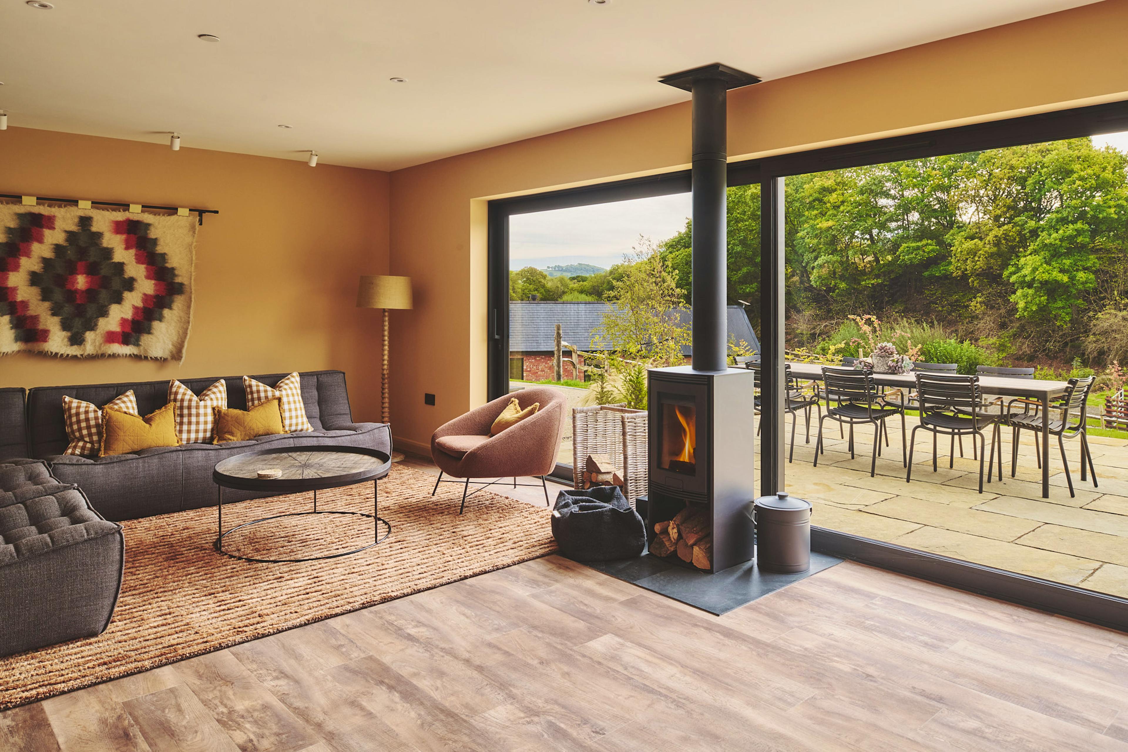 Relax in the warm and sociable open-plan living space, complete with a wood-burning stove and design-led interiors.