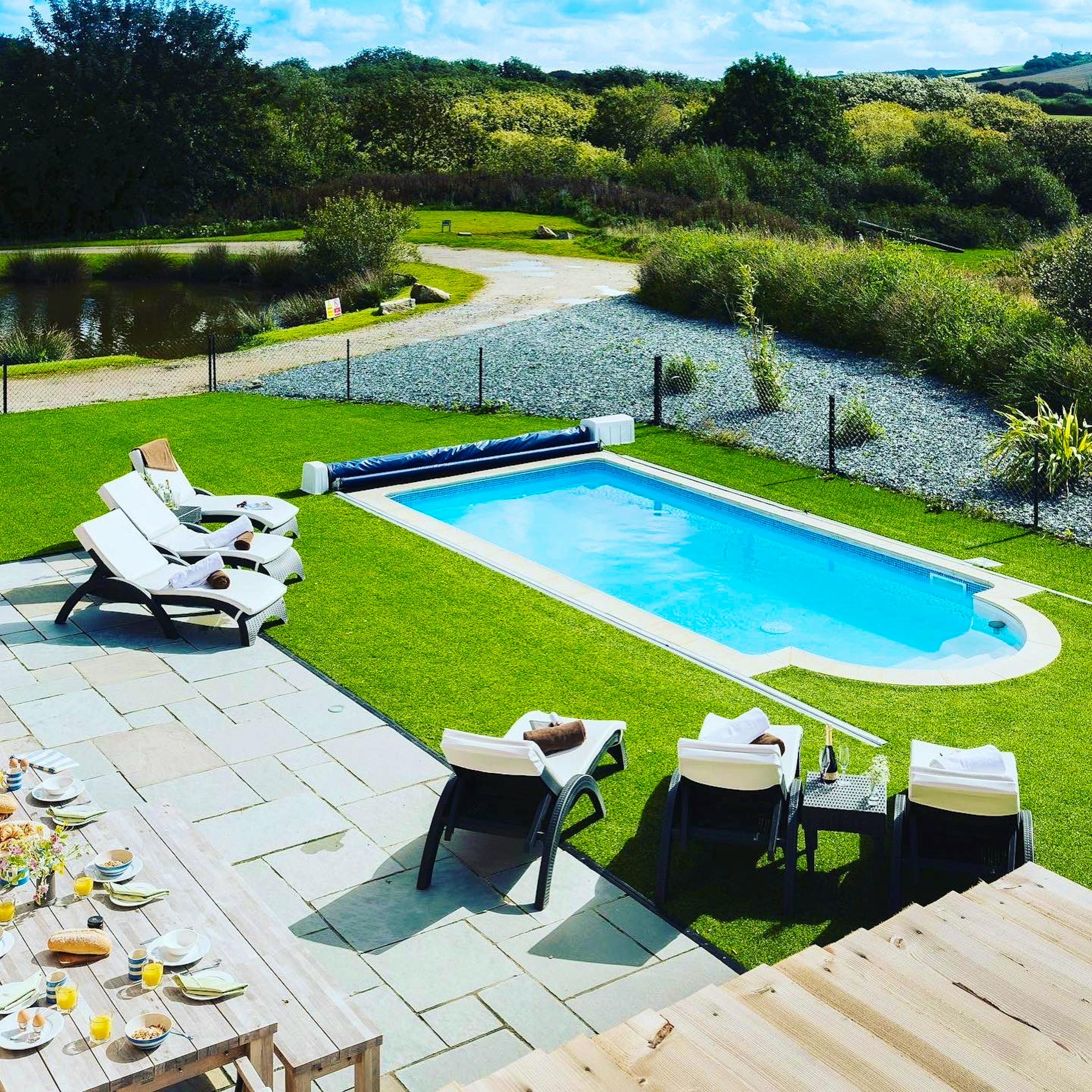 When the sun is shining, head outside for a dip in the pool, a session in the hot tub and sauna or get lunch going on the Green Egg BBQ.