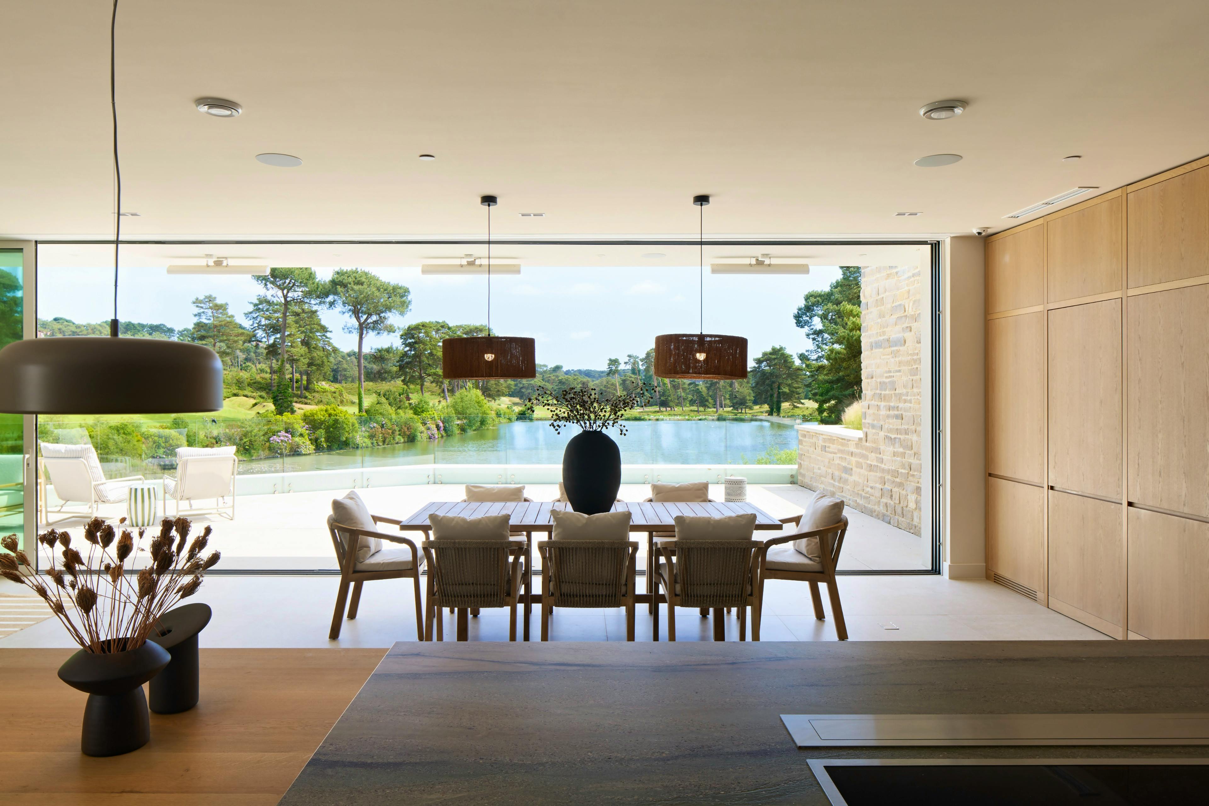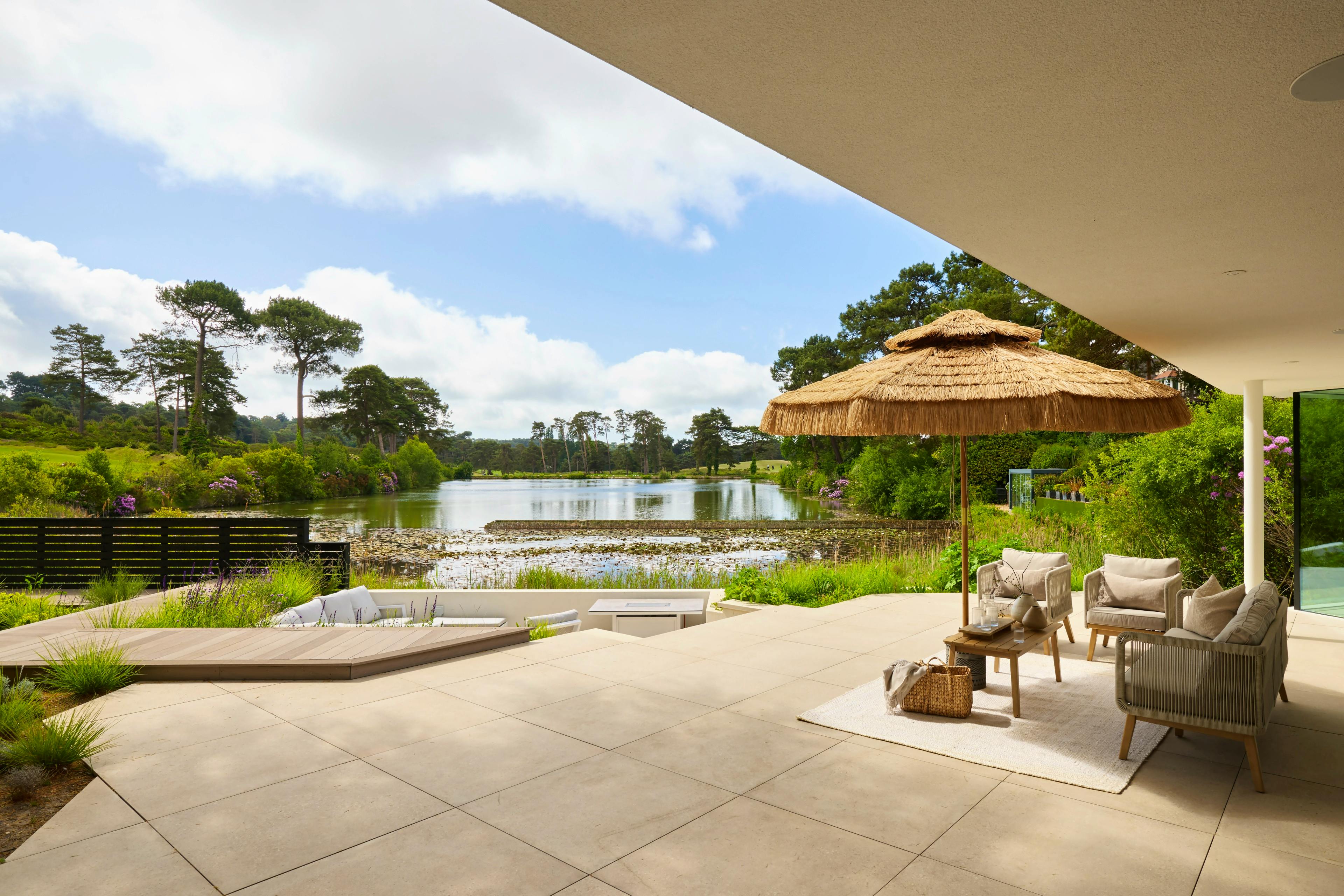 Floor-to-ceiling glass, shimmering lake views and a sense of pure escapism set the tone the moment you step inside Hidden Lake. This striking Dorset retreat is made for life’s special gatherings, offering a luxurious base for up to 16 guests with space to unwind, play and reconnect. Wake to mirror-still water outside your window, wander out to the sun terrace for breakfast in the fresh air, then dive straight into a day shaped entirely by relaxation and fun. Six beautifully appointed bedrooms are spread across the house, each designed with comfort and quiet elegance in mind. The principal suite steals the show with a super-king size bed, vast glass wall and private terrace overlooking the lake. Three further rooms enjoy balconies with sweeping views across the water and golf course, while another has a cosy window seat perfect for peaceful mornings with a book. A flexible top-floor bedroom can be arranged with singles or a double, and additional beds or cots can be added on request, making the house wonderfully adaptable for large families and multi-generational stays. At the heart of the home, light and space flow through an open-plan living area that opens directly onto the sun terrace. Gather here for alfresco lunches, sunset drinks or long evenings in the hot tub as the lake glows in the fading light. A fully equipped kitchen with high-end Gaggenau appliances ensures cooking is a pleasure, whether you’re preparing easy breakfasts or hosting celebratory dinners. Hidden Lake is a paradise for both adults and children. Start the day with a swim in the indoor pool or a quiet session in the sauna and steam room. Head to the games room for pool, table tennis or darts, or let kids explore the extraordinary double-height playroom with its slide and basketball area. Outside, a private football pitch, gym equipment, a trampoline and garden slides keep the fun flowing. When work calls, a dedicated office offers calm and focus without losing sight of those beautiful views. Beyond the house, Dorset’s coast unfolds in every direction. Wander the golden beaches from Sandbanks to Bournemouth Pier, hop across Poole Harbour to spot wildlife on Brownsea Island, or venture out along the Jurassic Coast for breathtaking views at Old Harry Rocks. Explore charming villages, coastal trails and hidden coves, or enjoy gentle days out in Wareham and on the Swanage Railway. Whether adventure or relaxation calls, Hidden Lake puts it all at your fingertips.