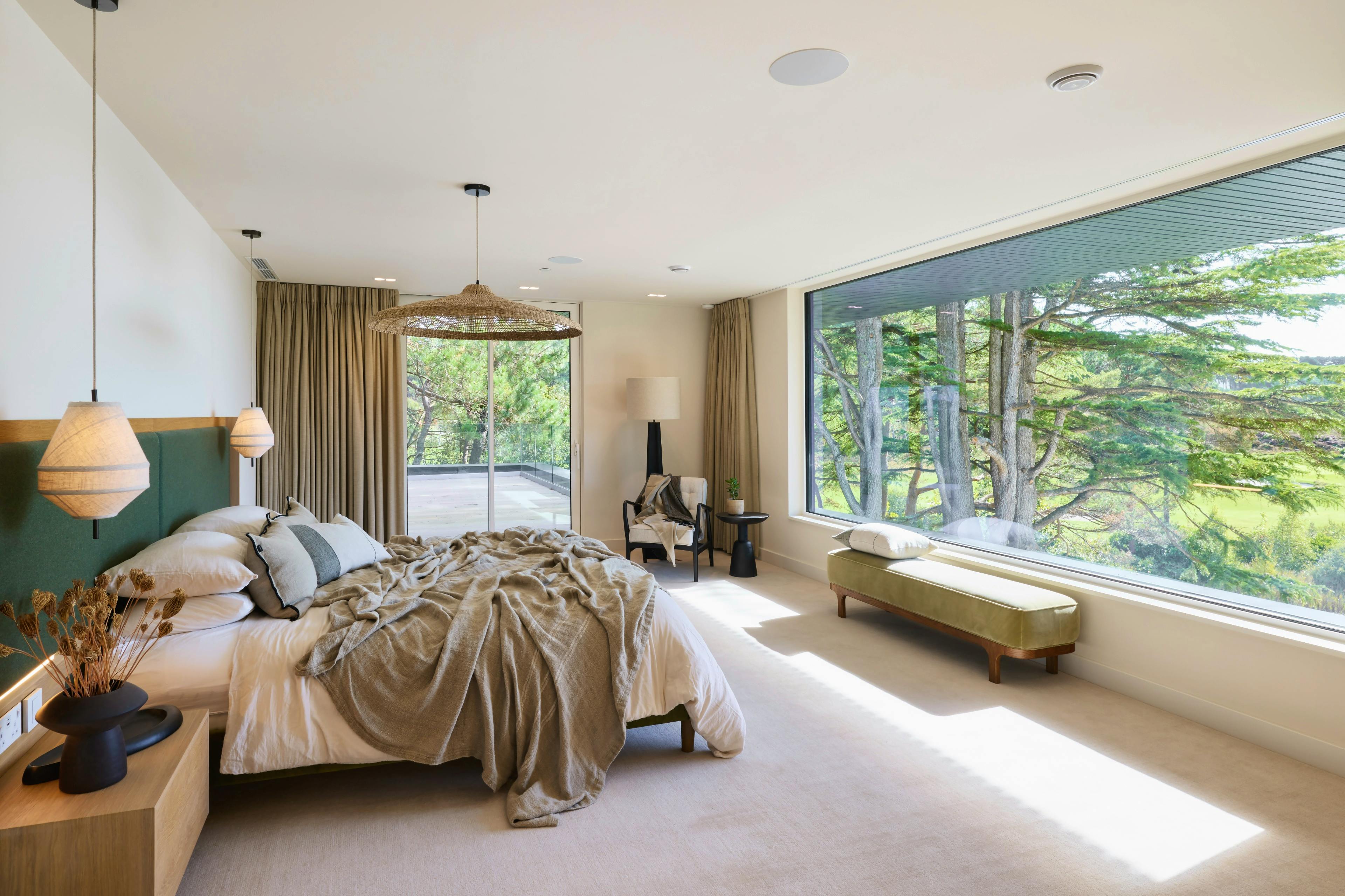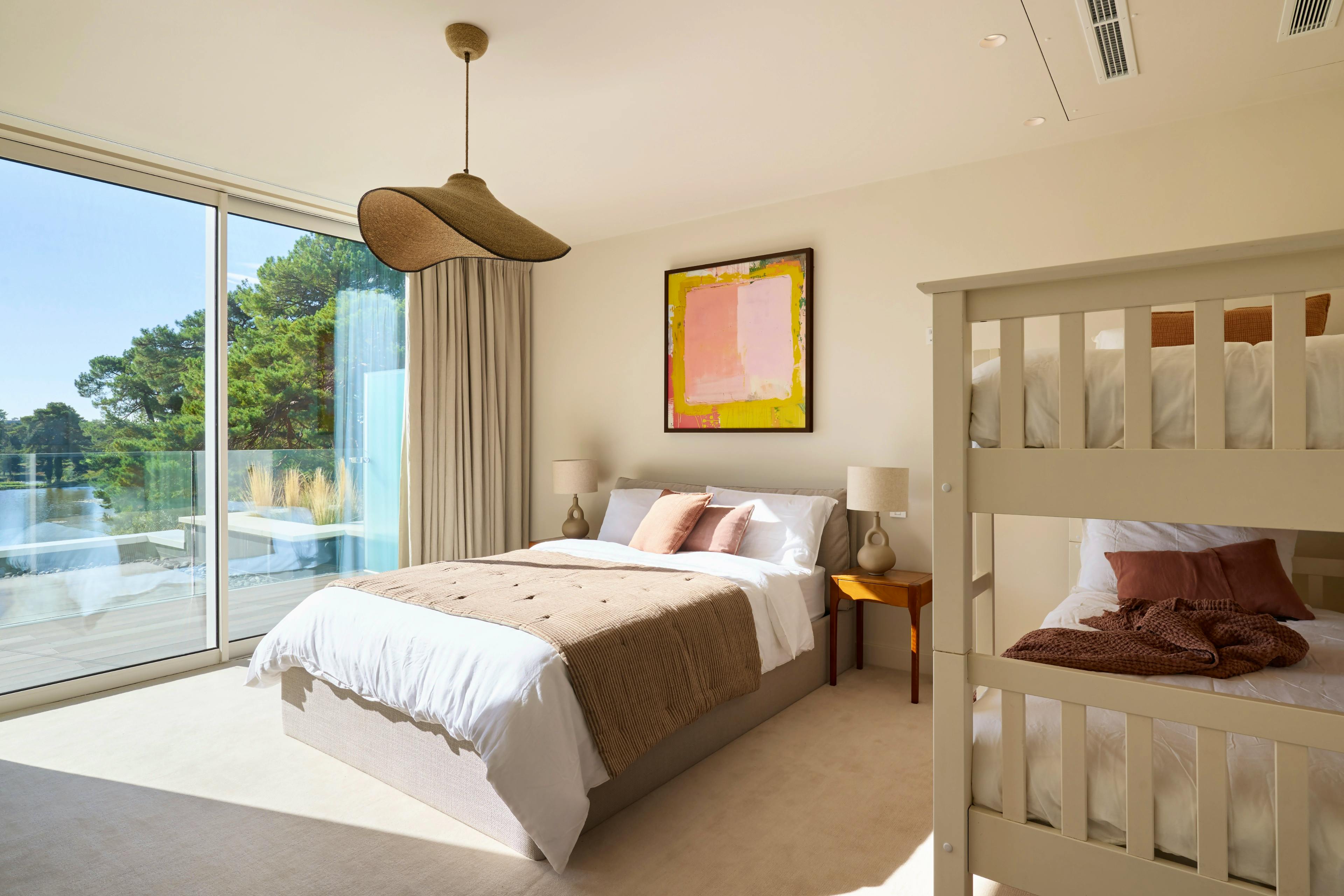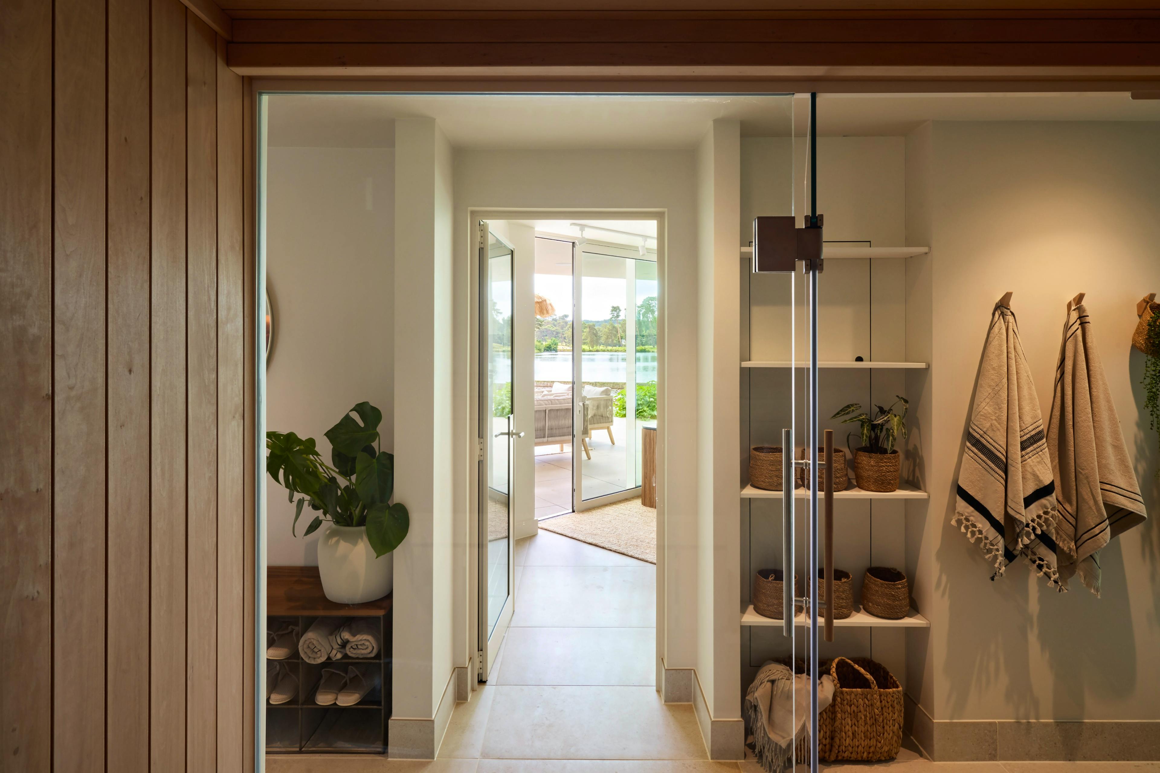 Retreat to luxurious bedrooms with balconies, window seats and a show-stopping principal suite where mornings start with lake-edge tranquillity.