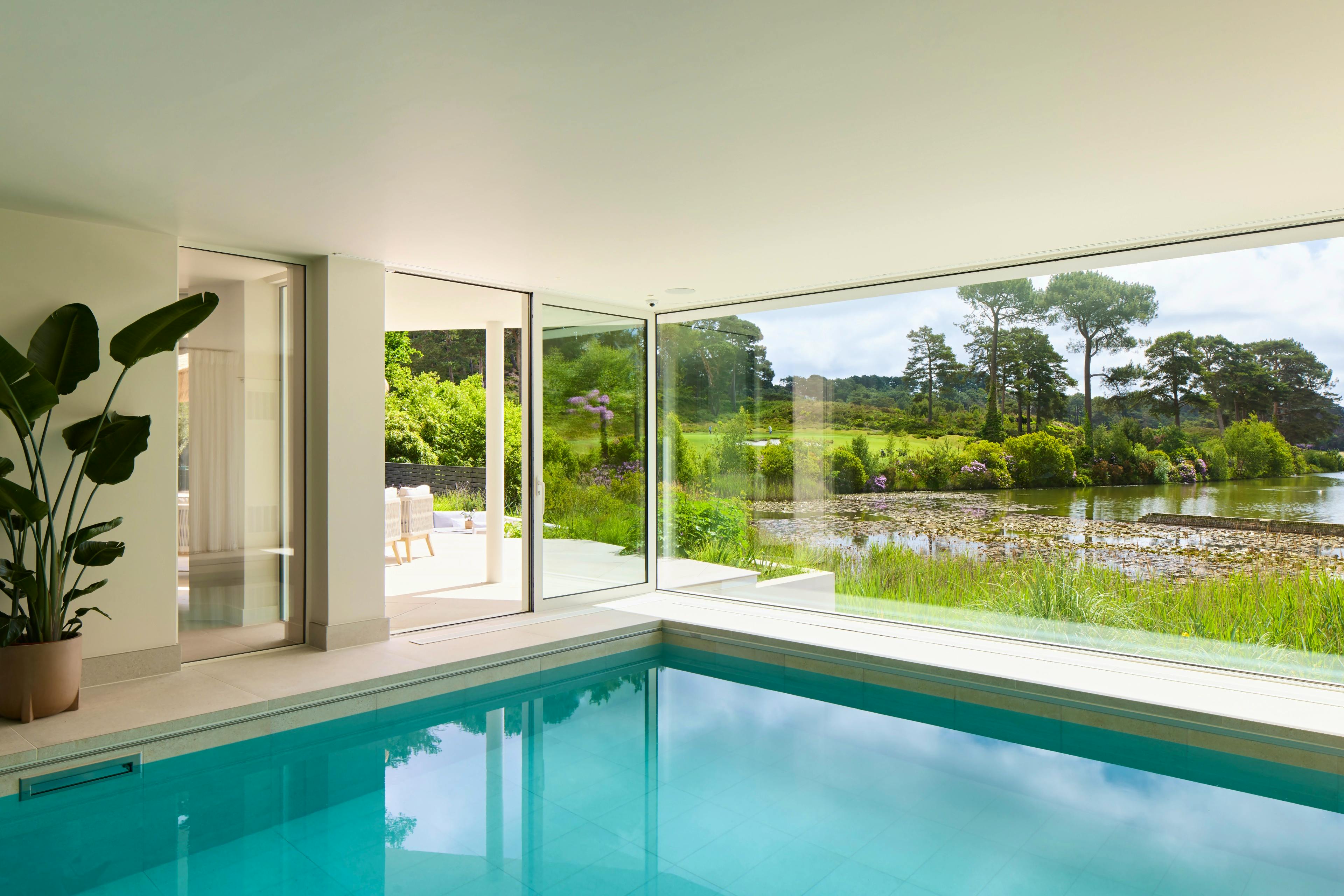 Hidden deluxe lakefront retreat with an indoor pool, hot tub and sauna offering large groups and epic stay in beautiful Dorset.