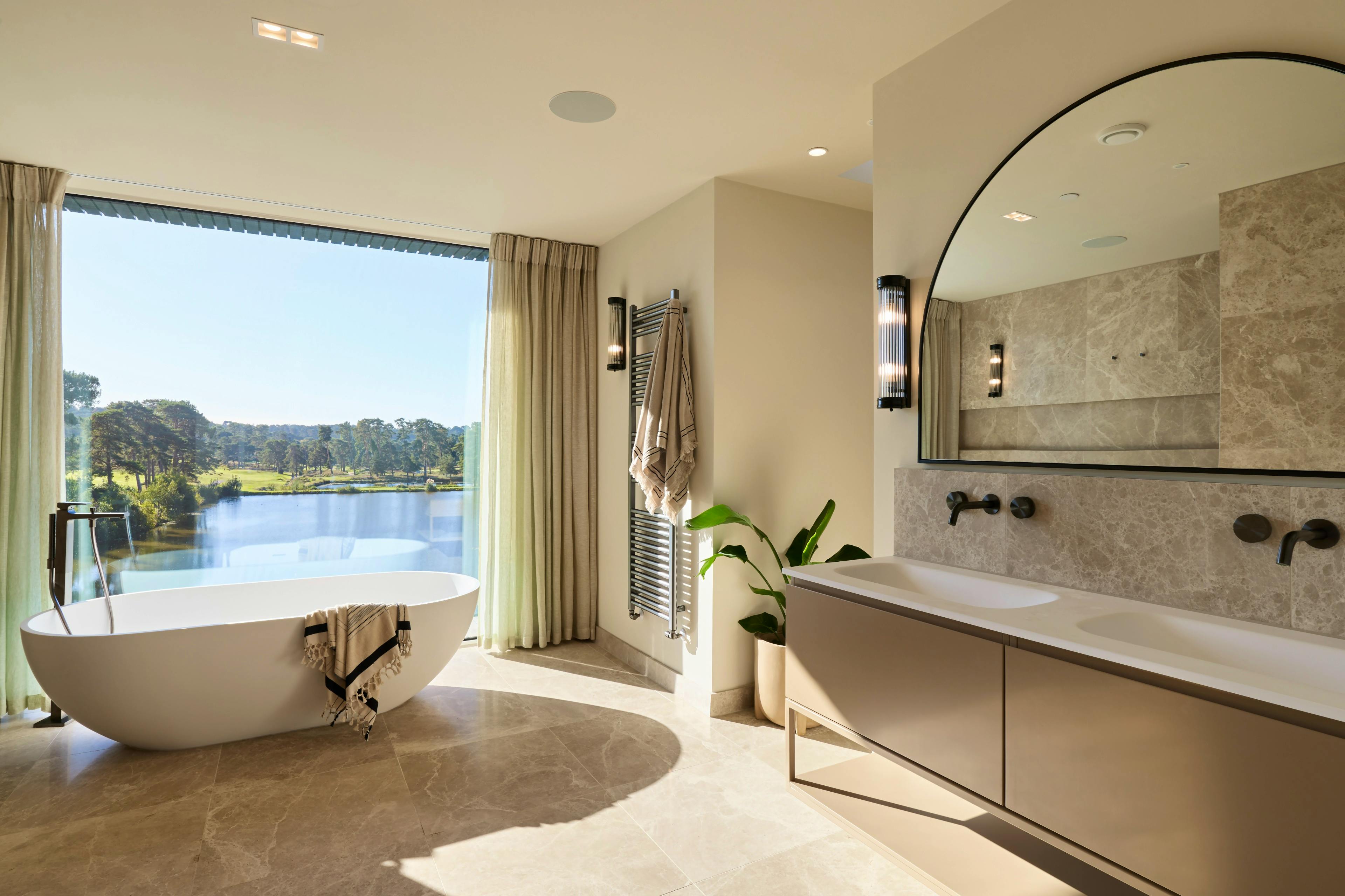 Wake each morning to glass-framed lake views that make every moment feel calm, luxurious and deeply restful.