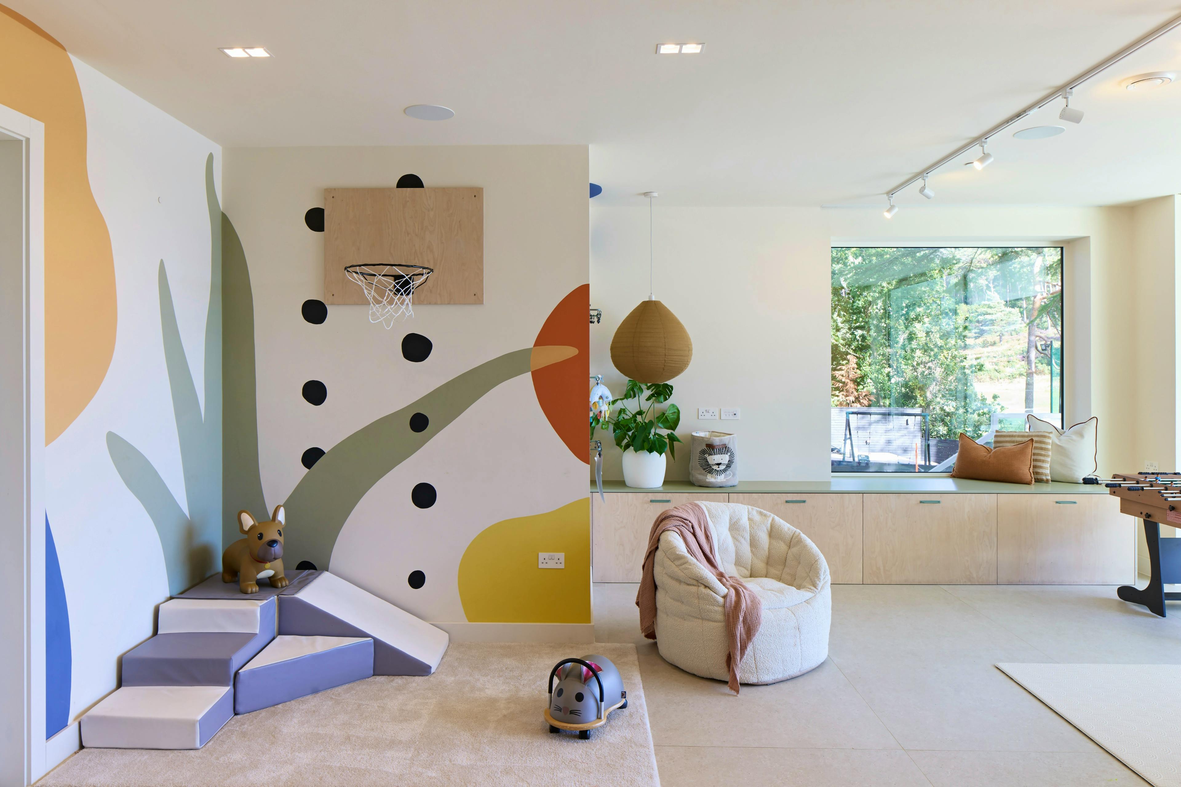 Let kids run wild in the extraordinary double-height playroom with a slide, basketball zone and endless space for imagination.