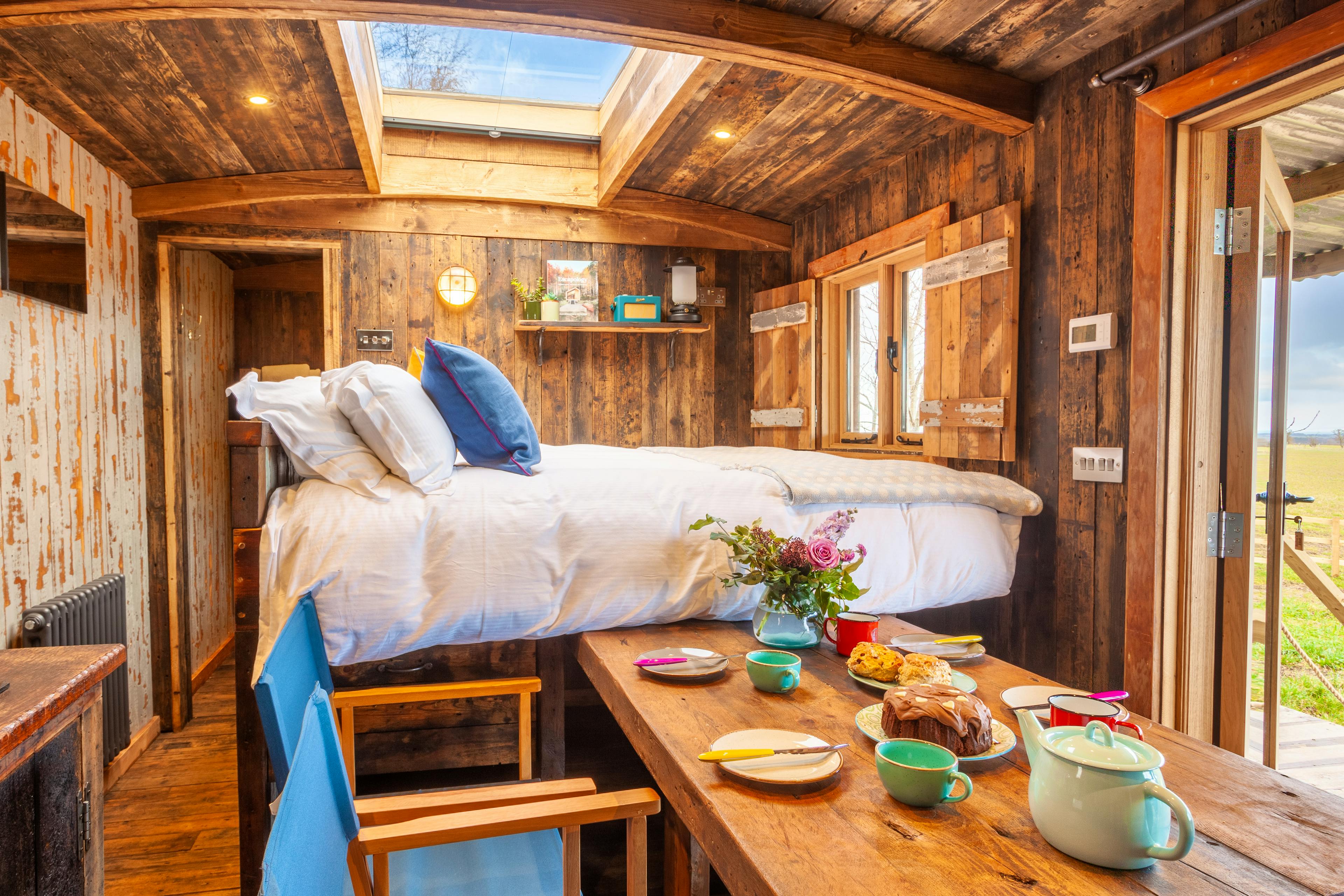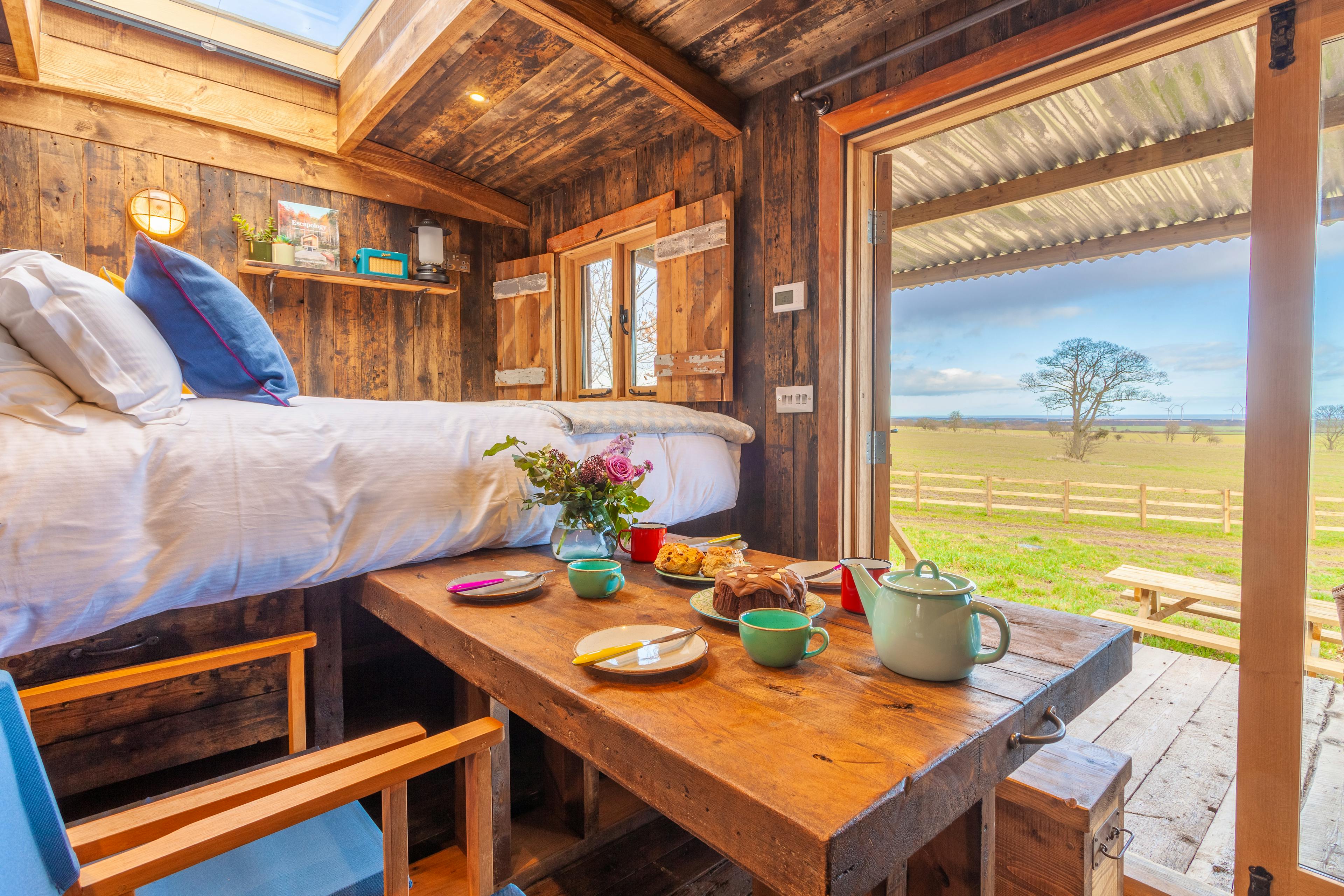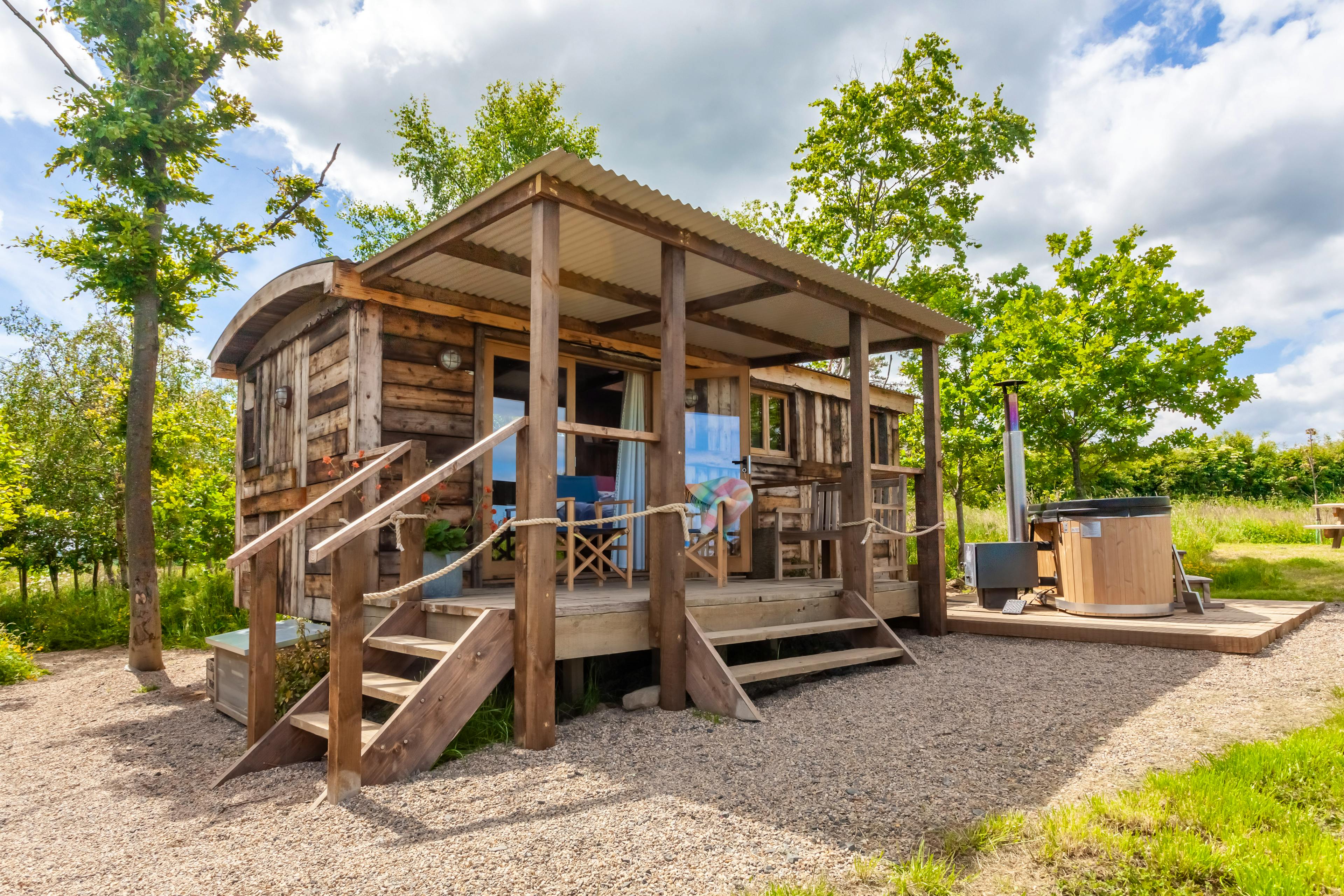 Shepherds huts and cabins offers luxuriously rustic interiors, wood-fired hot tubs with breath-taking views of the surrounding countryside and coast.