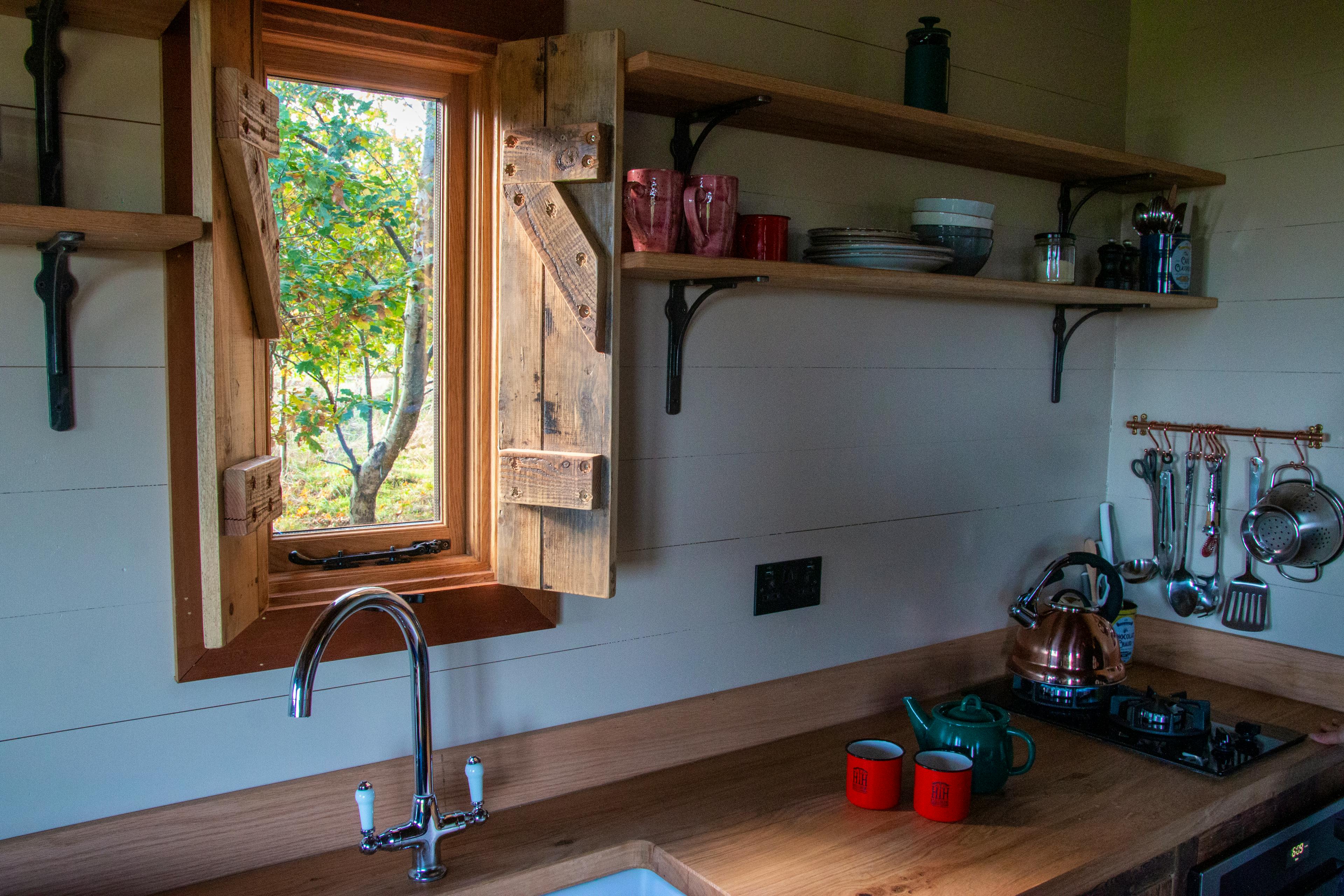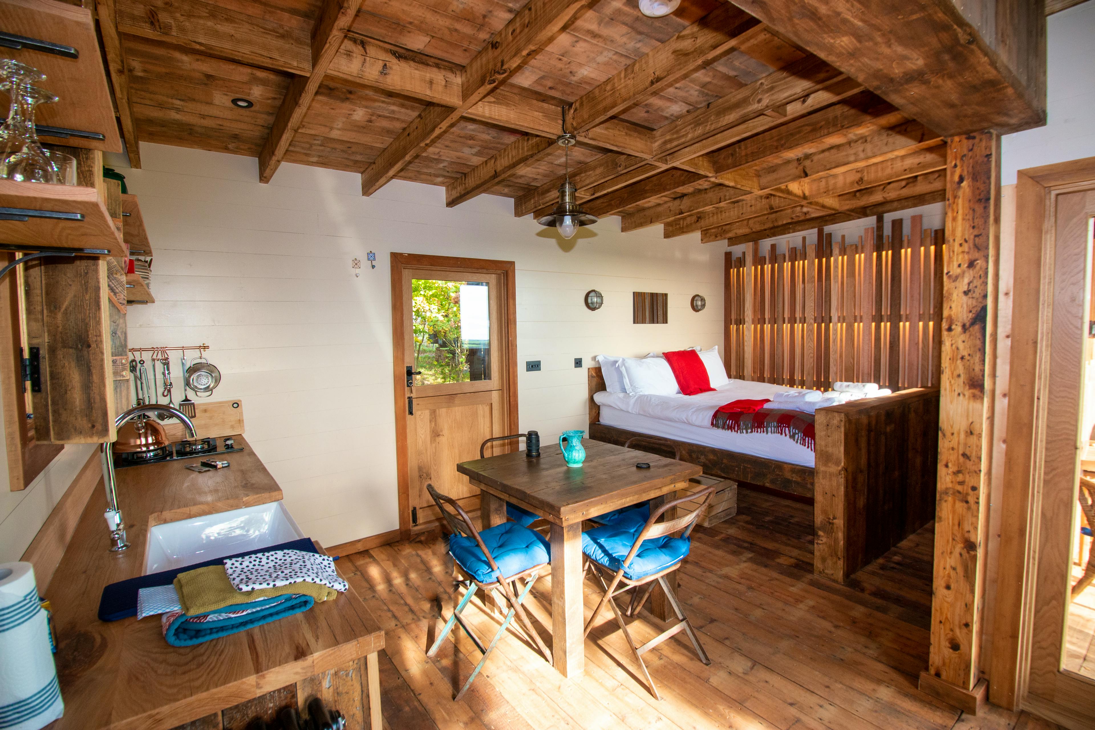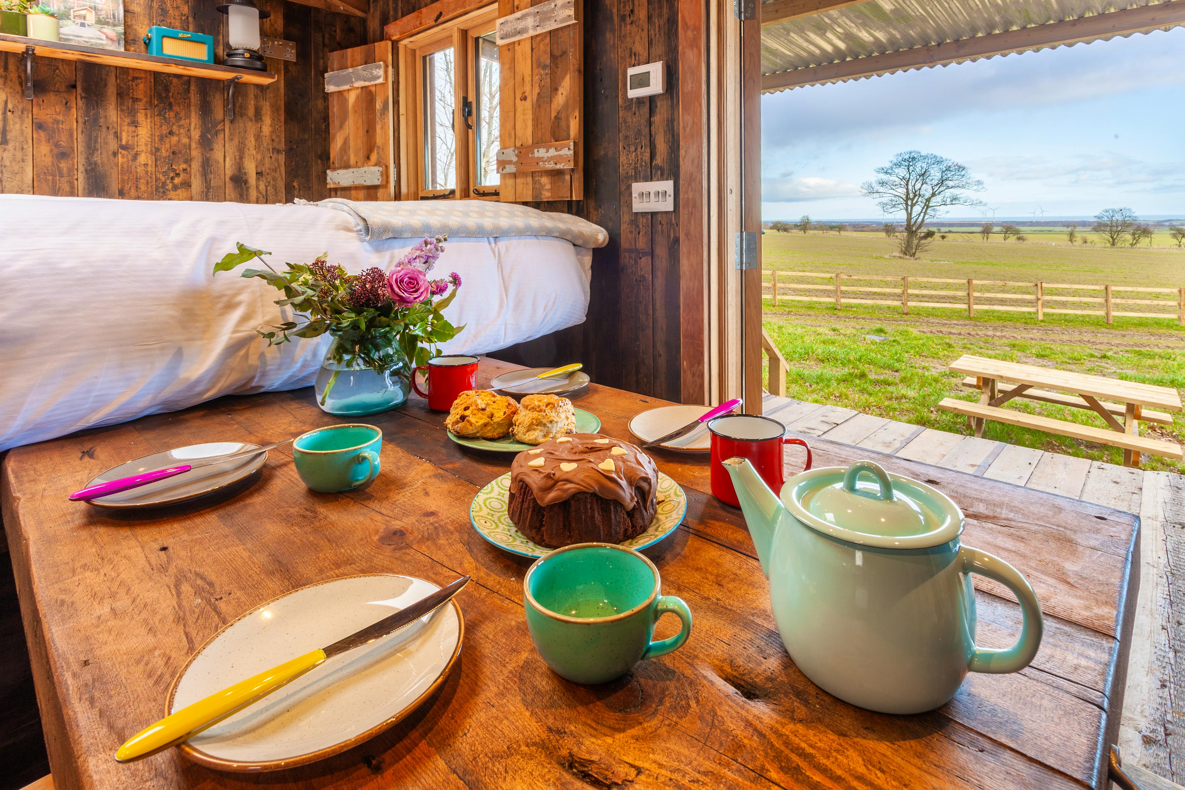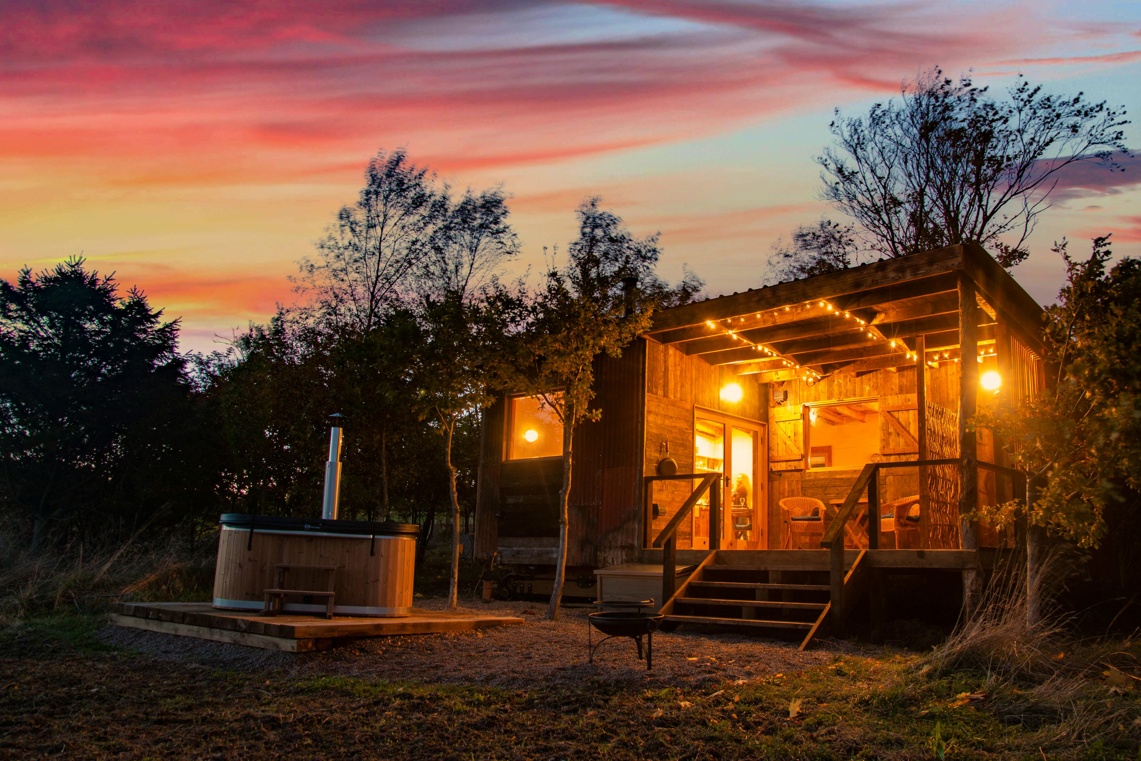 Shepherds huts and cabins offers luxuriously rustic interiors, wood-fired hot tubs with breath-taking views of the surrounding countryside and coast.