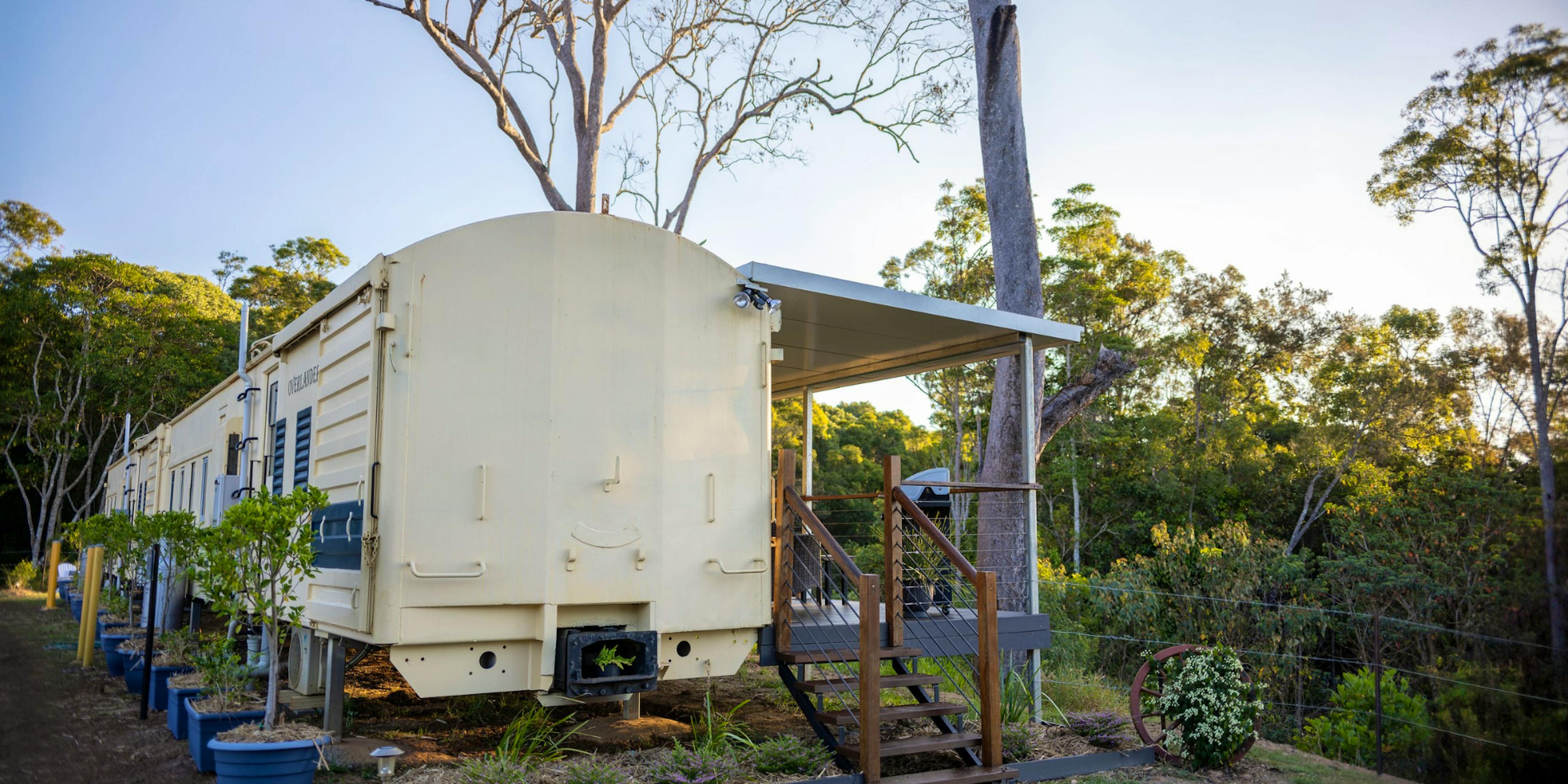Choose from three unique and comfortable stays - a safari-style glamping tent or two charmingly converted railway cabins - set in the tranquil Barrine countryside.