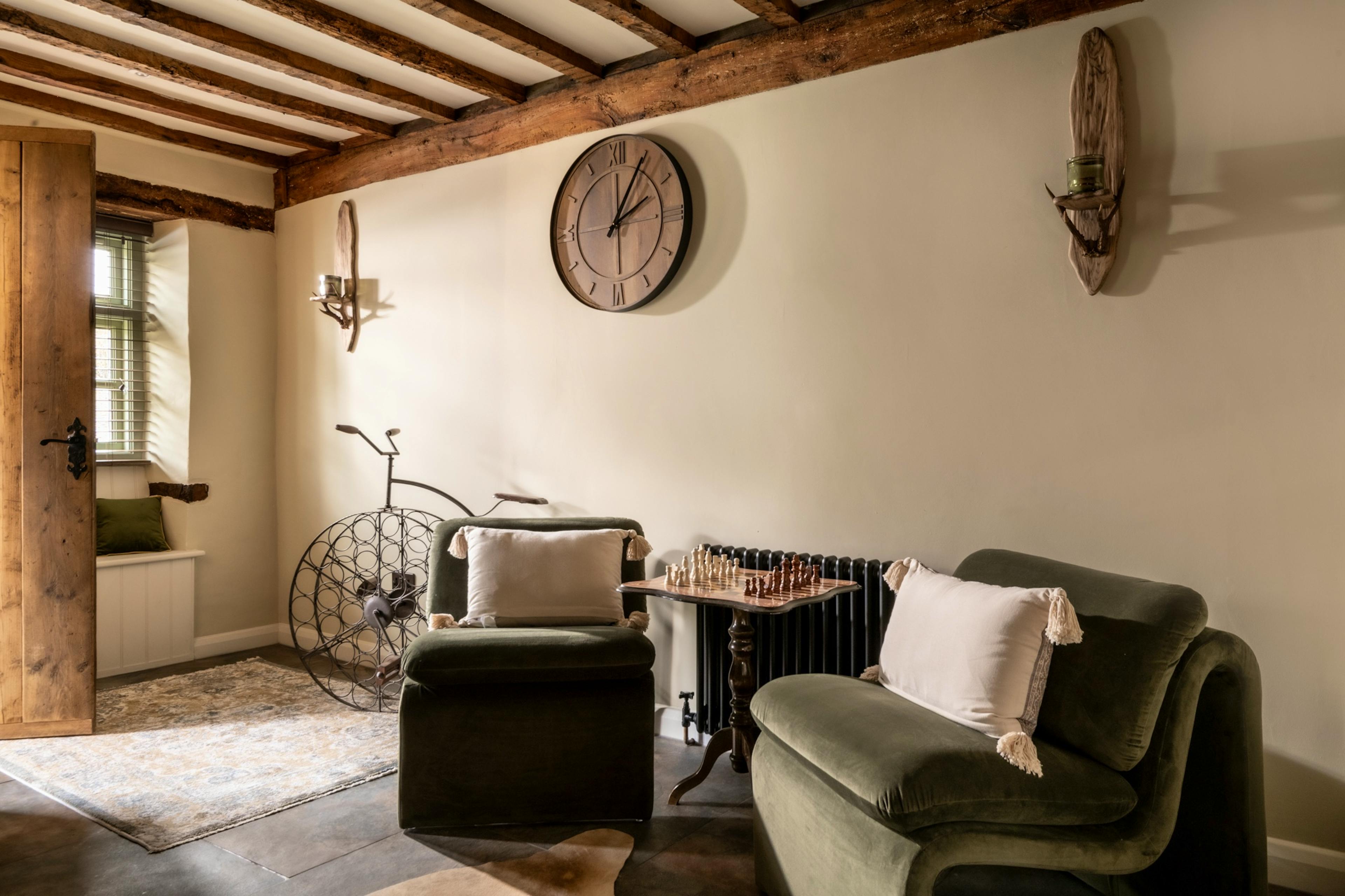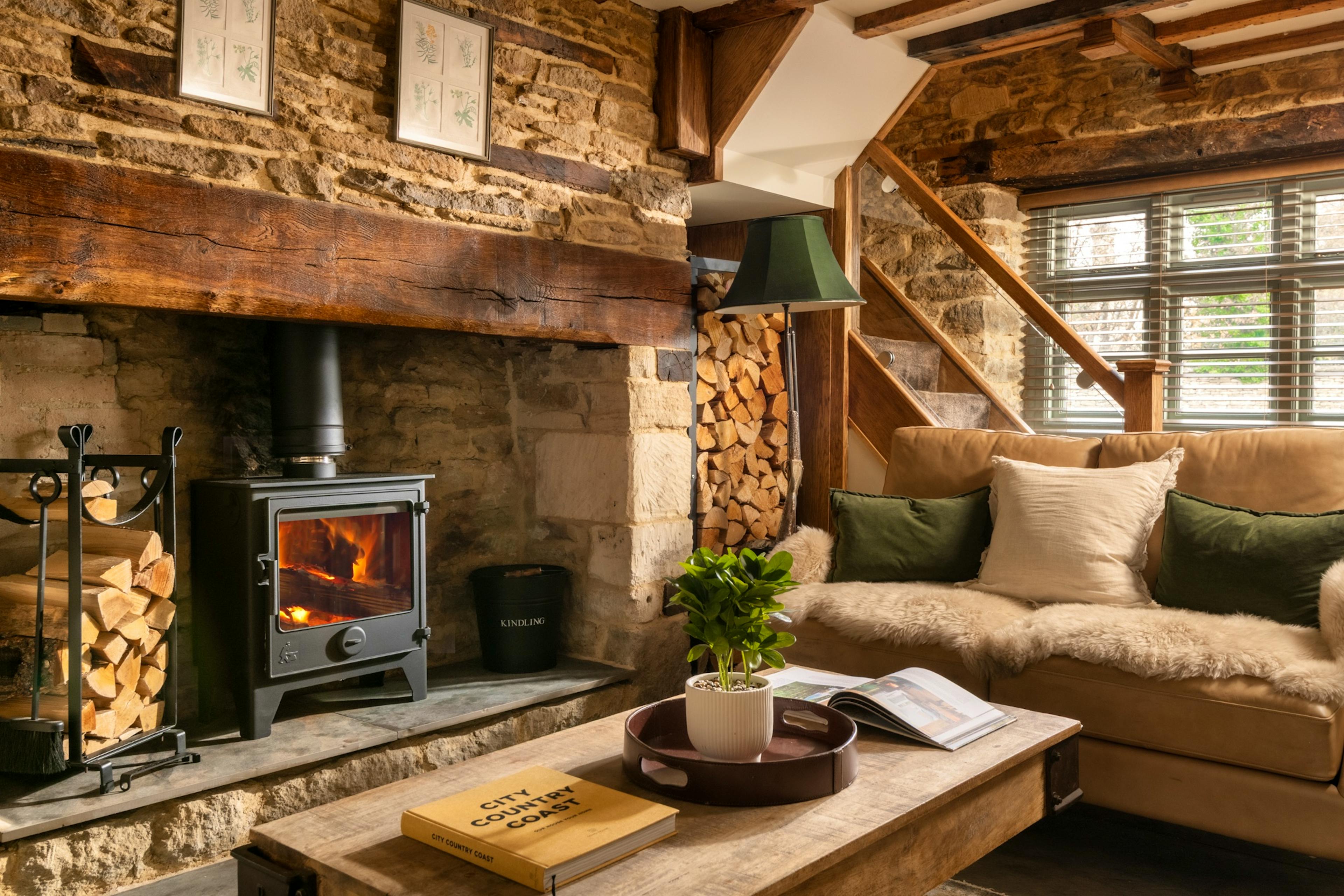 A beautifully restored Cotswolds cottage where exposed beams, warm brick and a glowing fire create the perfect slow-living escape.