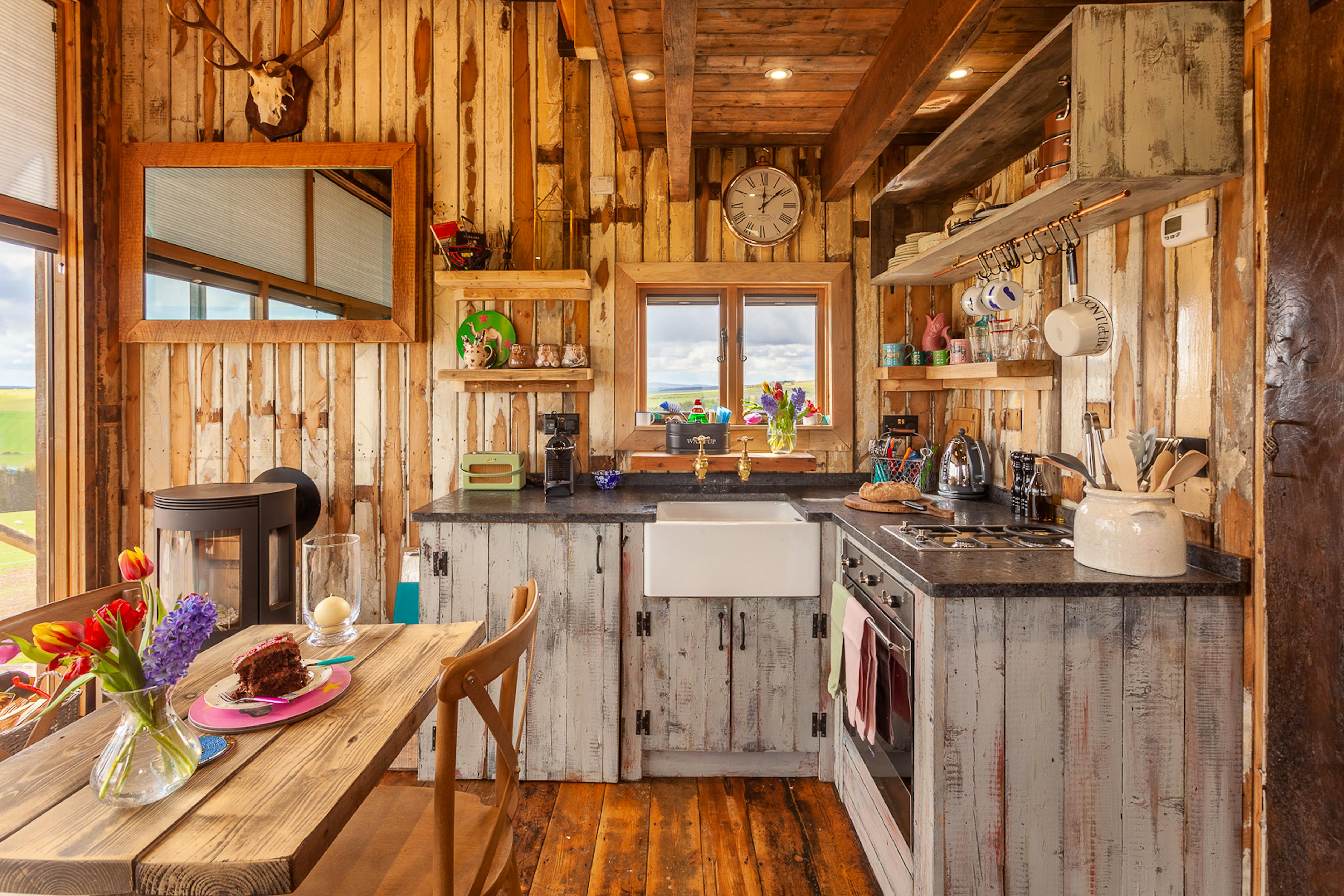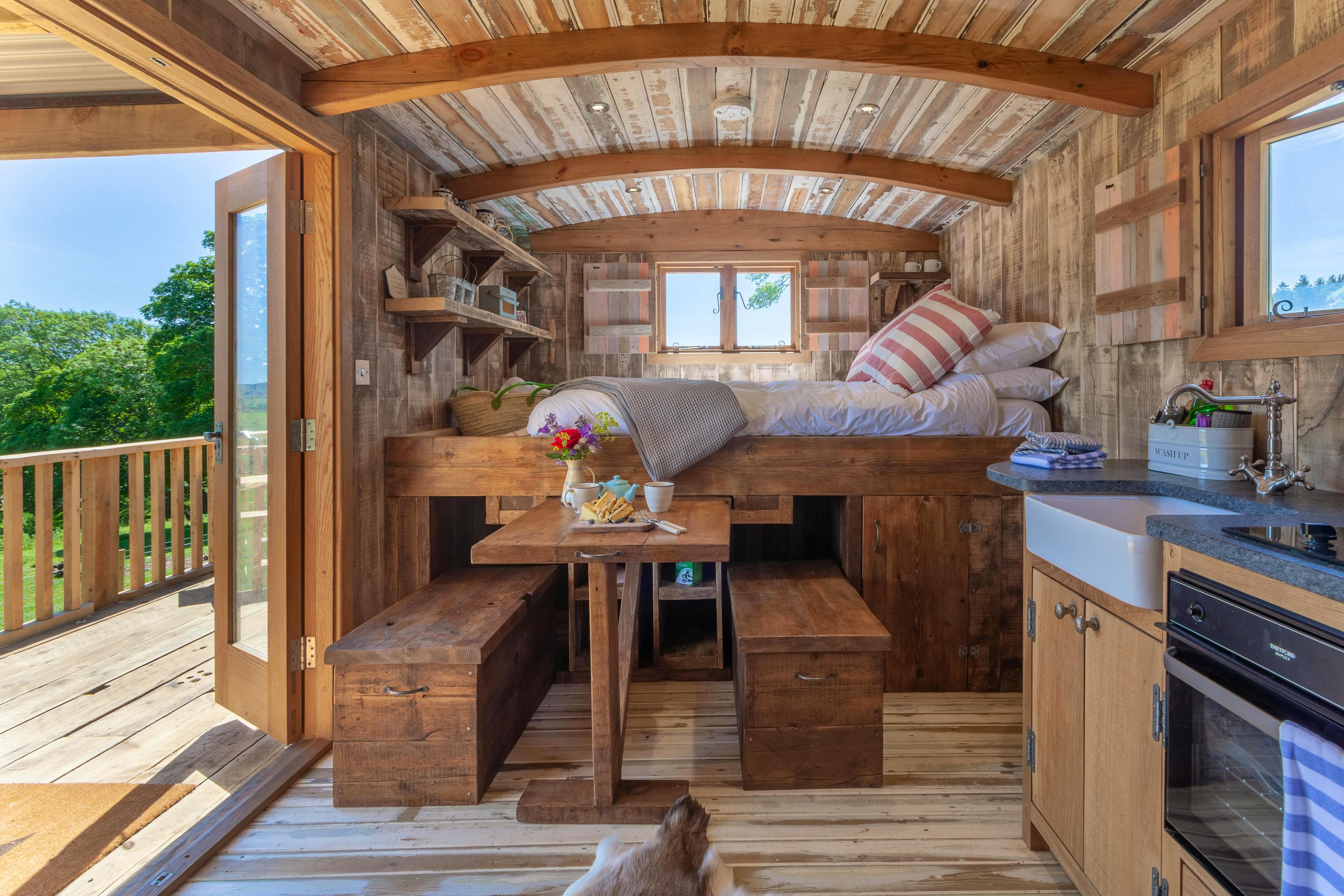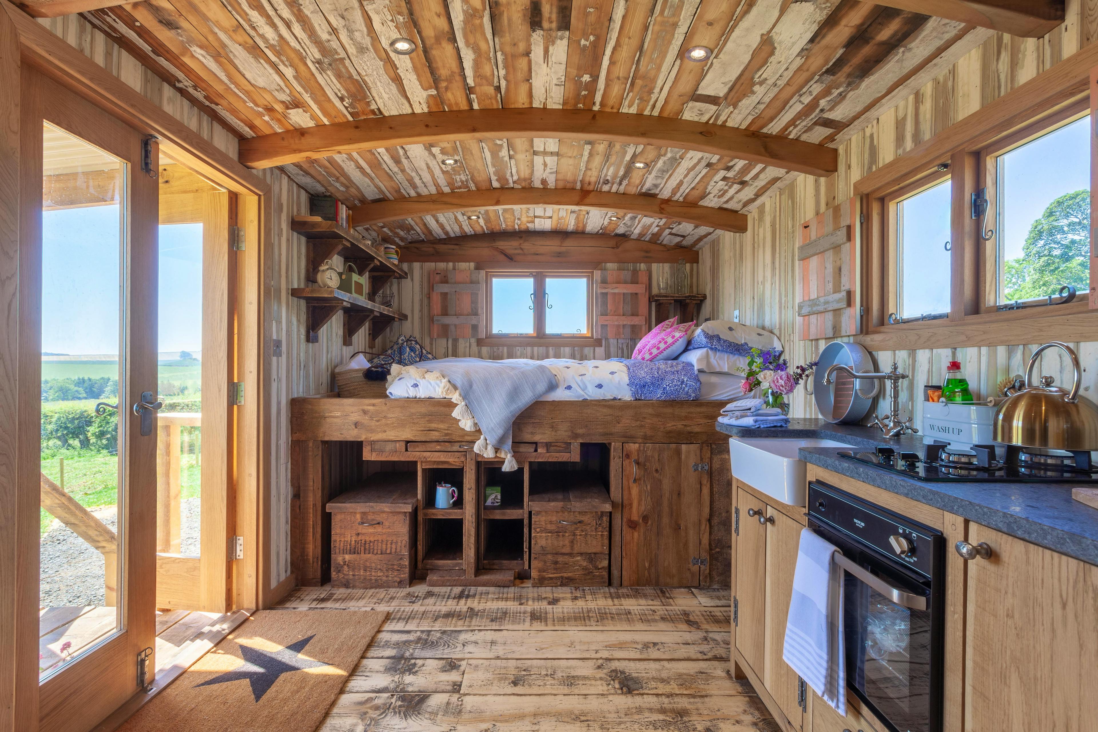 Sitting on the sprawling Northumberland grounds of Prendwick Farm and just on the edge of the dramatic Northumberland National Park, you will come to the Huts in the Hills. Although rustic in appearance and set in some of England's most sparsely populated land, the huts benefit from all the mod cons necessary for a modern getaway, including fridges, ovens, hot showers, and flush toilets. And while every hut has its own distinct character, there is one thing that they have in common: quality. Each of these delightful cabins is constructed from the finest quality reclaimed oak, with artisan hand-forged wheels and sheep’s wool insulation. There are five to choose from in total: Dunmore, which sleeps two and has a charming little terrace; Hedgehope, with a maisonette bed and sliding oak dining table - again sleeping two, but slightly larger; the Hütte, a uniquely designed two-story, two-person hut; Cheviot, a four person hut which boasts children's bunkbeds and a dramatic skylight; and then Maylies, the largest of the five. Maylies sleeps up to five guests and has two double beds along with a single bunk bed. Because the location is incredibly remote and the huts are spaced far apart, guests are assured of the utmost privacy. Although the huts are the perfect setting for a self-catering getaway, food can be arranged. This includes breakfast hampers, picnic lunches, and even evening meals. Prendwick Farm benefits from sitting right on the fringes of Northumberland National Park. Why not take a hike to the Cheviot Hills or along the iconic Hadrian's Wall? The region is incredibly remote, and so makes for some of the best stargazing in the whole of the UK. Other local places of interest include the Victorian country house of Cragside and Howick Hall - the home of Earl Grey. Just a 30–40-minute drive away you will come to the spectacular Northumberland coastline, replete with beaches and ample surfing locations. For the history buff, there is The Holy Island of Lindisfarne, linked to the mainland by a causeway and cut off twice daily by the eb and flow of the tides.