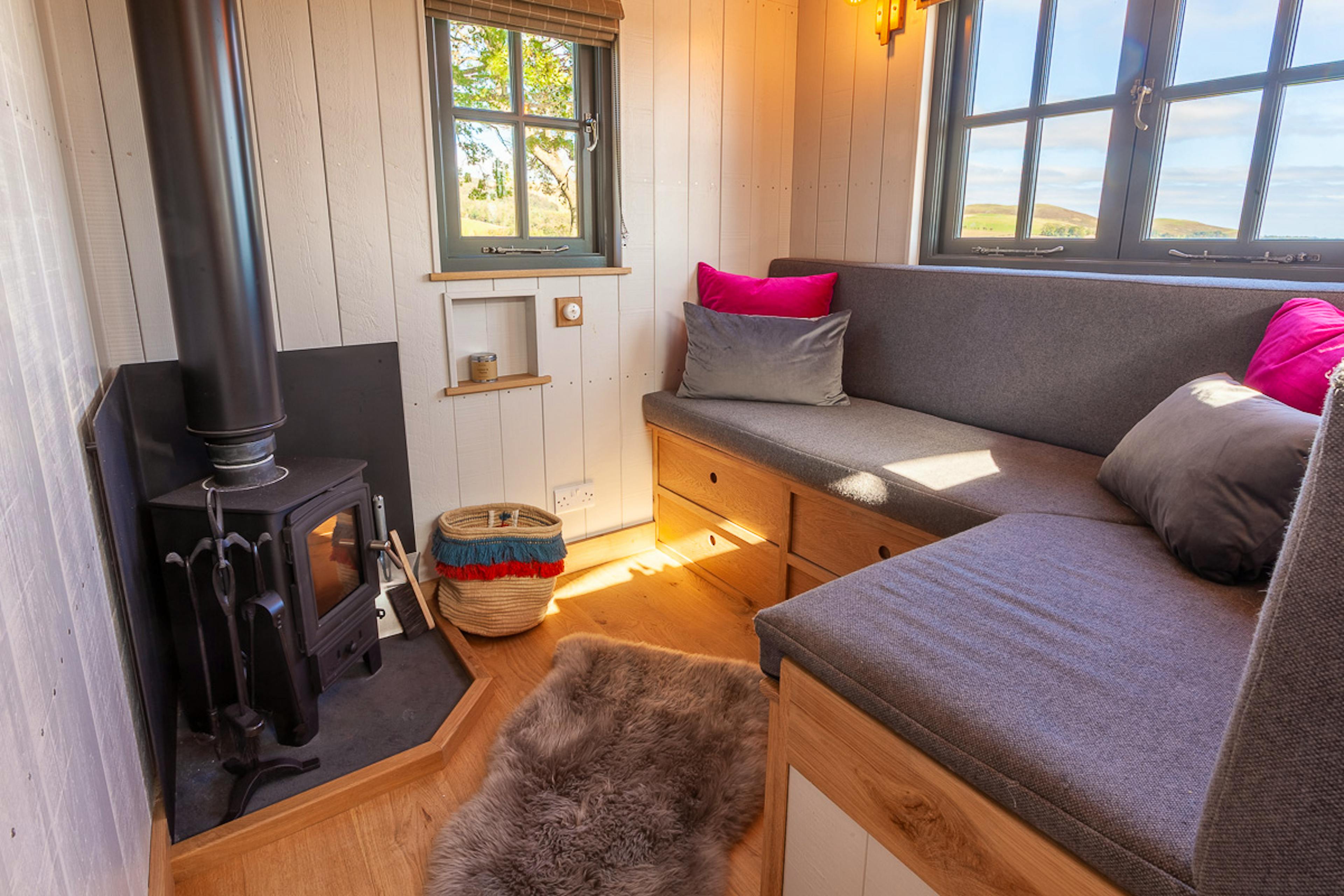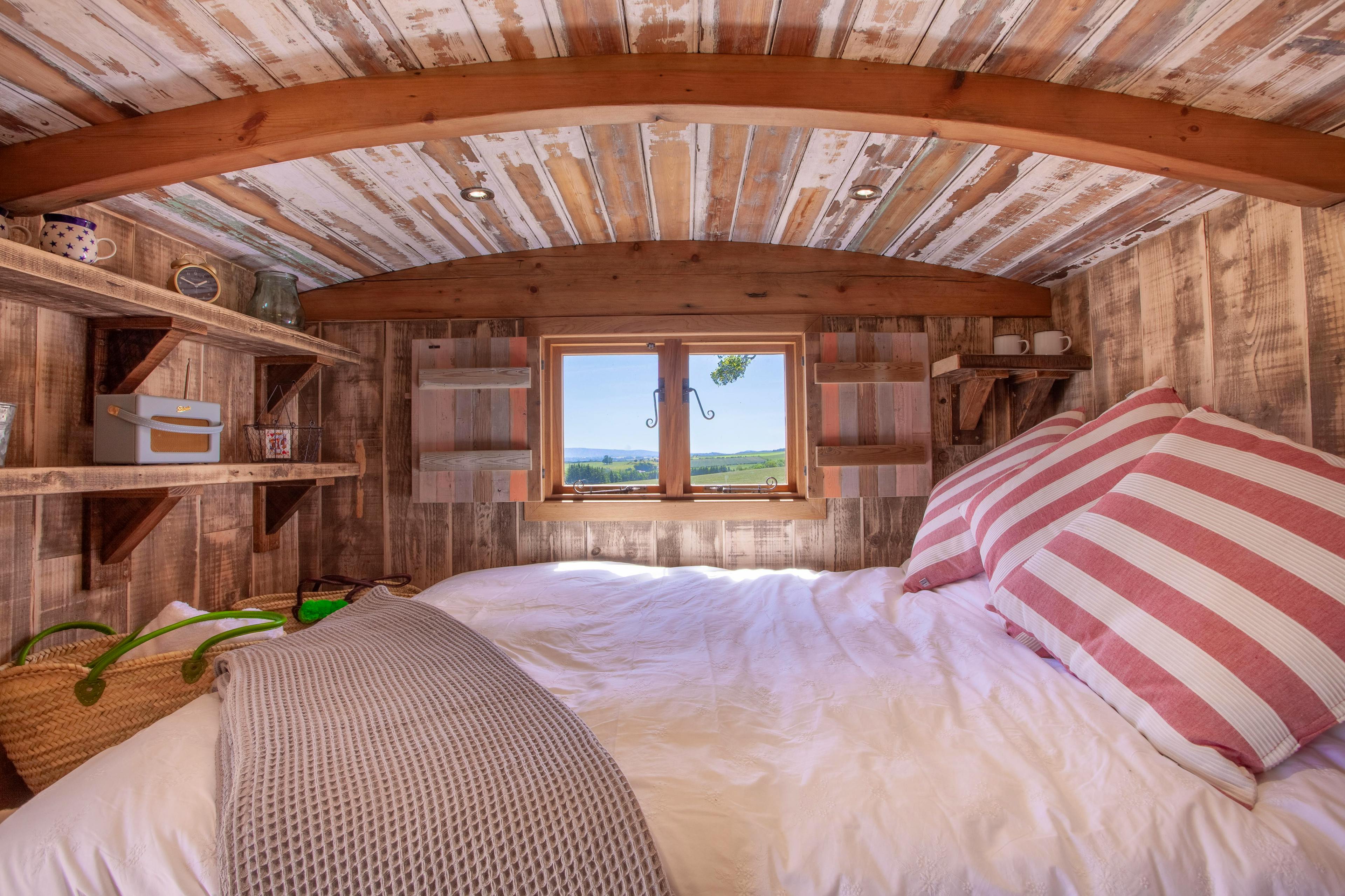 A choice of five beautifully built artisan shepherd's huts in the Northumberland hills, each with their own outdoor bathtub.