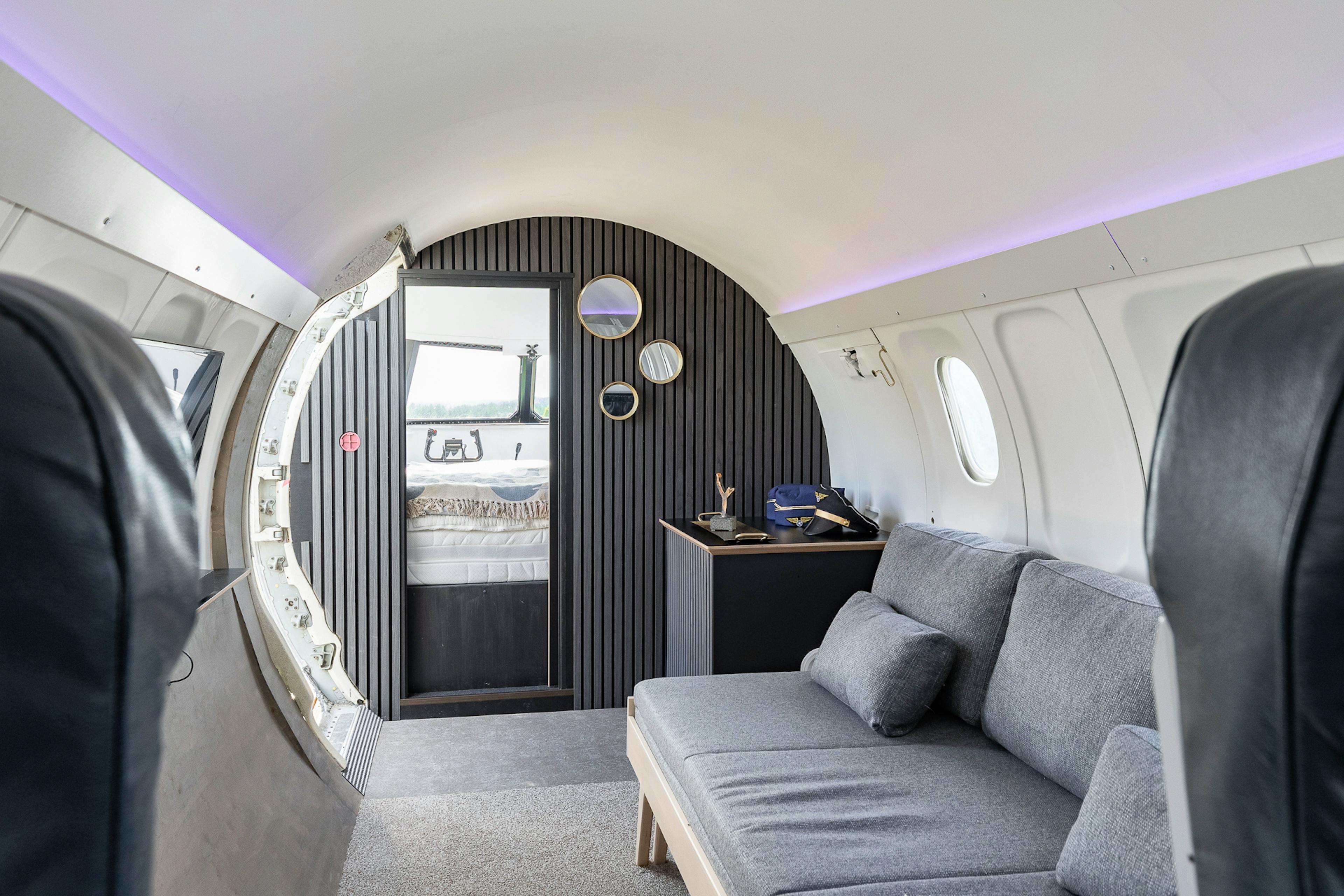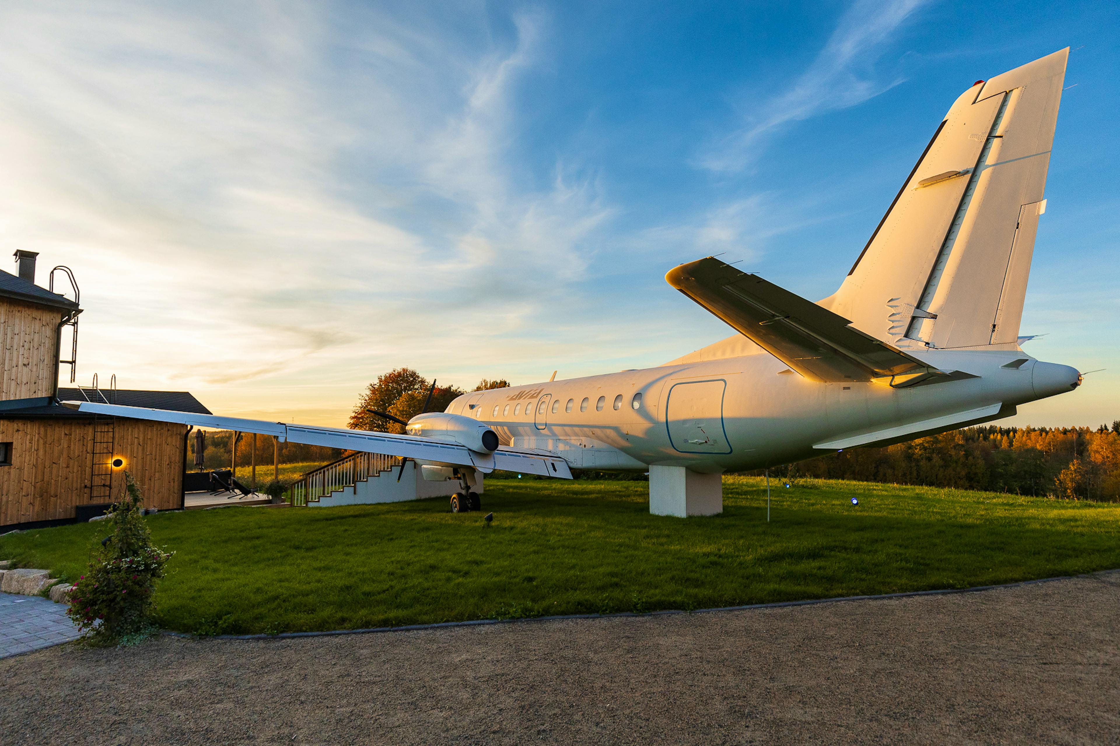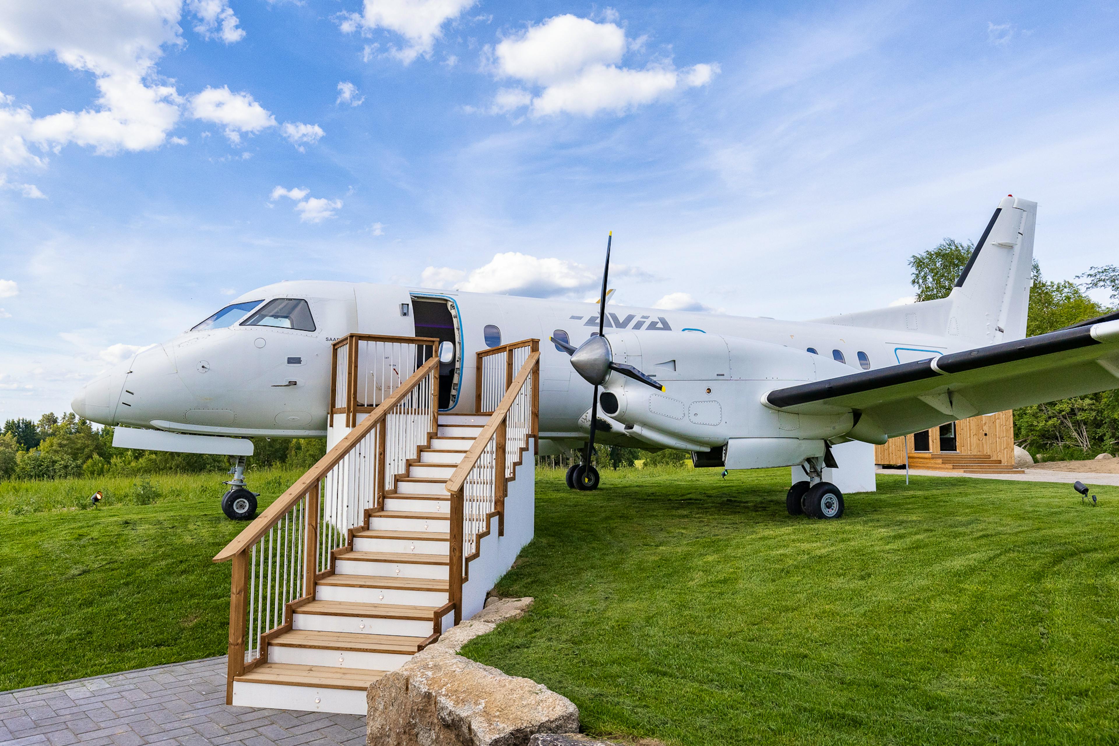 Enjoy a superb stay in a decommissioned airplane sitting in a peaceful slice of stunning Finnish countryside with a jacuzzi and two saunas.