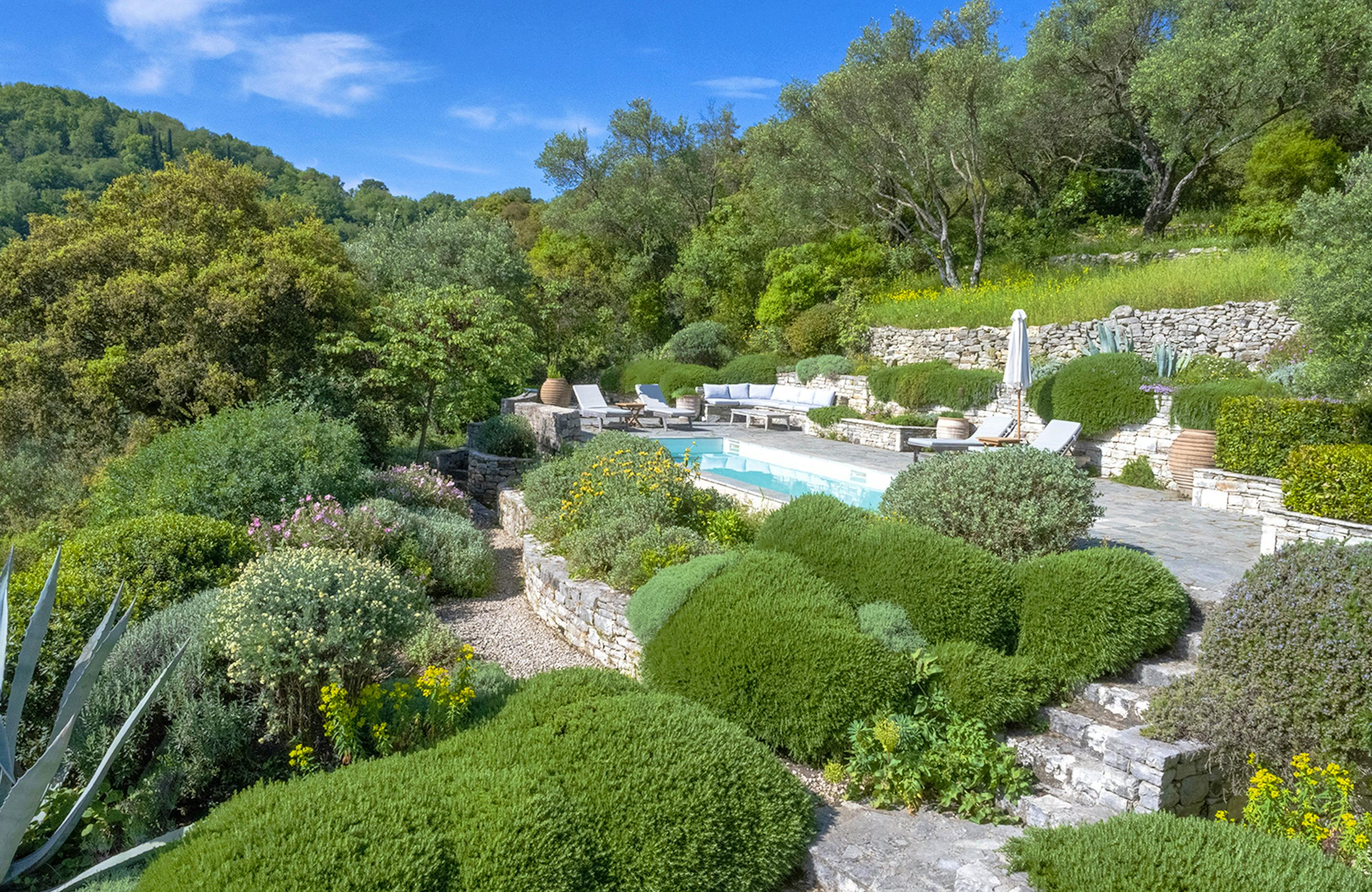 Secluded & stylish romantic retreat with stunning views, high in the hills of Corfu.