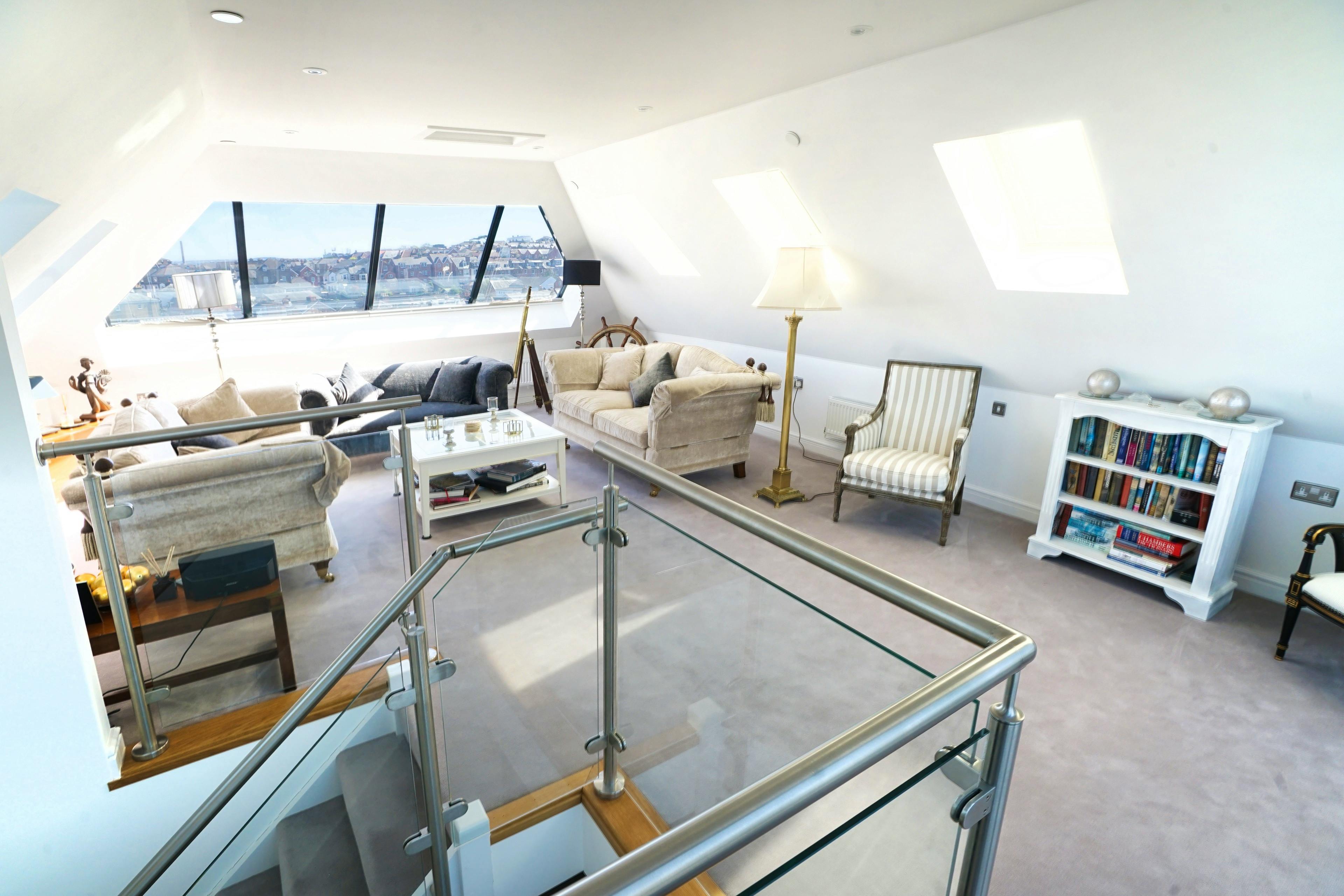 Retreat to the sunny top-floor lounge and step out onto the roof terrace with far-reaching views over the Solent.