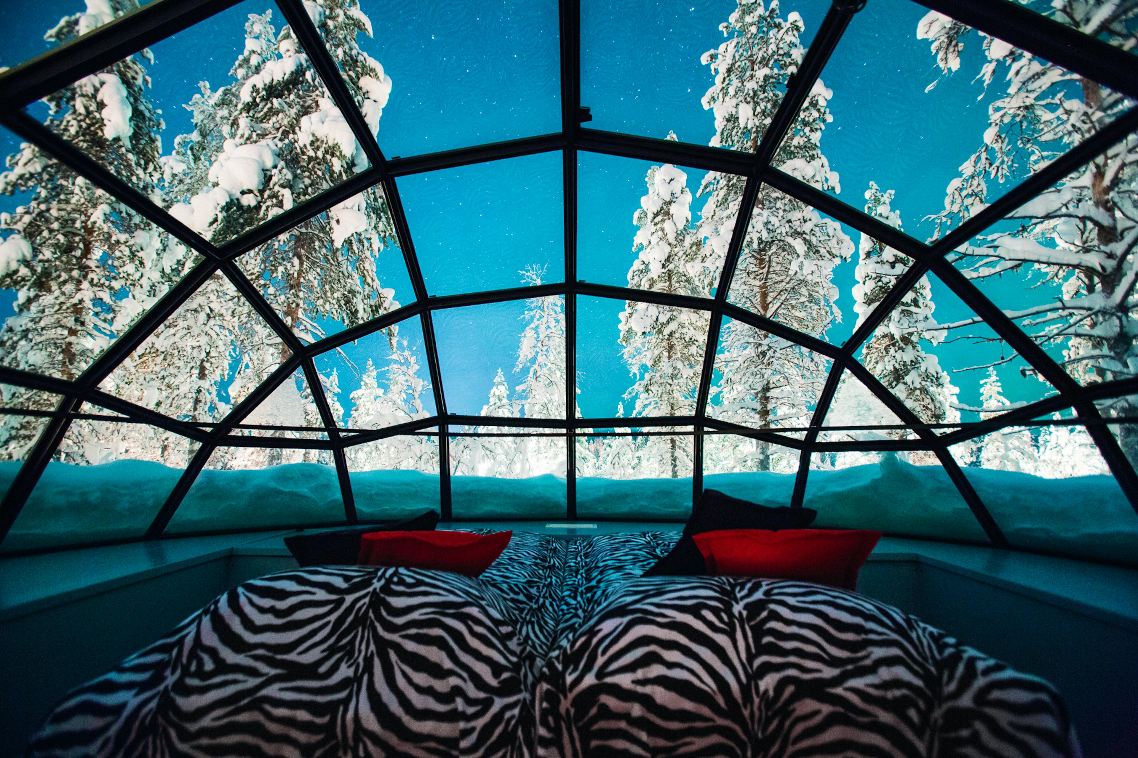 Finland’s most magical destination? Cosy up in a glass-topped igloo at Kakslauttanen and look out for the Northern Lights