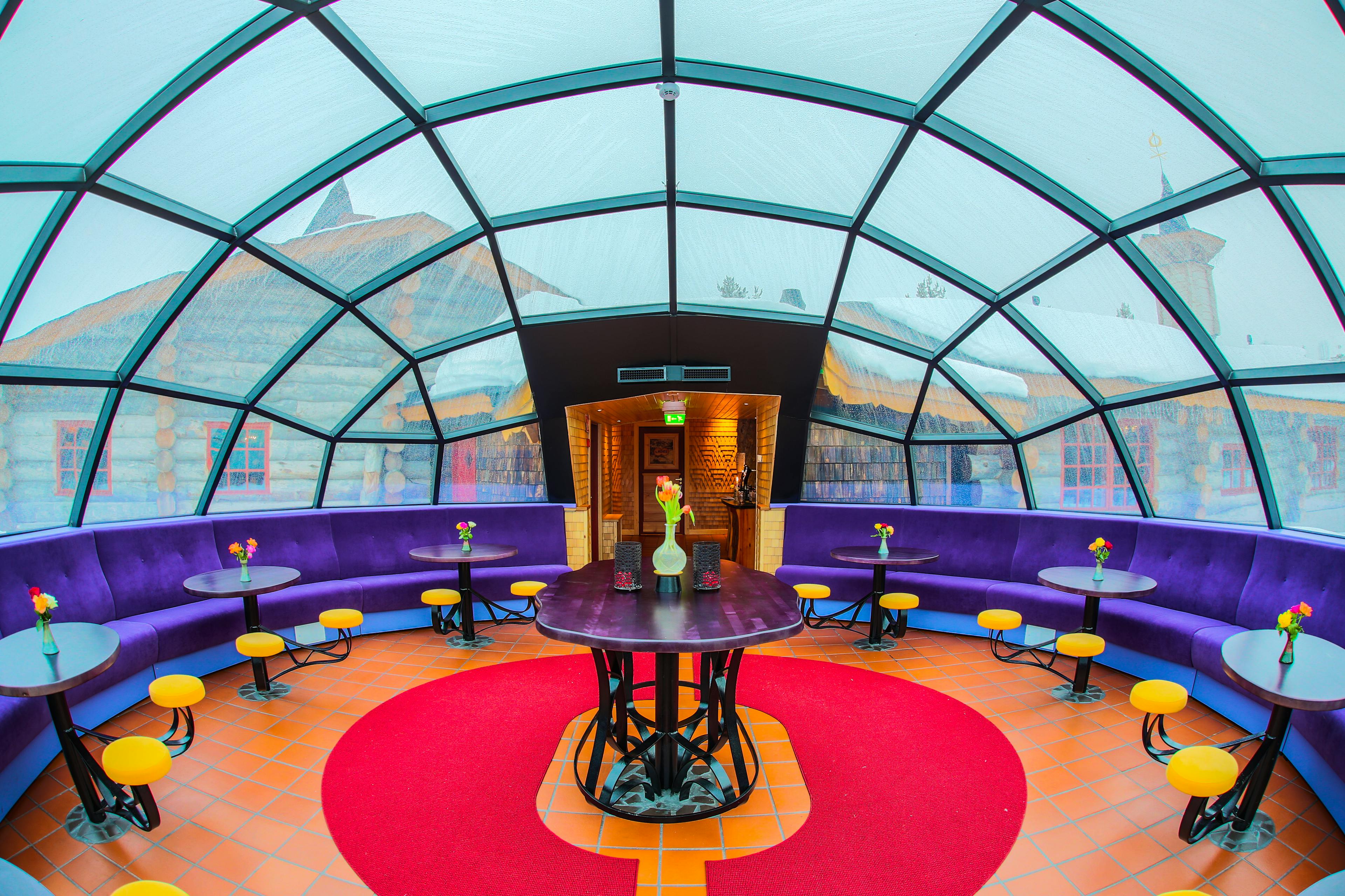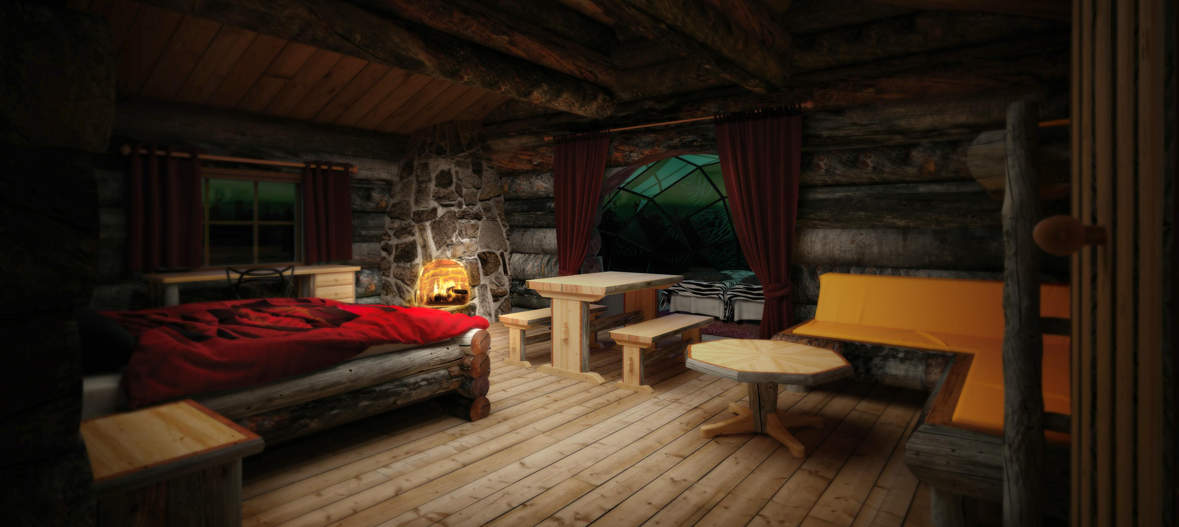 Luxury igloos have a kitchenette, fireplace and private sauna