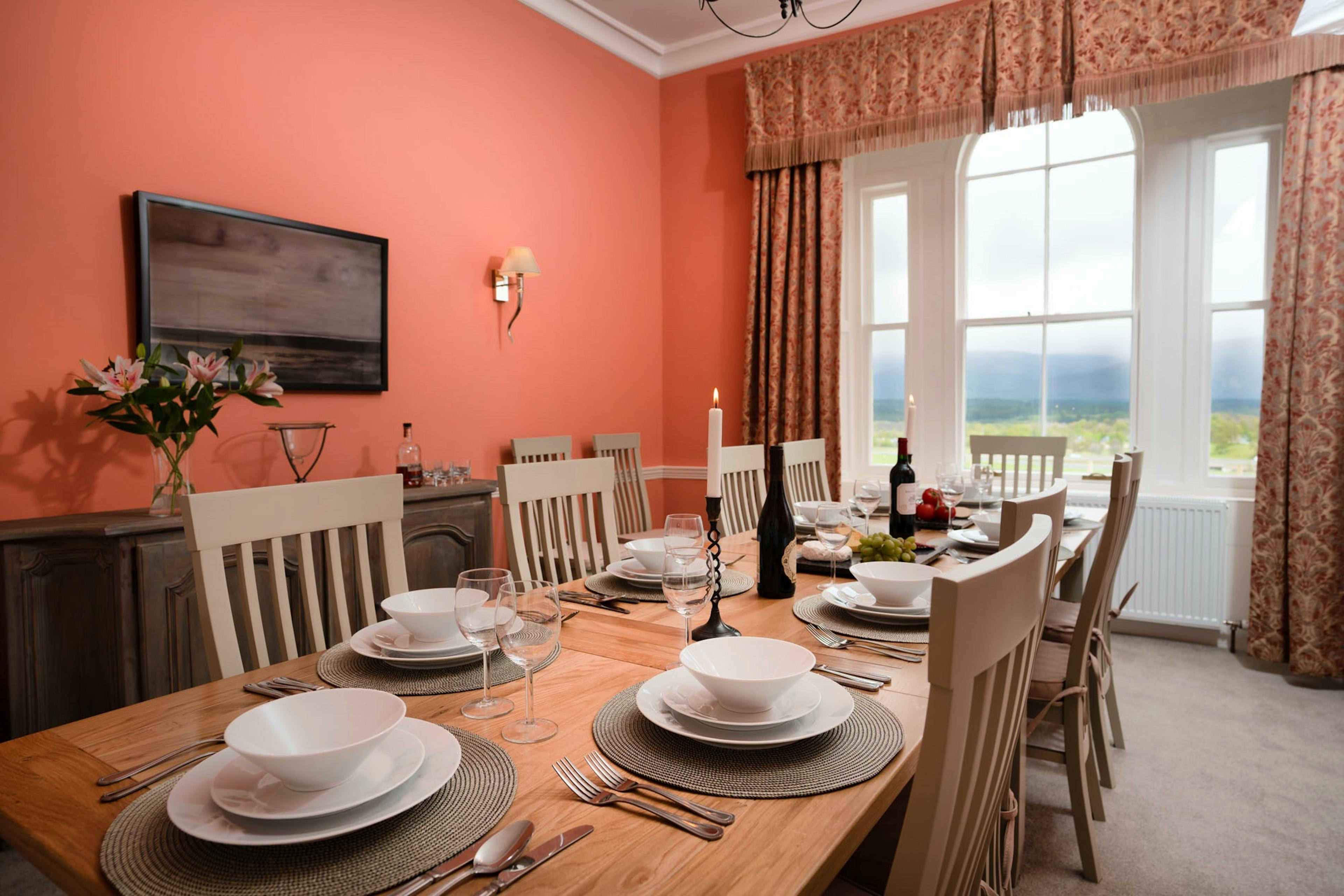 Step into the splendour of the Scottish Highlands with a stay at Kincraig House, a magnificent Grade II listed lodge on the historic Dunachton Estate near Aviemore. Once the summer home of the Duchess of Bedford, this grand Highland residence now welcomes guests to experience its unique blend of old-world elegance and contemporary luxury. With its turret bathroom, roll-top baths, vast living spaces and glorious views of the Cairngorm mountains, this is a true showpiece of Highland heritage. Lovingly restored in 2019, Kincraig House has been transformed into a luxurious country retreat that sleeps up to 18 guests in supreme comfort. Its interiors weave together period architecture, heirlooms and original features with soft Scandinavian tones and modern touches, creating a serene atmosphere of laid-back grandeur. The double-height entrance hall, complete with sweeping staircase and statement picture window, sets the tone from the moment you arrive. The living areas are vast and inviting, with multiple lounges, each featuring wood-burning stoves for cosy nights by the fire. The kitchen and dining room are perfect for grand family feasts, with space for all 18 guests to dine together while taking in sweeping views across farmland towards the Cairngorms. There’s also a rustic games room in a separate outbuilding and plenty of space for children to explore and play hide and seek in the house and gardens. Eight beautifully appointed bedrooms are spread across three floors, including a showstopping principal suite that occupies an entire wing. Here you’ll find a freestanding roll-top bath beside the super-king size bed, while several other rooms boast their own ensuite bathrooms with indulgent bathtubs and showers. The turret bathroom on the top floor is a real highlight, a domed sanctuary where you can soak in a roll-top bath while gazing out over the Highland landscape. Outside, the private gardens give way to the wider estate, with an alfresco dining area and a large hot tub for blissful evenings under the stars. Just a short drive from Aviemore and Kingussie, the house makes the perfect base for exploring the Cairngorms National Park, visiting the Highland Wildlife Park, or enjoying traditional countryside pursuits like hiking, fishing and clay shooting.