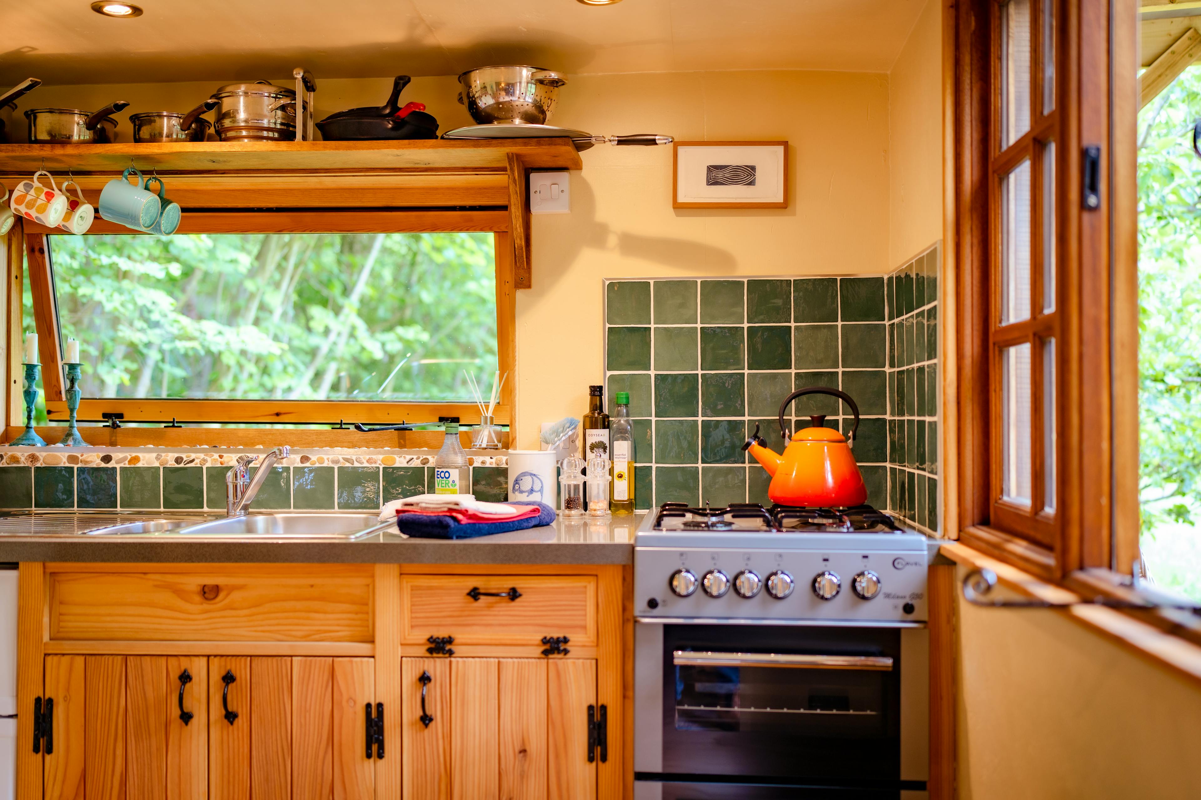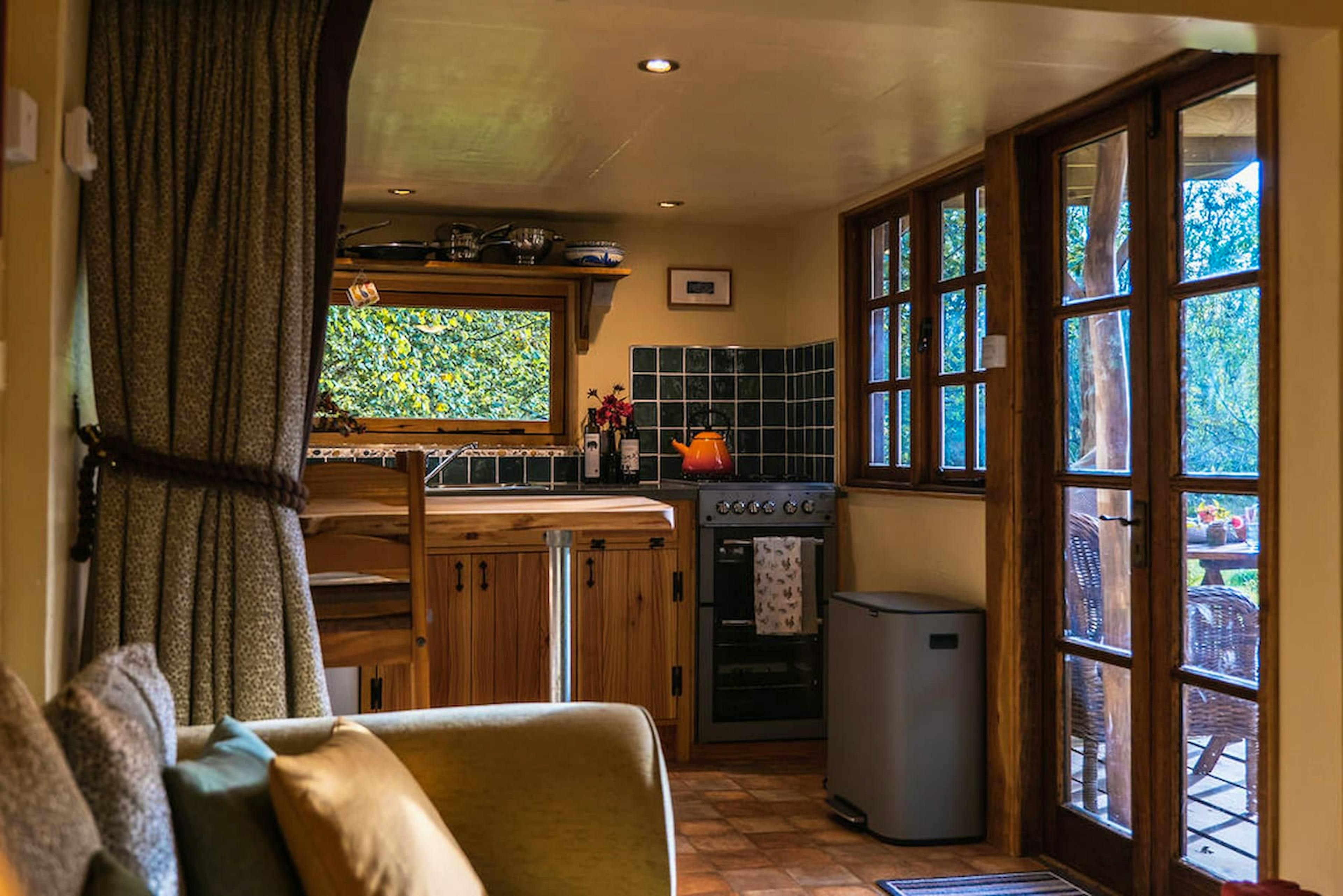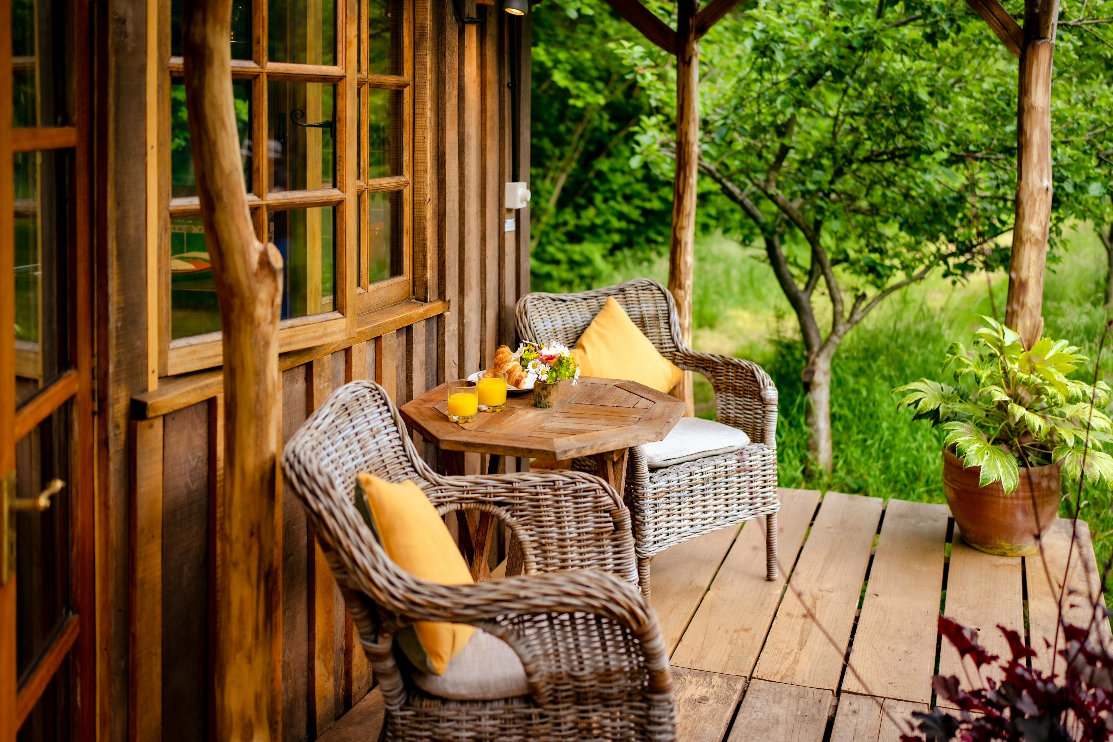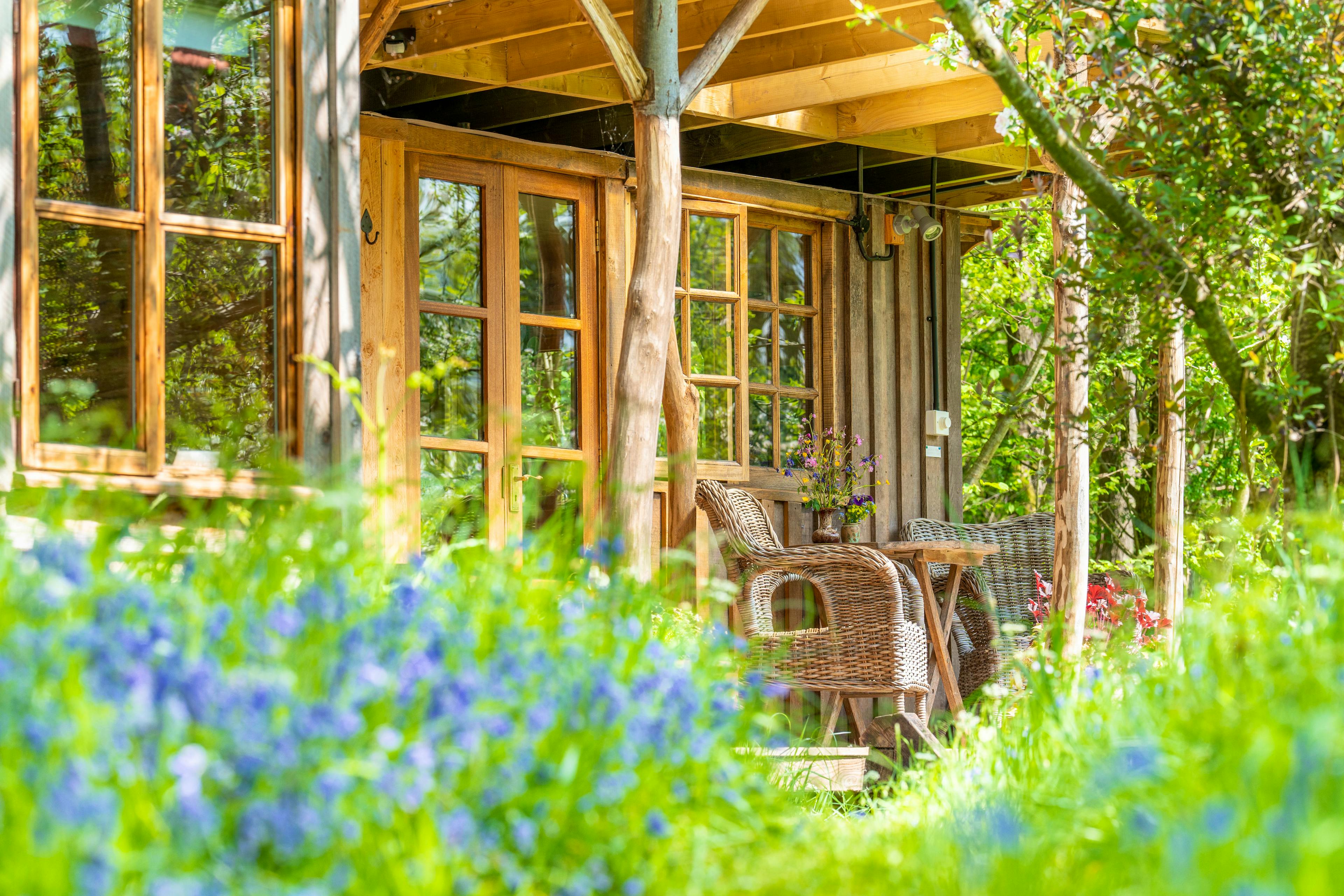 Romantic Retreat snuggled in a secluded orchard next to a babbling brook in rural Herefordshire with wild swimming and ancient woodland all around.
