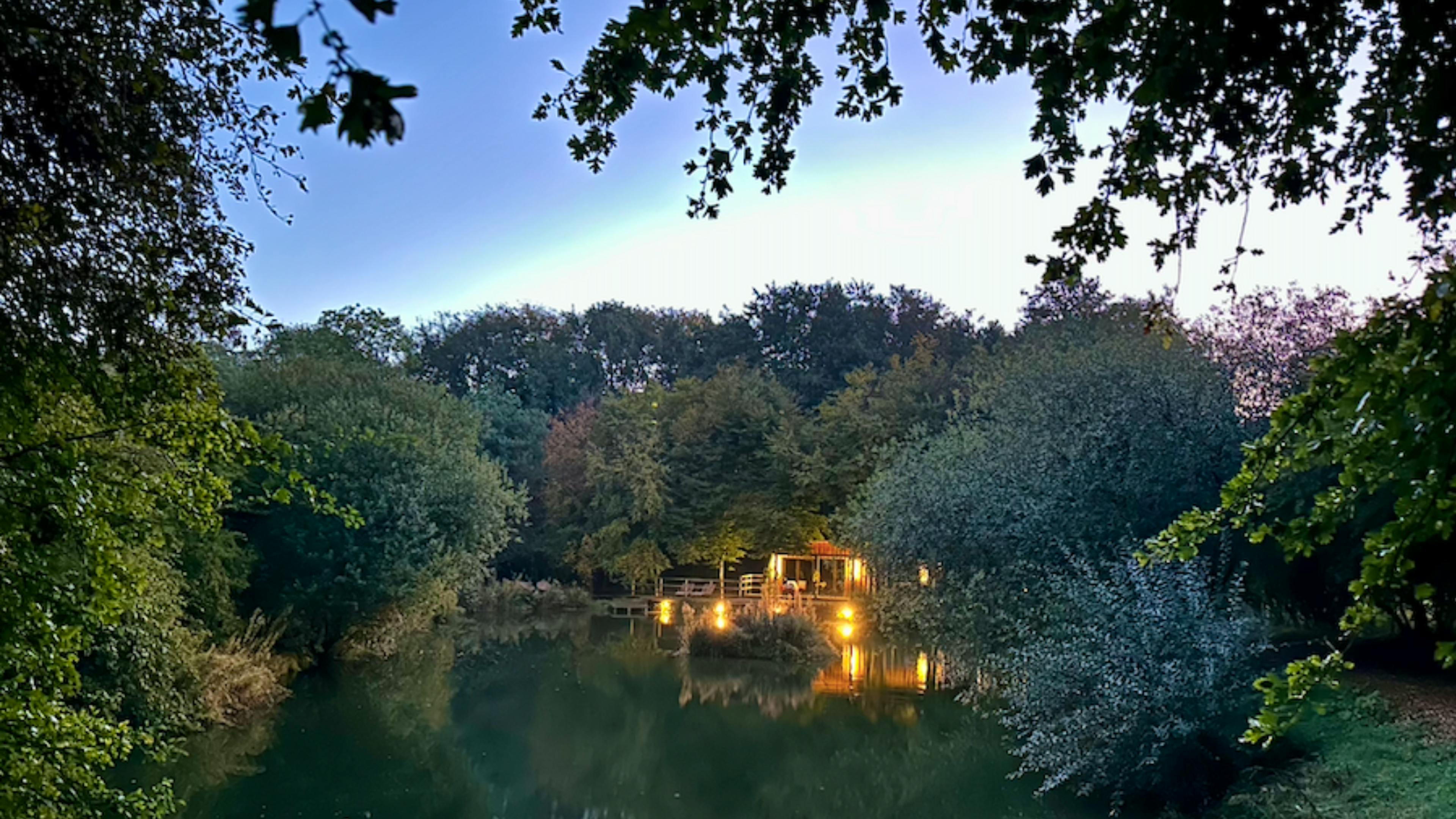 A hand-built, completely private cabin nestled in peaceful woodland with its own lake - the perfect romantic escape into nature with no neighbours or other guests.