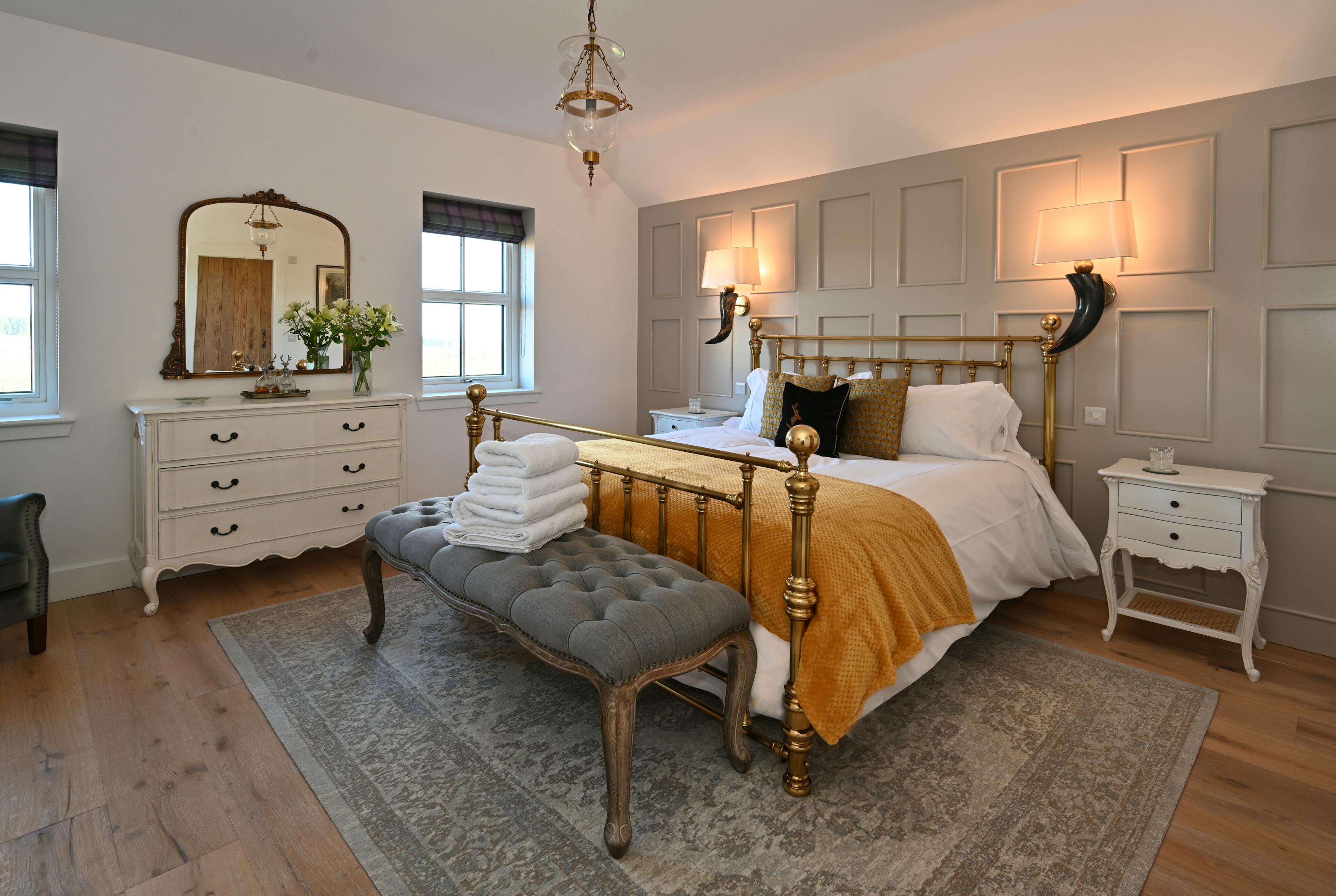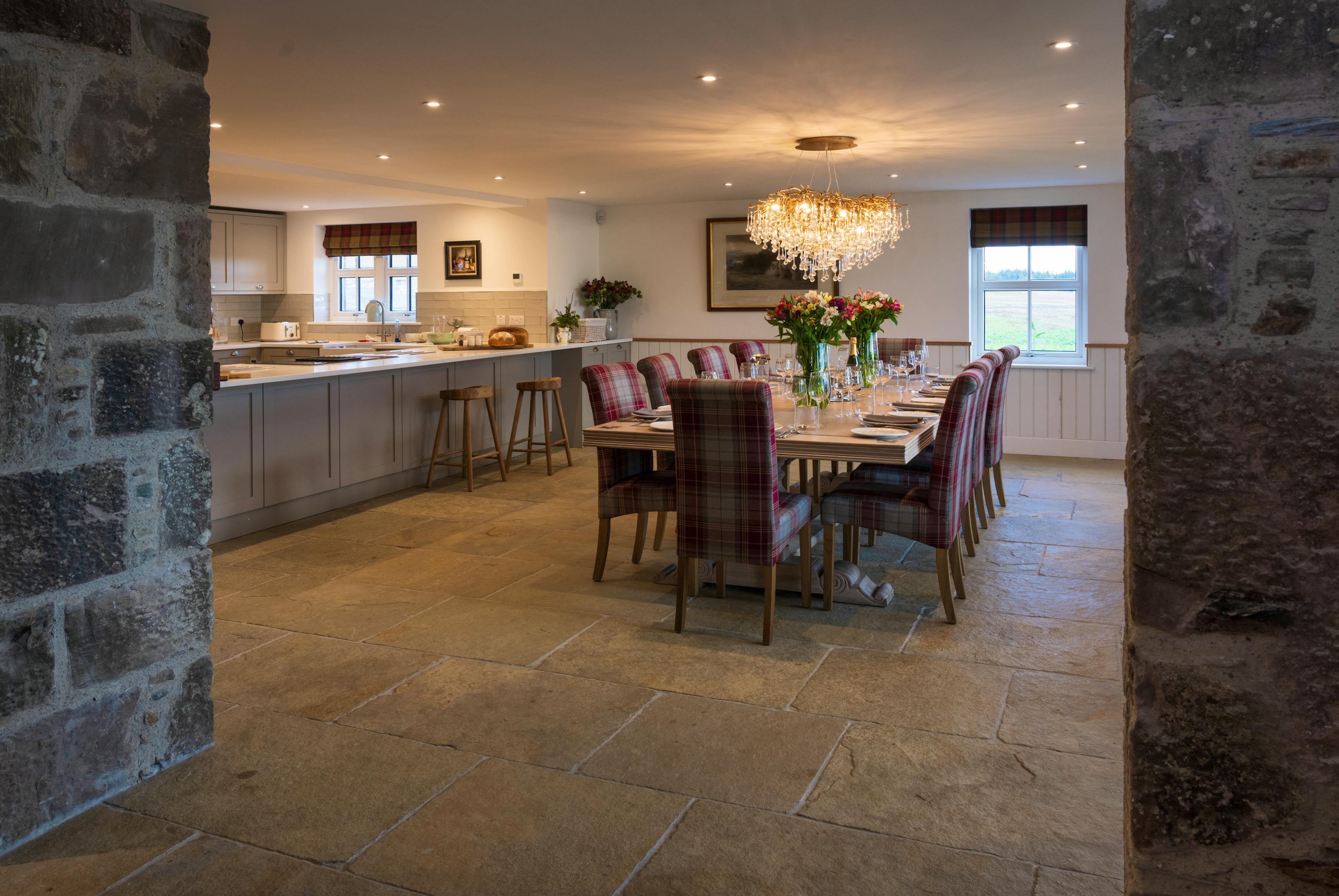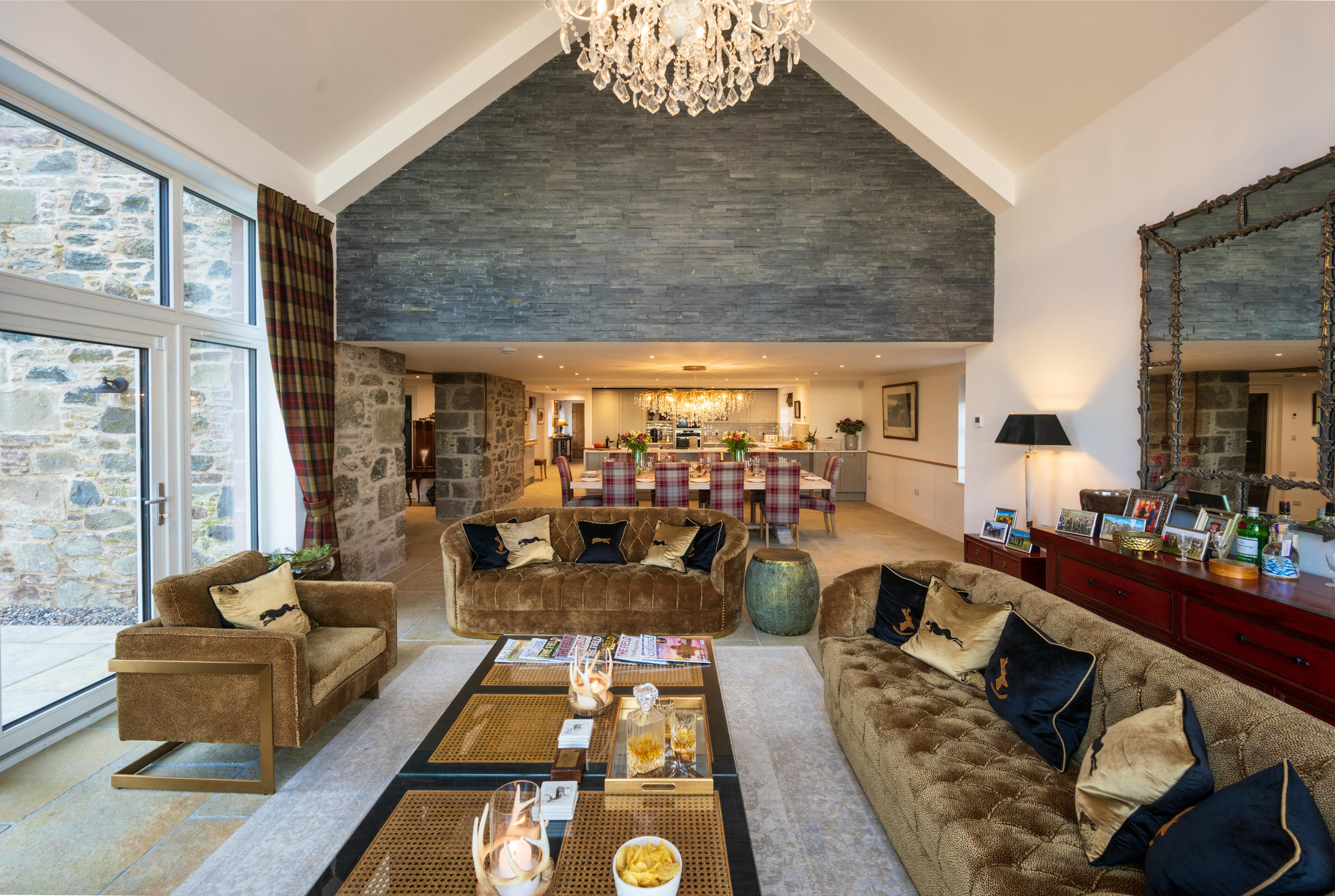 Step into timeless luxury at this beautifully restored 1850s Perthshire farmhouse, now reimagined as a modern hunting lodge with a private hot tub. Set amidst breathtaking countryside, this stylish retreat boasts double-aspect windows and a stunning architect-designed cathedral ceiling, flooding the interiors with natural light. The open-plan designer kitchen is a chef’s dream, complete with a double oven, induction hob and a generous dining area featuring its own teardrop chandelier – perfect for hosting memorable gatherings. The inviting drawing room offers sumptuous leather sofas and a cosy wood-burning stove, making it an ideal spot to unwind on cooler days. Upstairs, four beautifully appointed double bedrooms (two convertible to twins) all feature super-king beds and luxurious ensuite bathrooms. Highlights include the four-poster master bed, stylish wood panelling, window seats, and a freestanding slipper bath with fluffy towels. Outdoor enthusiasts will adore the hot tub, nestled in the scenic grounds. Practicality meets elegance with a spacious boot room for golf bags and hunting equipment, complete with a secure gun cabinet. Flagstone floors add charm and durability, while ample parking and an on-site electric car charger provide convenience. With its rustic charm, modern amenities and luxurious touches, this farmhouse offers the perfect countryside escape. Whether soaking in the hot tub or relaxing by the fire, you'll create memories to cherish in this extraordinary Highland retreat. Kipney Farmhouse is located on the Logiealmond Estate, a private working farm in Perthshire, Scotland. The estate offers a range of activities, including driven and walked-up grouse shooting, pheasant and partridge shooting and deer stalking. Enjoy fishing for salmon and sea trout on the River Tay and River Almond. Clay pigeon and rough shooting can also be arranged upon request, making it an ideal destination for outdoor enthusiasts year-round. Kipney Farmhouse offers the perfect base to explore Perthshire’s natural beauty and rich cultural heritage. Spend your days hiking the scenic Hermitage or marvel at the dramatic waterfalls. Enjoy water sports or a serene boat trip on Loch Tay, or visit nearby historical sites such as Scone Palace and the charming town of Dunkeld. The Perthshire countryside is a treasure trove of natural wonders. From the towering trees of the Hermitage and its breathtaking waterfalls to the serene waters of Loch Tay, there’s no shortage of scenic landscapes to explore. Perfect for outdoor enthusiasts, you can indulge in mountain biking, wildlife spotting and hiking through the majestic Scottish Highlands. With its endless forests, rivers and historic sites, Perthshire offers a truly immersive Scottish experience for nature lovers.