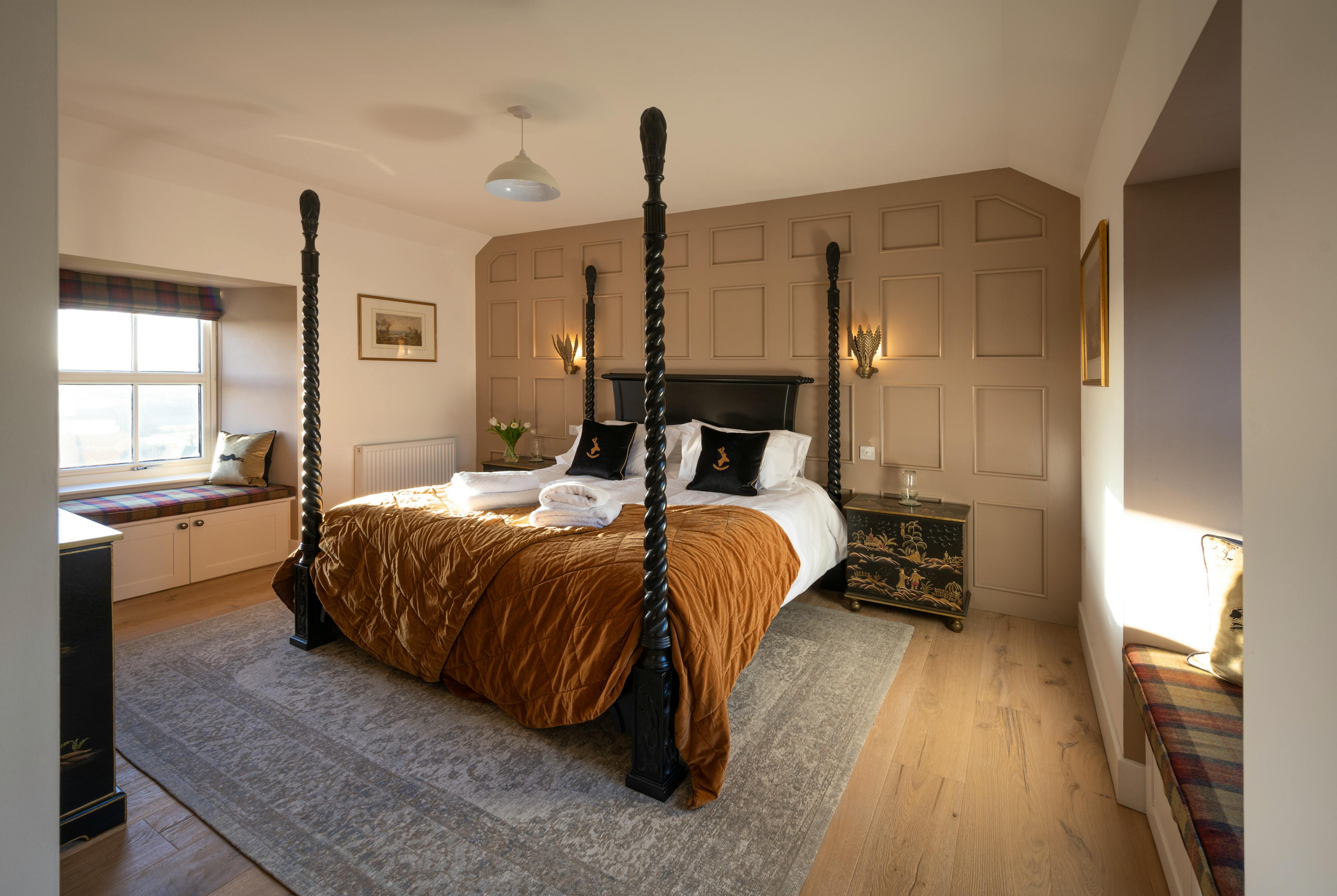 Four double bedrooms (two convertible to twins) boast super-king beds, ensuite bathrooms nd luxurious touches like wood panelling and a freestanding slipper bath.