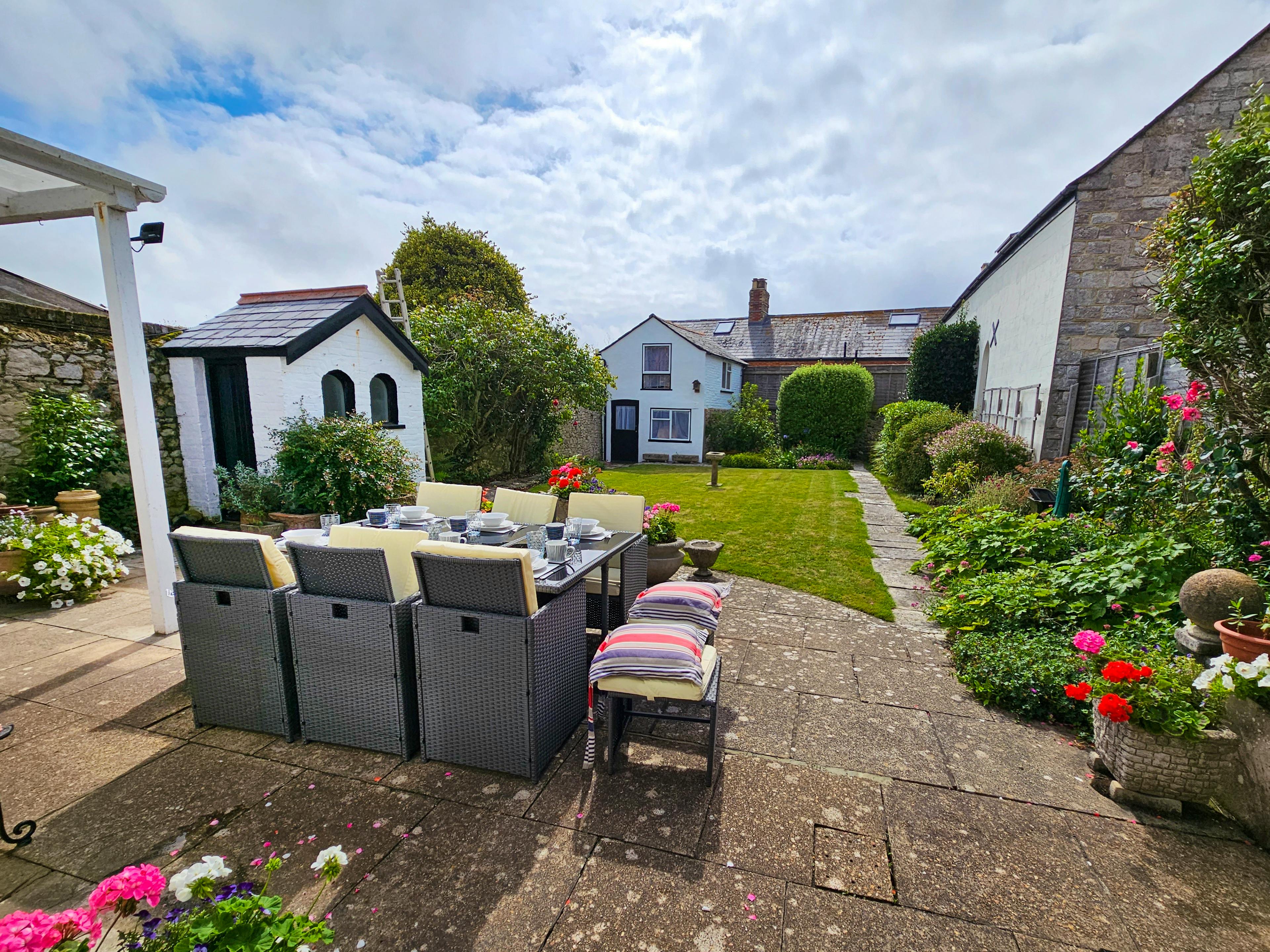 Enjoy peaceful moments in the enclosed walled garden where church spires peek above the rooftops as the sun sets.