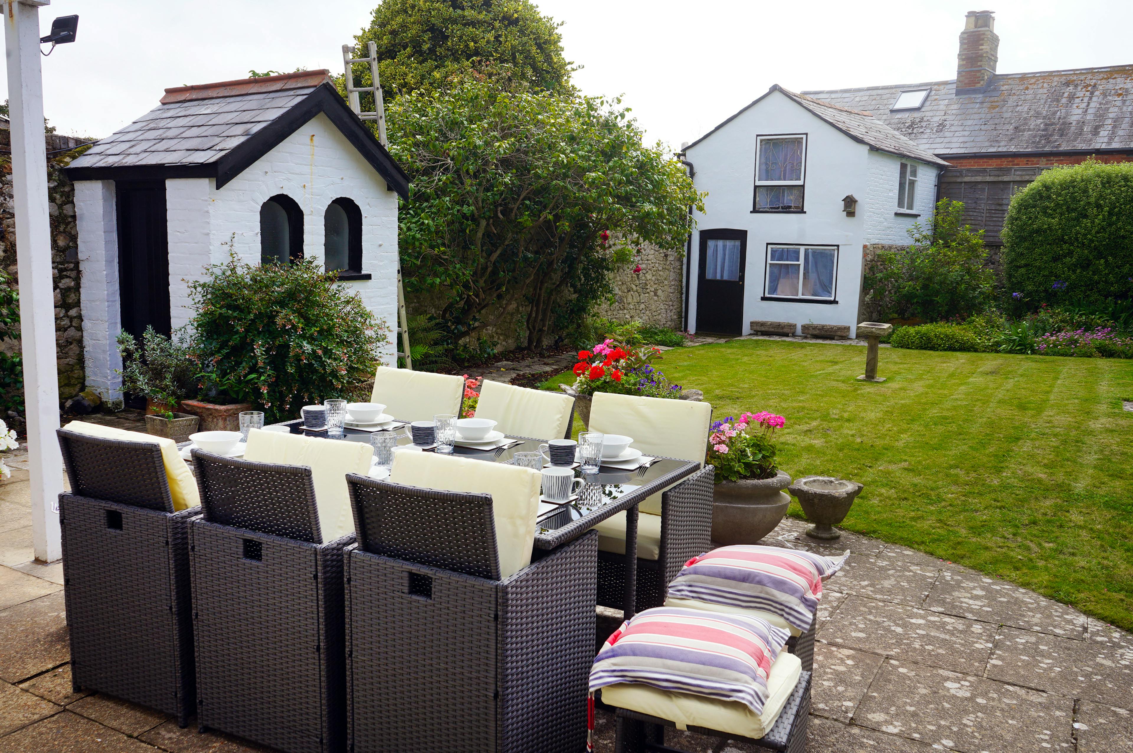 Steeped in history and perfectly placed for exploring the Island’s tranquil west side, Landguard is a Grade II listed gem set right in the centre of Yarmouth. With its striking black and white facade and a front-row position opposite the town’s historic church, this elegant home offers a wonderfully restful base after days spent sailing, beachcombing or wandering along the nearby estuary paths. Step inside and you’re greeted by spaces that balance period character with calming contemporary style, creating a stay that feels both cosy and quietly luxurious. Open the solid Georgian door and settle into the welcoming lounge, where soft lighting, comfortable seating and a gas fire create an inviting nook for lazy mornings or slow evenings. Across the hall, the formal dining room elevates simple suppers into something special with seating for eight and its own ensuite double room just beside it. The designer kitchen blends good looks with practicality, offering modern appliances, a walk-in pantry and a Nespresso machine for smooth starts to the day. Whether you’re prepping casual breakfasts or plotting a seafood feast, it’s a joy to cook in. From the kitchen, step out into the beautifully kept walled garden. With its paved terrace, climbing greenery and glimpses of Yarmouth’s chimney tops and church spires, it’s an idyllic spot for alfresco dinners or a quiet morning coffee. Upstairs, the second floor offers an ensuite double, two further double bedrooms and a family bathroom, along with an extra lounge area complete with TV and optional sofa bed. It’s a versatile setup that suits families, friends and multi-generation groups, sleeping up to ten guests when needed. Staying at Landguard means having Yarmouth’s charms right on your doorstep. Wander its harbour, explore independent shops and cafés or stroll beside the River Yar where the light dances over the water. The beaches of Colwell Bay, Freshwater Bay and Compton are all close by, offering everything from gentle swimming and paddleboarding to rugged surf and dramatic coastal scenery. Head west to Freshwater for kayaking and coasteering adventures, or spend a day walking the spectacular coastal path around the Needles. Whether you want relaxation, exploration or a taste of island life, West Wight serves it all with ease.