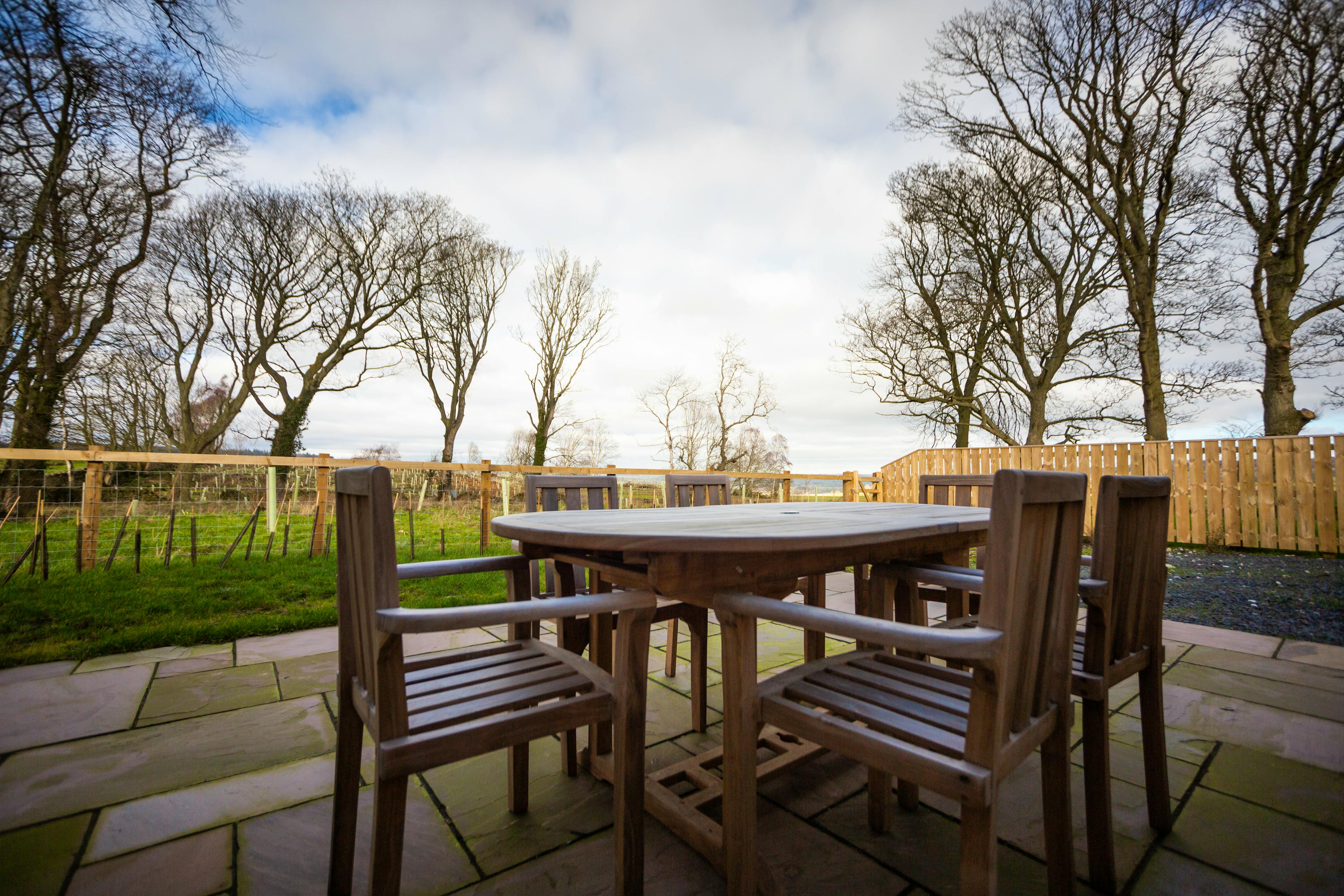 Wonderful outdoor spaces, with outside dining furniture and a grill as well as a patio and garden.