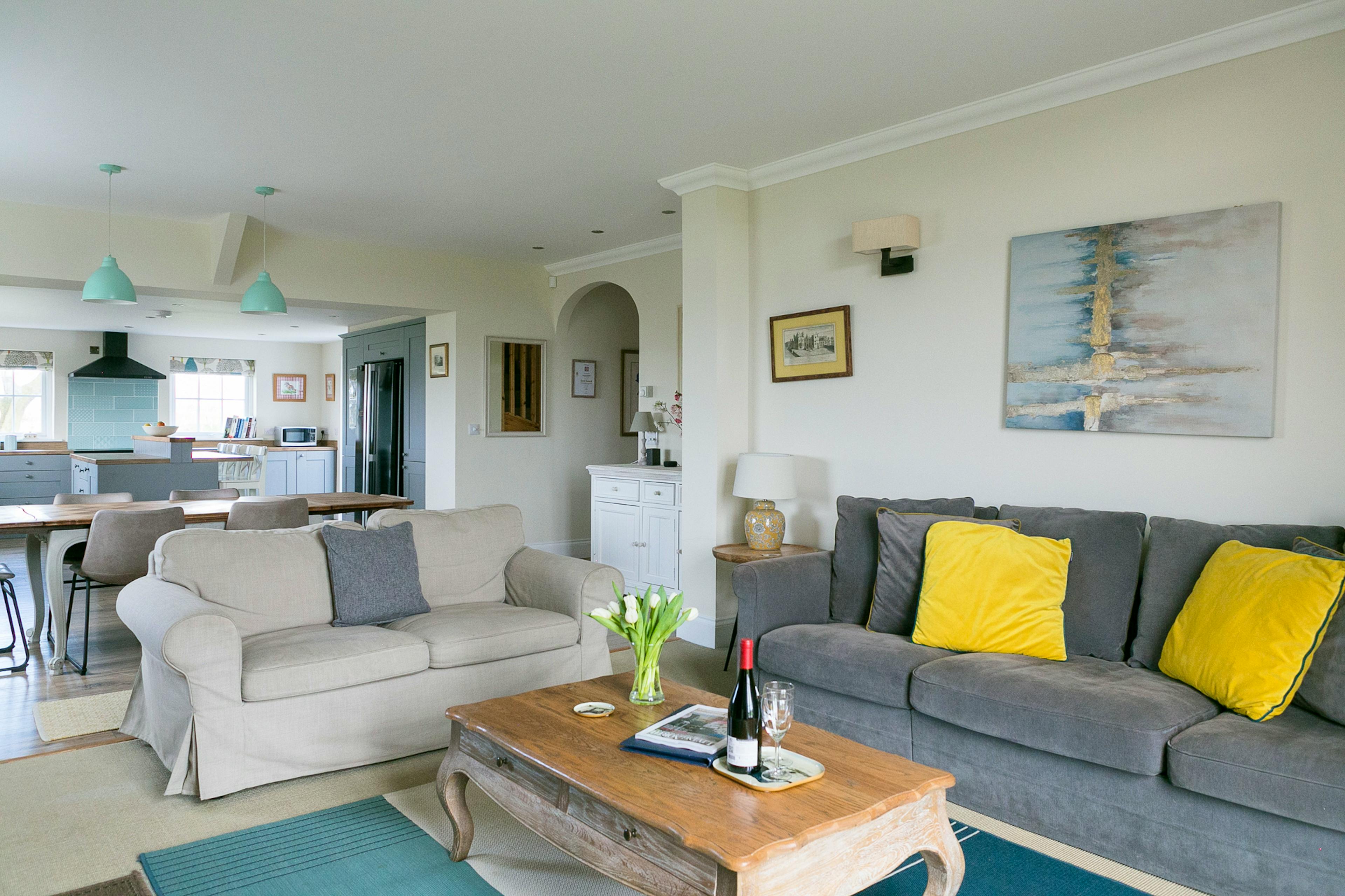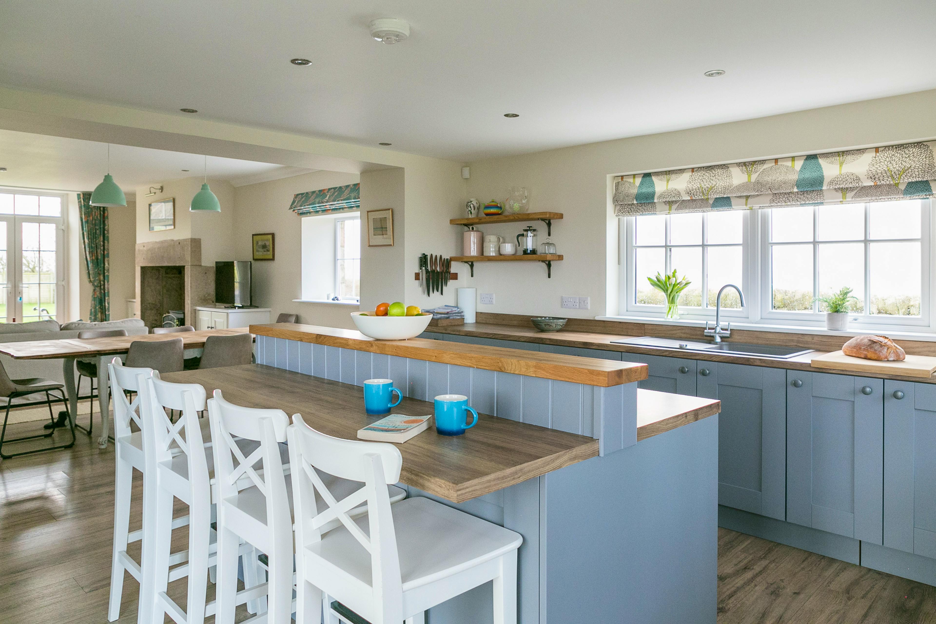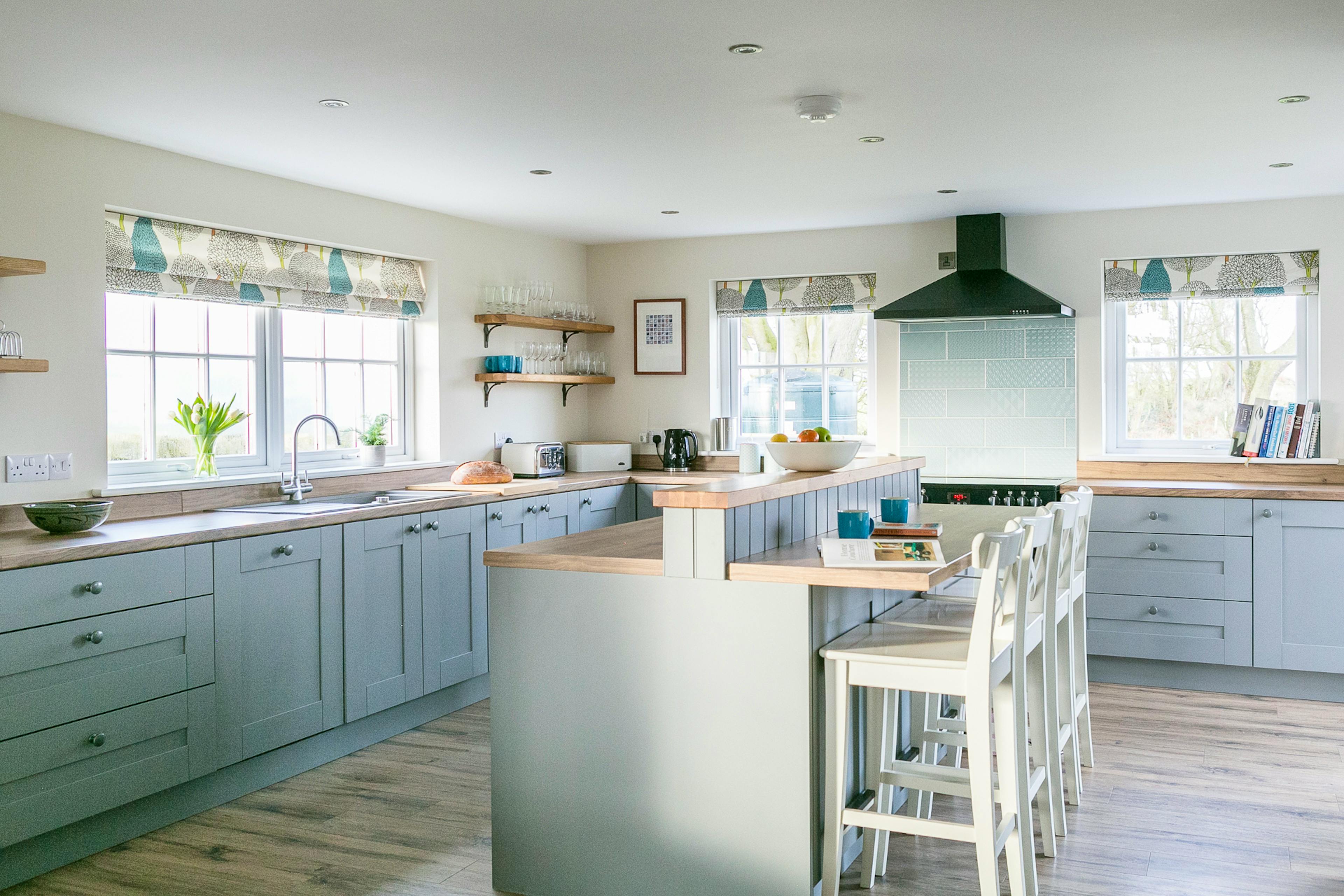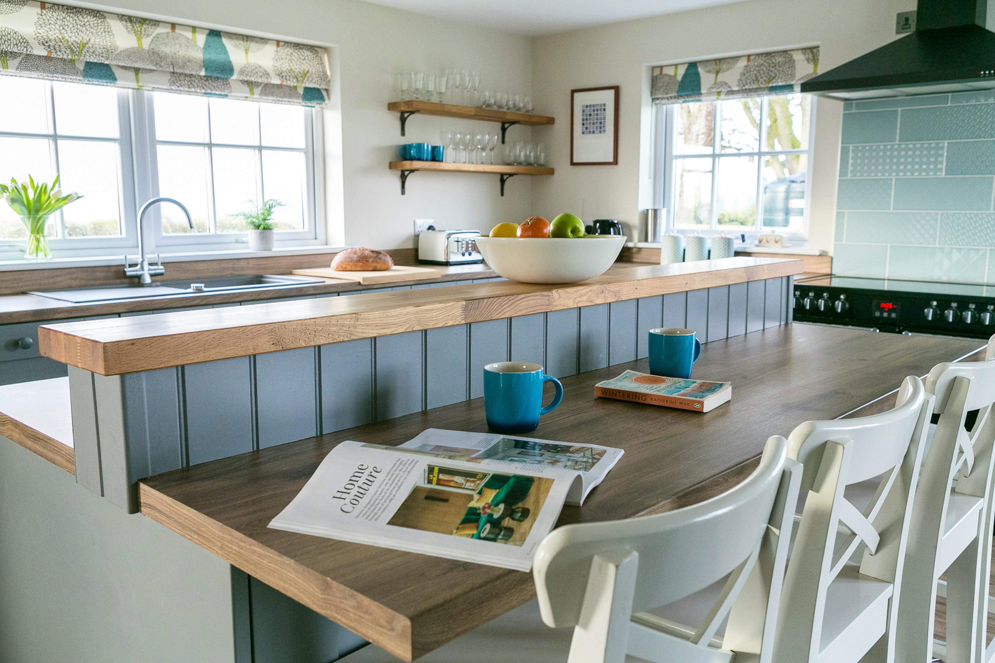 Perched high above a green valley and boasting sweeping views over the magnificent landscape of rural Northumberland, Laverick Cottage is a robust and regal three bedroom cottage, ideal for groups of friends or families looking to spend some time around Hadrian's Wall. With its historic architecture, enviable hillside position and contemporary amenities throughout, Laverick Cottage is a real delight to stay in, and makes it for the perfect home away from home for hikers, foodies, young families and outdoors enthusiasts alike. The classic country-style kitchen is one of the highlights of the property, well equipped with a large American-style fridge freezer, ultra-modern electric range, and high-spec appliances. Arranged around a large central island, the kitchen is a sociable, open plan space which also encompasses the dining room area with its eight seater table, just made for enjoying relaxed evening meals. French doors lead from the kitchen space out onto the patio and garden, which face south to make the most of long sunny summer evenings. On the terrace you'll find a wooden table and chairs, the perfect spot to sit with your morning coffee, or a 6pm sundowner, and take in those awesome views. You can also access the garden via the lounge, an ultra-comfortable space which guests tend to make for after dinner to enjoy the toasty warmth of the wood-burning stove, and read, play games, or simply chat on the low-slung sofas. The first bedroom is on the ground floor, making this a good choice for parties where a guest has limited mobility, and features a super-king sized bedroom which can be divided into twin singles, and an en suite shower room. Upstairs you'll find two more bedrooms, one with extraordinary views through the picture window, a versatile super-king/ twin single bed set up, and an en suite with a magnificent roll-top bath tub. The other bedroom is a twin and also has a private shower-room, and south facing views. All of the beds benefit from deep mattress toppers, Egyptian cotton bedlinen and luxury pillows, while the towels are all fluffy, white and decadent. Whether you're a seasoned Northumberland visitor or looking to spend time in this beautiful and unspoiled region of the UK for the first time, Laverick Cottage is the ideal base from which to explore. Rolling hills stretch as far as the eye can see, with a network of bridle paths, hiking trails and cycle routes snaking across it. Whether you're into ancient history, hiking, fishing, or country pubs, Laverick Cottage is the perfect spot for you. Take the hike to Vindolanda, the historic Roman fort on Hadrian's wall, head down to the pretty market town of Hexham, or make the day trip to Newcastle and take in the shopping, eating and culture there. There are also miles of sparsely populated coastline within easy driving distance.