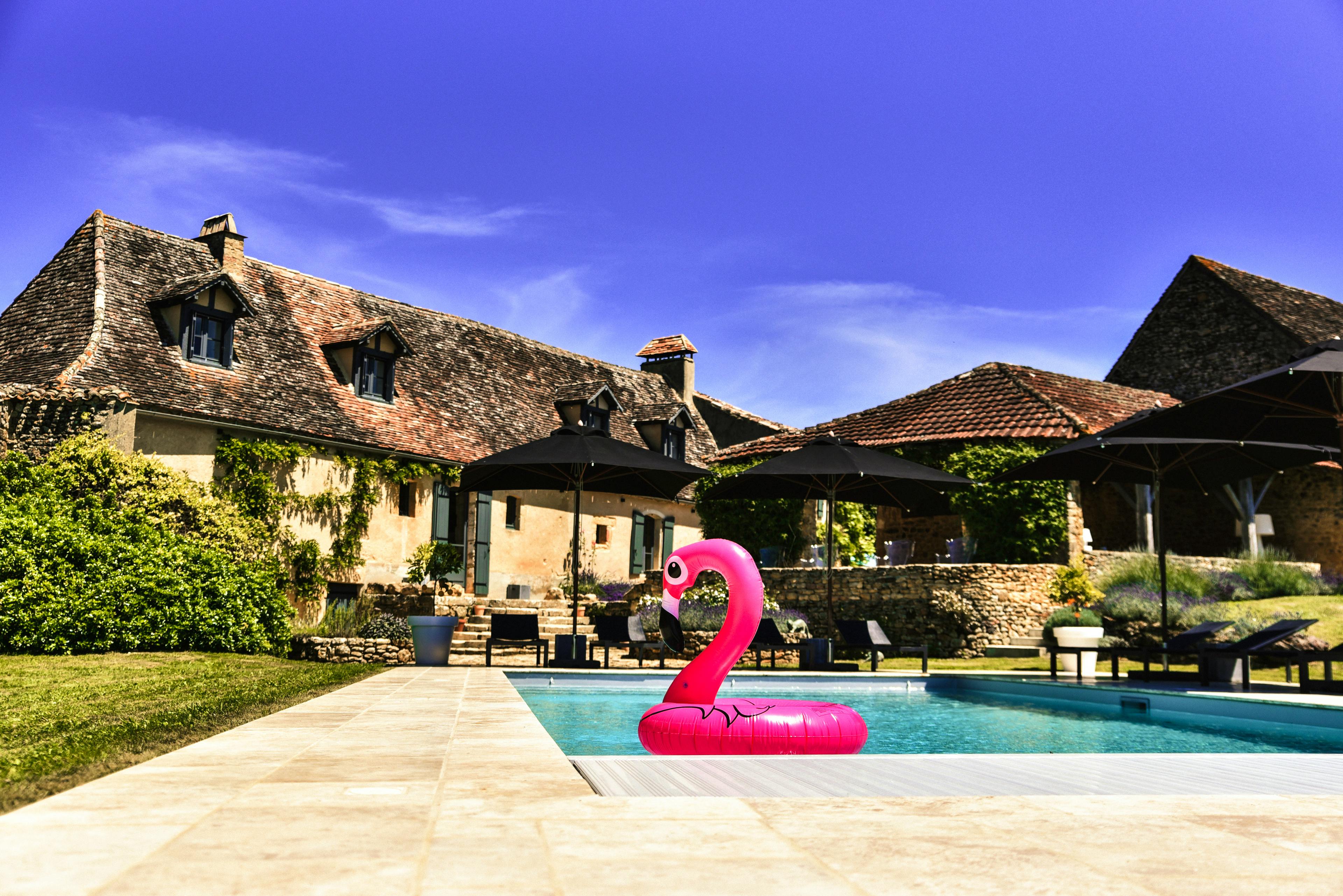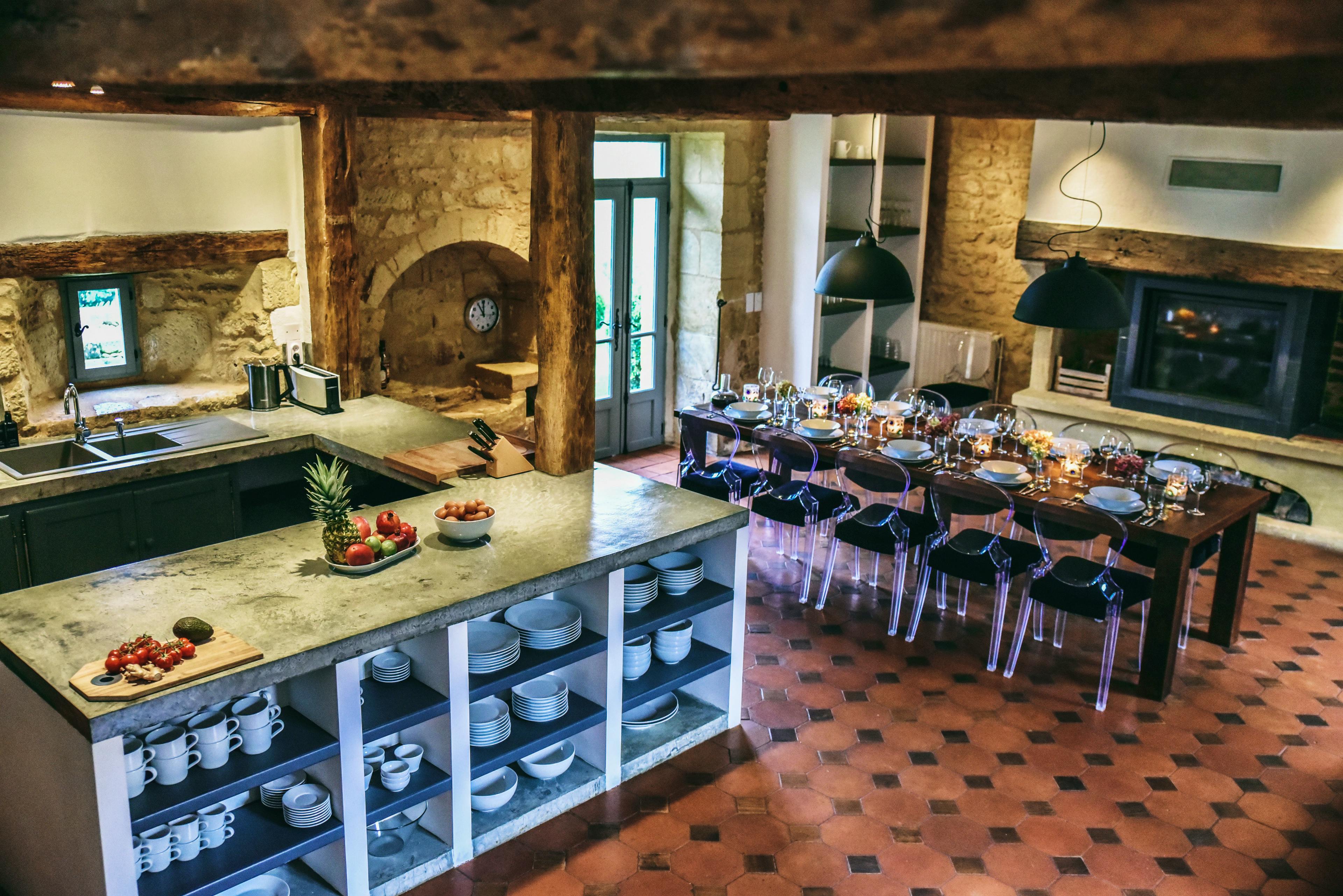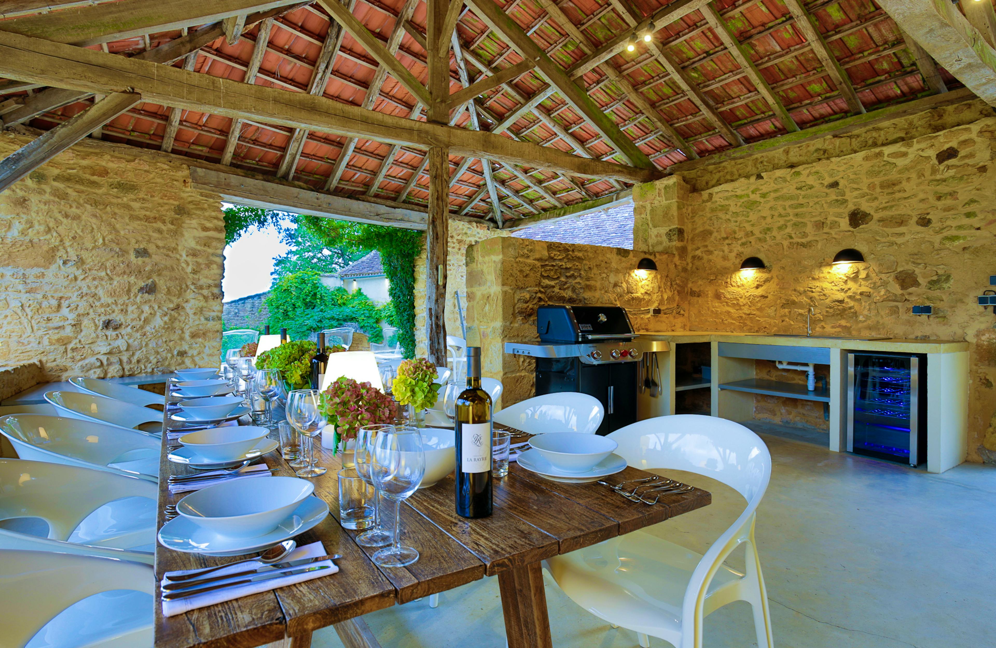 Le Mas is one of those places that instantly makes you exhale. A beautifully restored Dordogne farmhouse where thick stone walls, vast fireplaces and exposed beams meet calm, contemporary luxury. Renovated with the help of an interior designer, the house honours its historic soul while delivering discreet, five-star comfort. The accolades speak for themselves too, from a five-star Ministry of Tourism rating to glowing national press praise. At the heart of the house is the impressive kitchen, a generous, character-filled space with terracotta floors, a monumental stone fireplace and a long table made for lingering meals. It’s superbly equipped for keen cooks, while doors and staircases lead off to the rest of the house, making it a natural hub for gathering together. The adjoining sitting room is equally inviting, with huge sofas, a wood burner and doors opening straight out to the pool and summer kitchen. Outside, life revolves around the private heated swimming pool, open from April to October and positioned to soak up the views. The saltwater pool is gentler on skin and eyes, and is surrounded by a spacious terrace dotted with loungers and parasols. Just opposite sits the glorious covered summer kitchen, once a barn, now a shaded, open-sided space with dining and a large Weber gas barbecue. As day turns to night, atmospheric lighting transforms it into a magical spot for dinners, games and late-night conversations. Le Mas sleeps up to 12 guests across five beautifully finished bedrooms, all with ensuite bathrooms. Upstairs are three king size doubles with air conditioning, wooden floors, exposed beams and views over fields, woods and the pool. Two of these have indulgent bathrooms with freestanding baths and walk-in showers. On the ground floor are two twin bedrooms, one of which can be made into a king size double, both with ensuite showers. One ground floor bedroom is wheelchair accessible. The gardens are a joy to explore, with fruit and nut trees, scented planting, hidden benches and converted outbuildings housing a covered pétanque court and table tennis area. The setting places you right in the heart of what makes the Dordogne so special. Within a short drive you’ll find some of France’s most beautiful bastide towns, including Monpazier, Beaumont du Périgord and Issigeac, each with lively weekly markets where stalls overflow with local produce, antiques and regional delicacies. History lovers are spoilt for choice, with countless châteaux scattered across the landscape, from dramatic hilltop fortresses like Beynac and Castelnaud to elegant estates such as Biron and Milandes, once home to Josephine Baker. The Dordogne and Vézère rivers invite long, lazy days canoeing past limestone cliffs, medieval villages and riverside beaches, while walkers and cyclists can head straight out onto woodland trails and country lanes from the doorstep. Food and wine are an essential part of life here too, with truffle hunting in season, vineyard tours around Bergerac and Saint-Émilion, and unforgettable meals enjoyed at local restaurants or back at Le Mas under the stars. Whether your days are filled with exploring, eating, swimming or simply soaking up the views, this is a region that rewards slowing down and savouring every moment.
