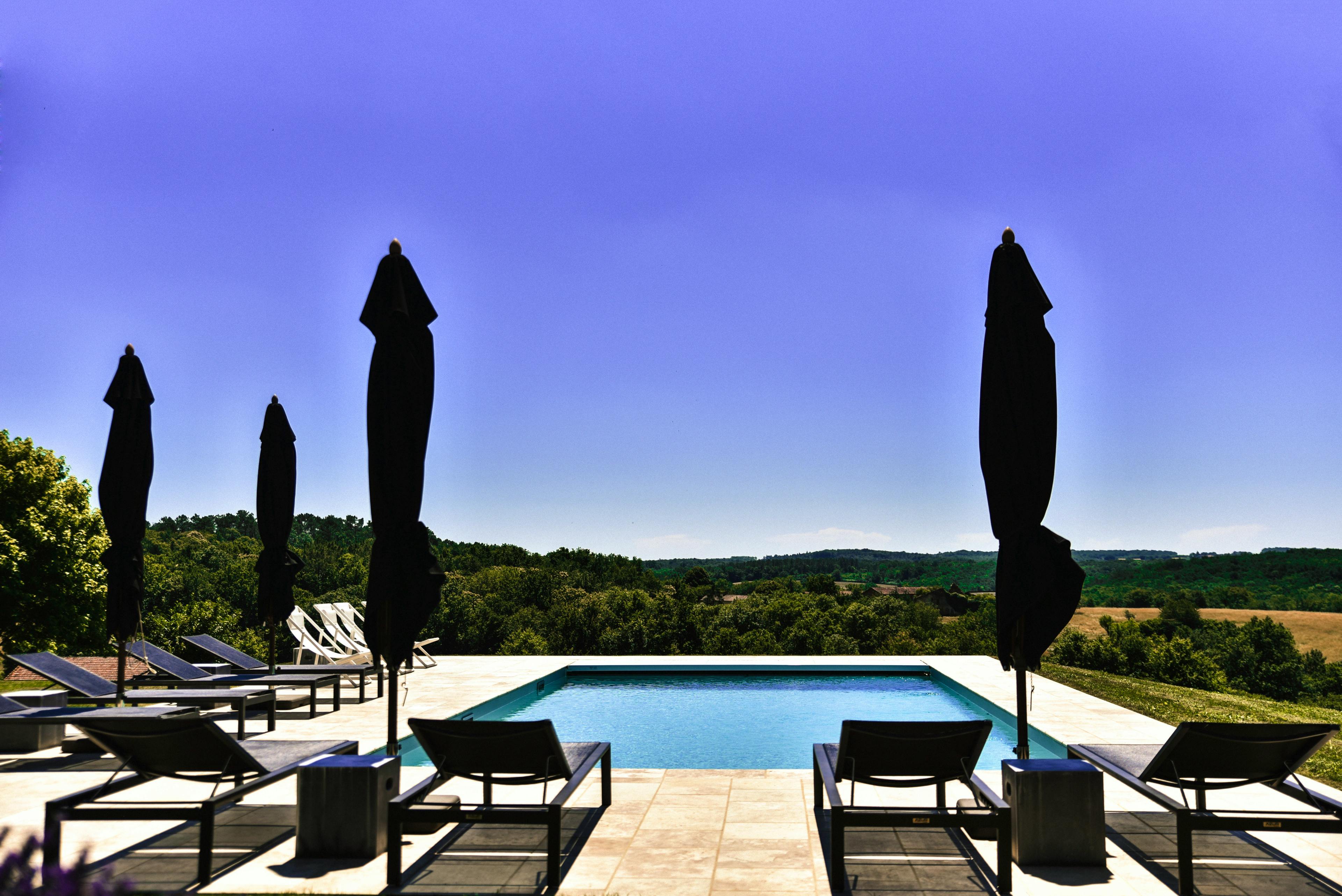 Elegant five-star farmhouse in the Dordogne with heated pool, summer kitchen and far-reaching countryside views.