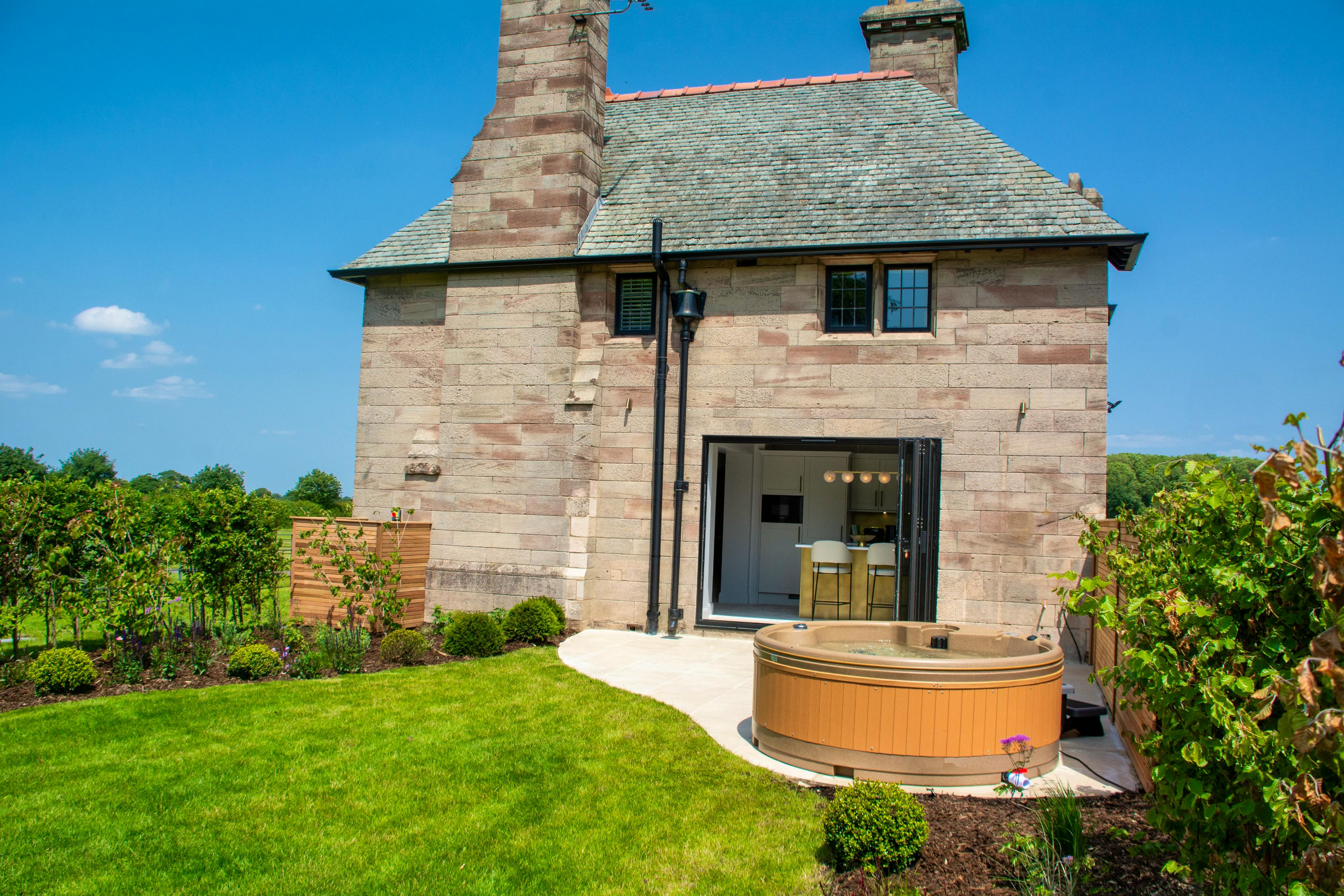 This stunning and opulent lodge for two offers a true romantic retreat in the marvellous Cheshire countryside with a hot tub and luxury interiors.