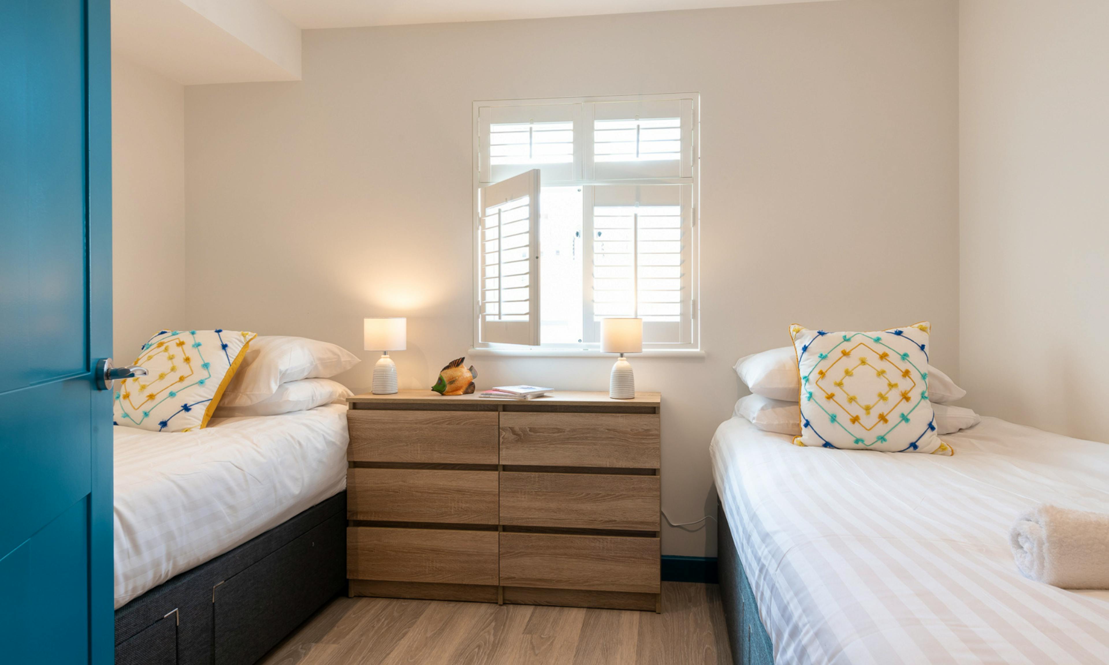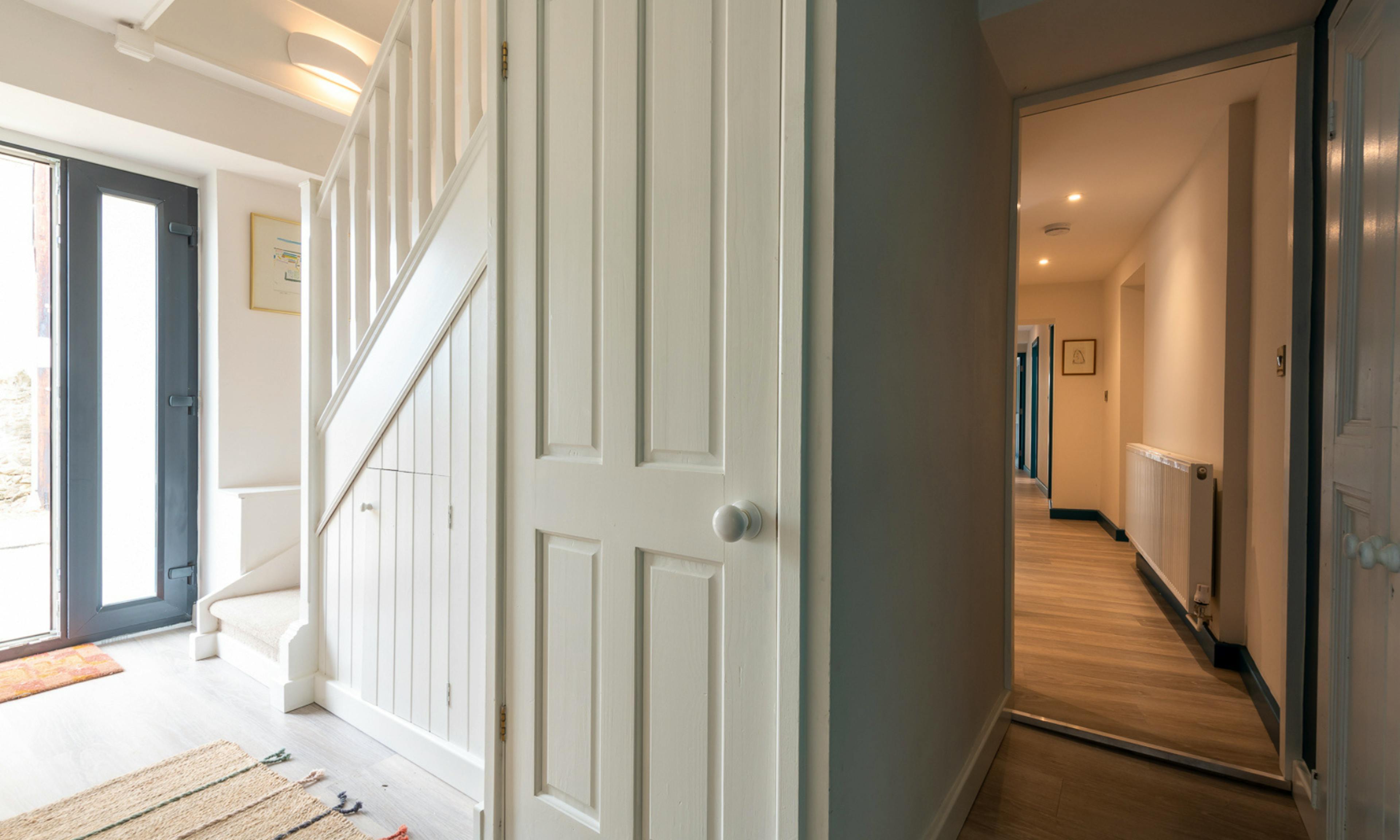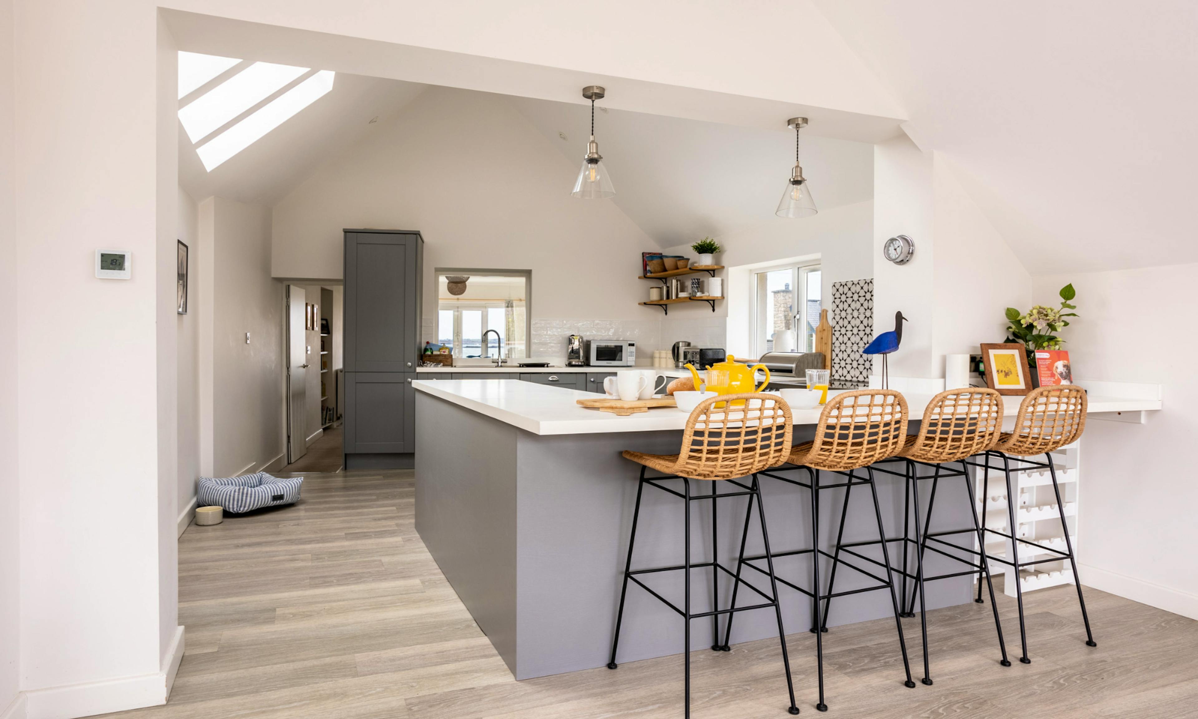 Tucked away in the heart of Rhosneigr and just a two-minute stroll from the beach, Llys Y Celeste is a beautifully designed coastal retreat with sweeping sea views and space for up to 10 guests. Whether you’re planning a seaside family getaway or a relaxing break with friends, this modern, pet-friendly bolthole has everything you need – from sociable spaces to quiet corners. Step inside and you’ll find all five bedrooms and bathrooms thoughtfully arranged on the ground floor – ideal for guests who’d rather avoid stairs. There are two generous king size rooms (one with sea views, the other ensuite), a super-king room with patio doors to the courtyard garden, a cool twin room and a cheerful bunk room that’s perfect for kids. With three additional bathrooms (including a fun hexagonal-themed shower room), there’s no queuing for the morning shower. Upstairs is where the magic really happens. The open-plan living, kitchen and dining space is a showstopper – light-flooded and airy with vaulted ceilings, skylights and a huge glass wall that opens out onto a decked terrace overlooking the sea. Snuggle into the oversized sofas with a good book, or perch on the cushioned window bench and watch the waves roll in. The stylish kitchen is made for group dinners and long, lazy breakfasts, while the terrace is perfect for sunset drinks with a sea breeze. Outside, there’s a quiet courtyard garden that's a real little suntrap – ideal for your morning coffee or simply unwinding with a glass of wine after a fun day on the beach. Speaking of the beach, the sand is only 100 metres away, which is extremely conveniend. Rhosneigr is one of Anglesey’s coastal gems, with surf shops, cafés and award-winning beaches right on your doorstep. Hit the waves with kite surfing or paddleboarding lessons, browse boutique stores or tuck into fresh seafood at The Oyster Catcher. And when you're ready for a slower pace, take a peaceful walk around nearby Llyn Maelog or head out along the Anglesey Coastal Path to spot seabirds and soak in the views.