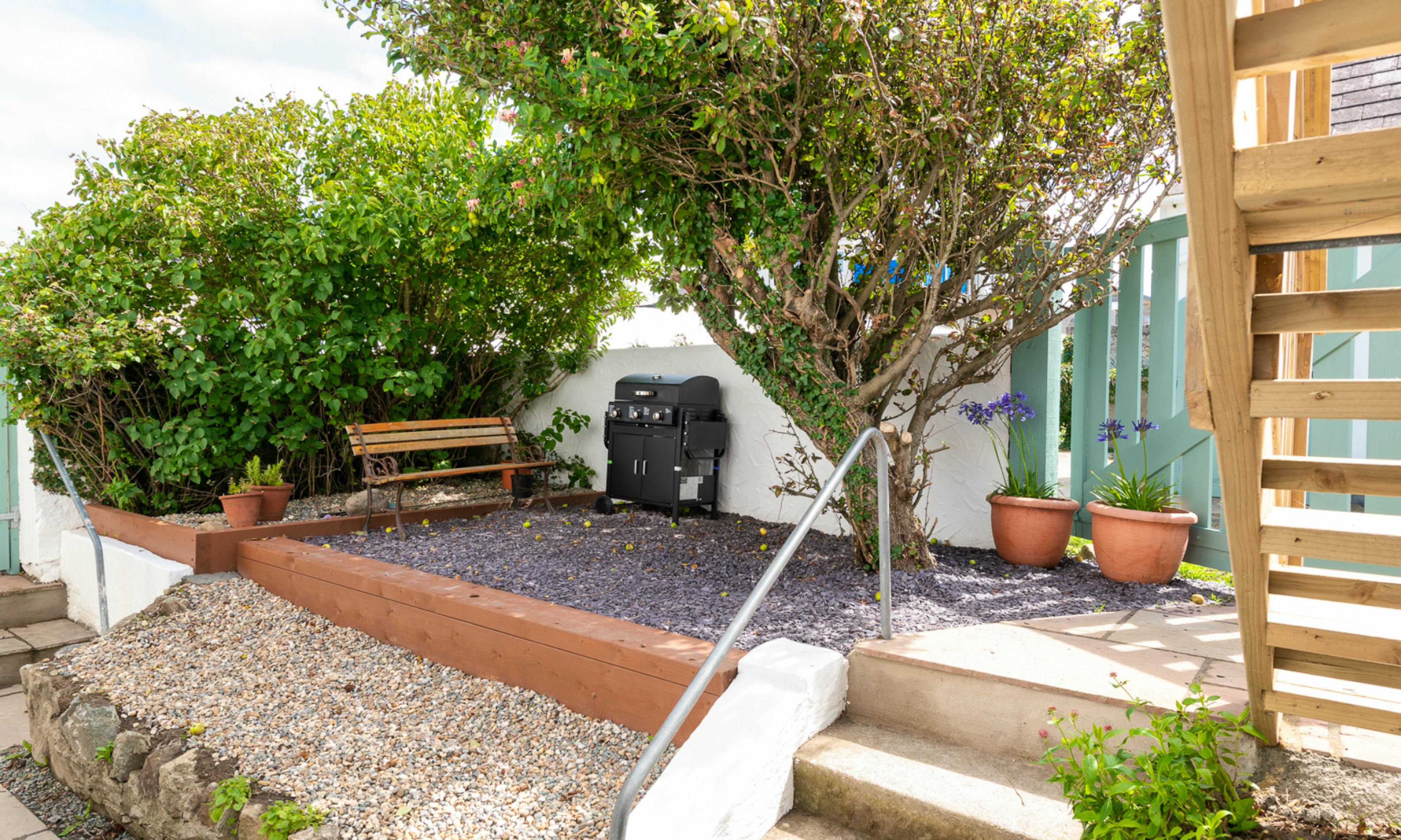 A peaceful courtyard garden offers a sunny retreat after the beach.