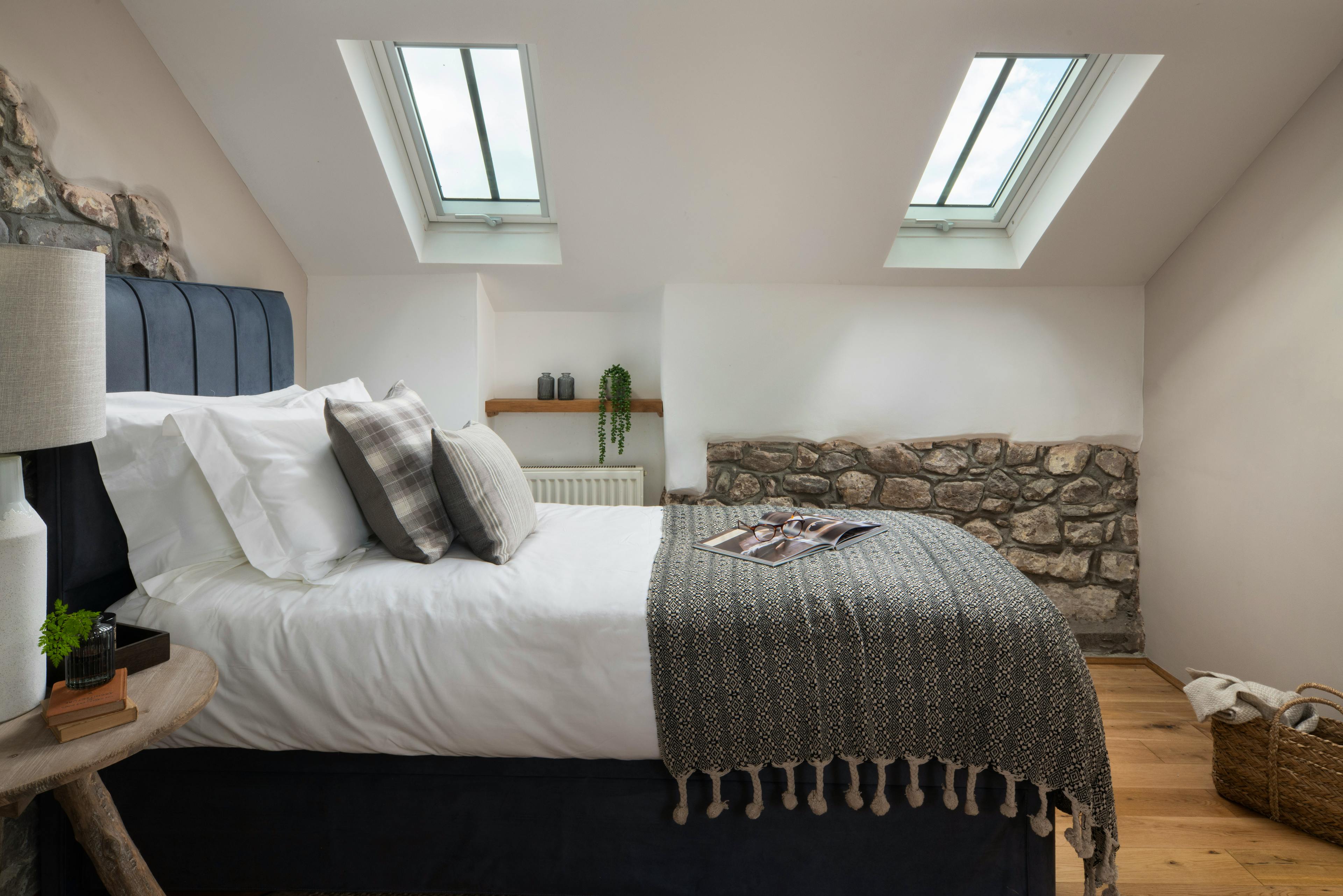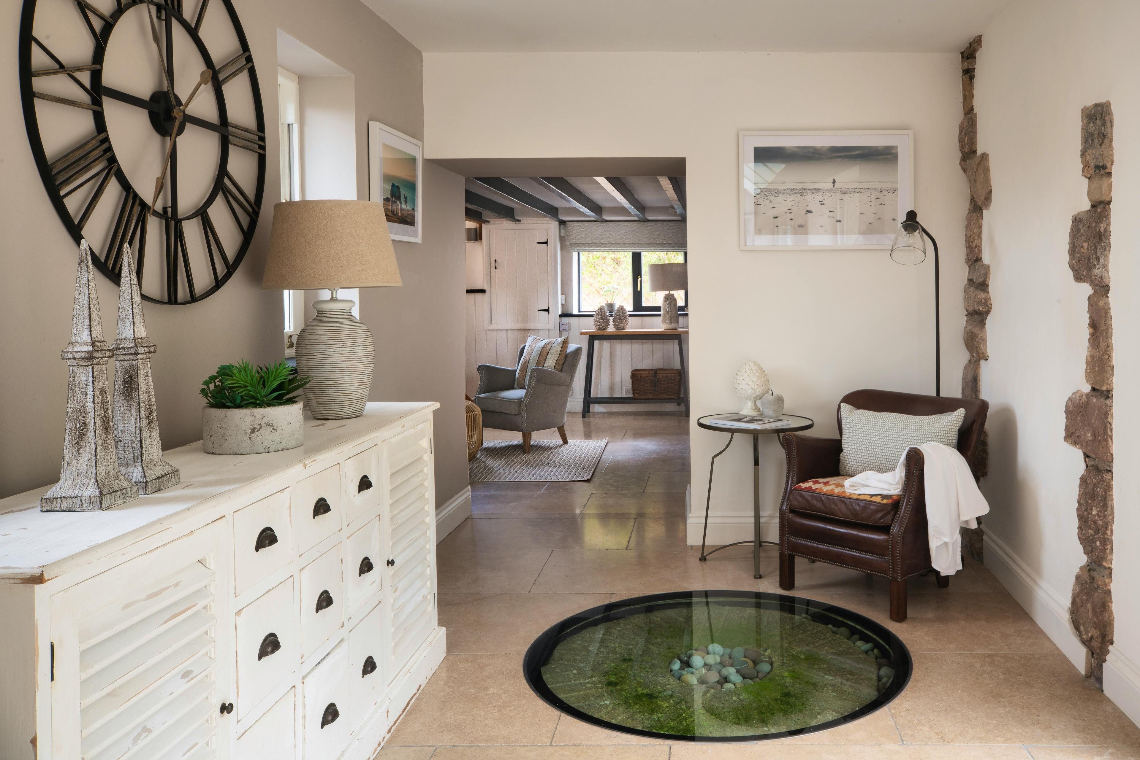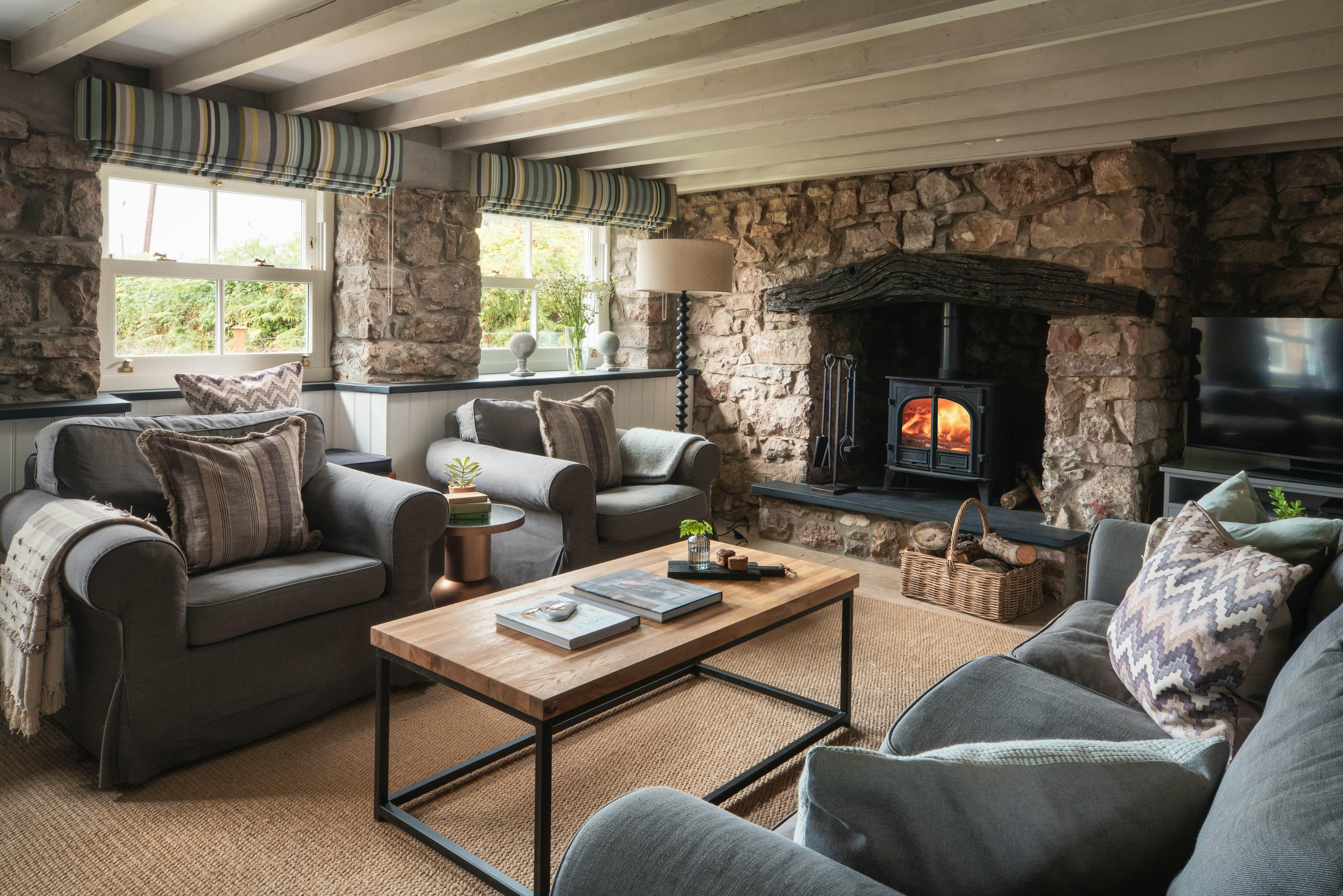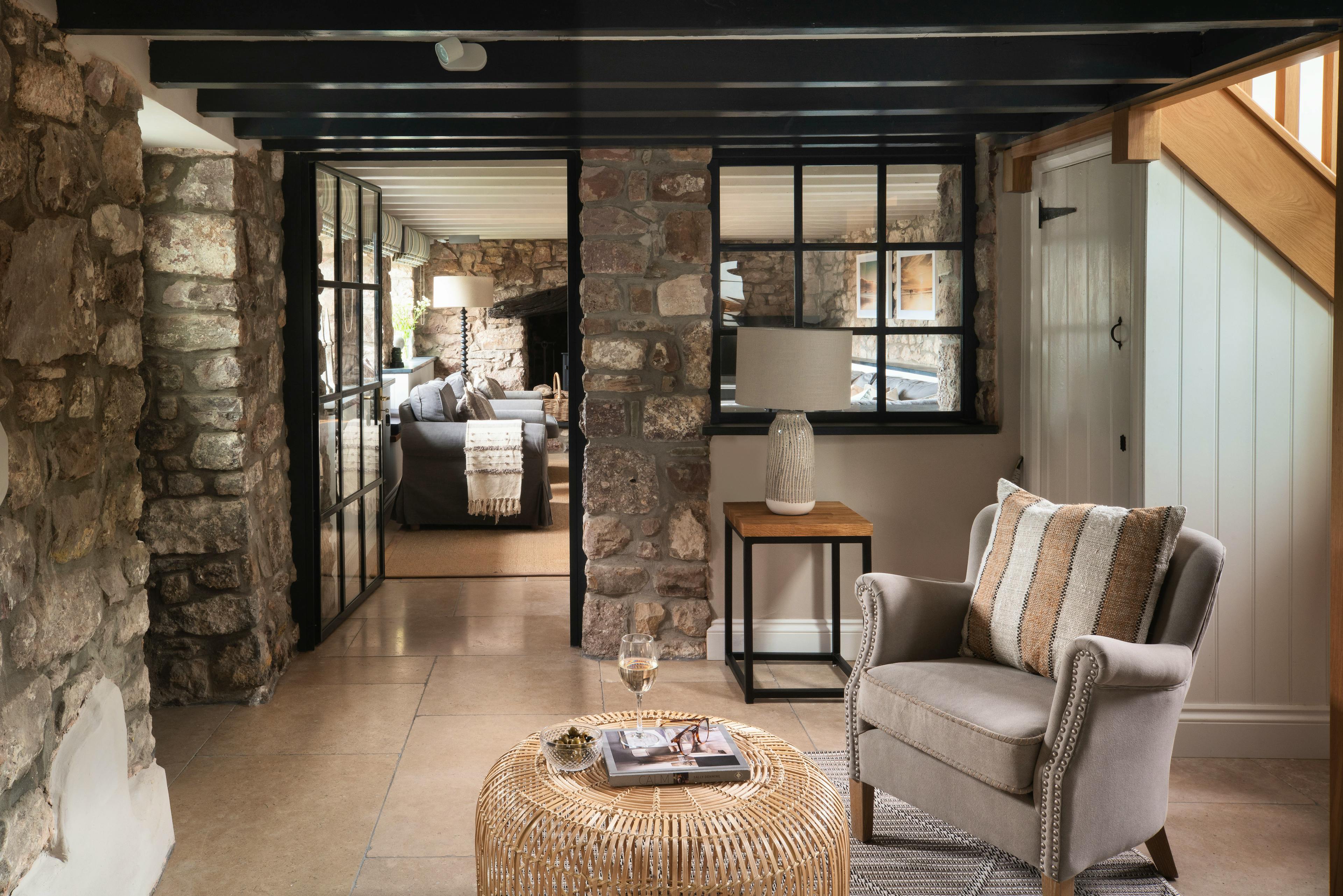 A 400-year-old water mill restored in a contemporary style provides modern luxury in the south Wales, as well as a log fire and professional kitchen.