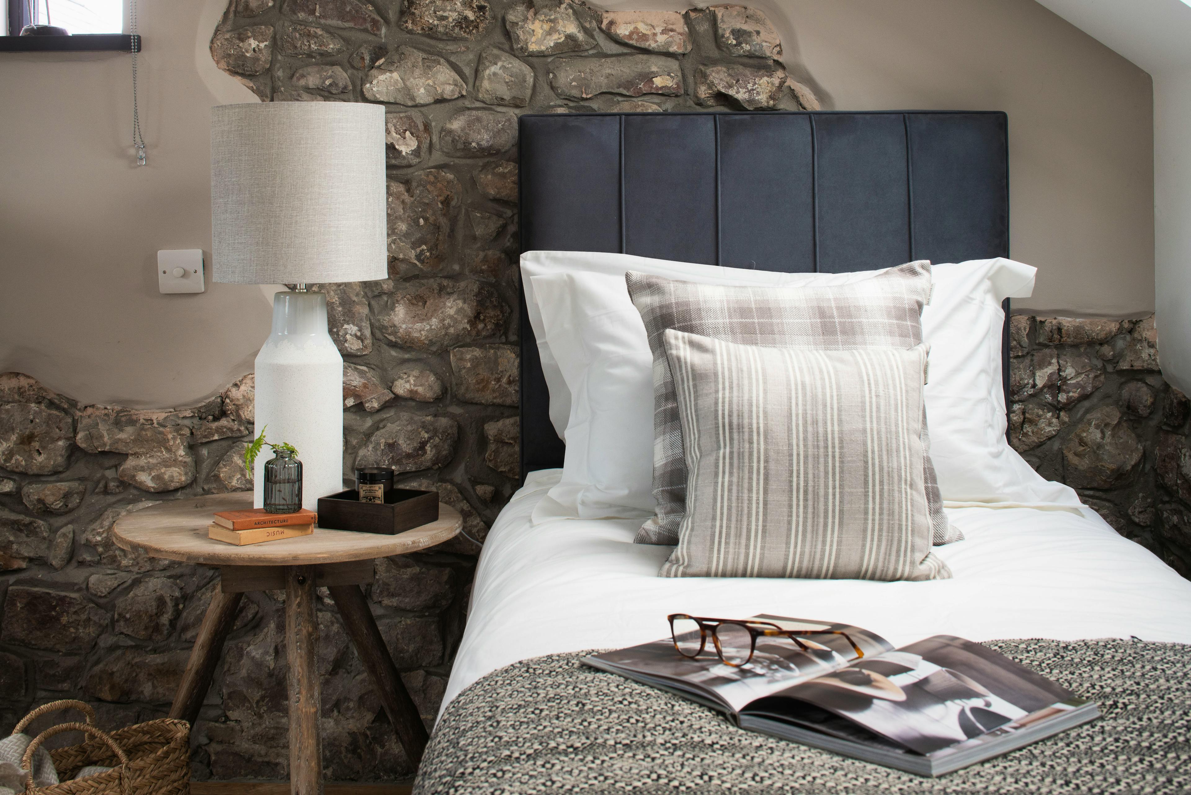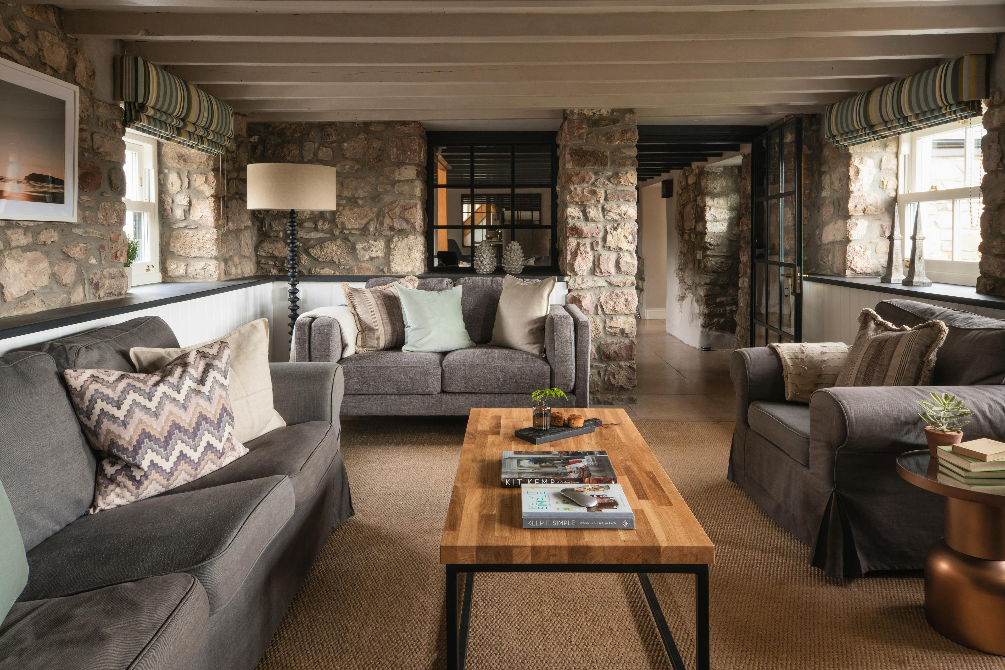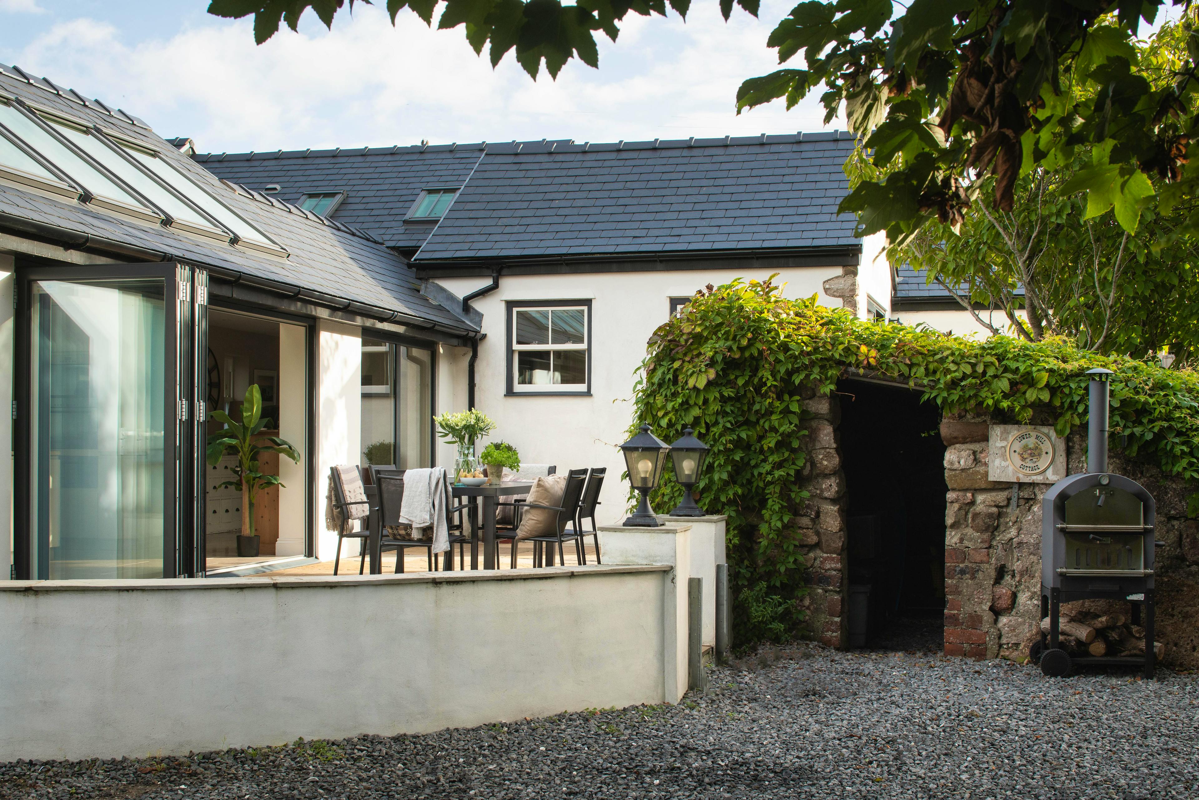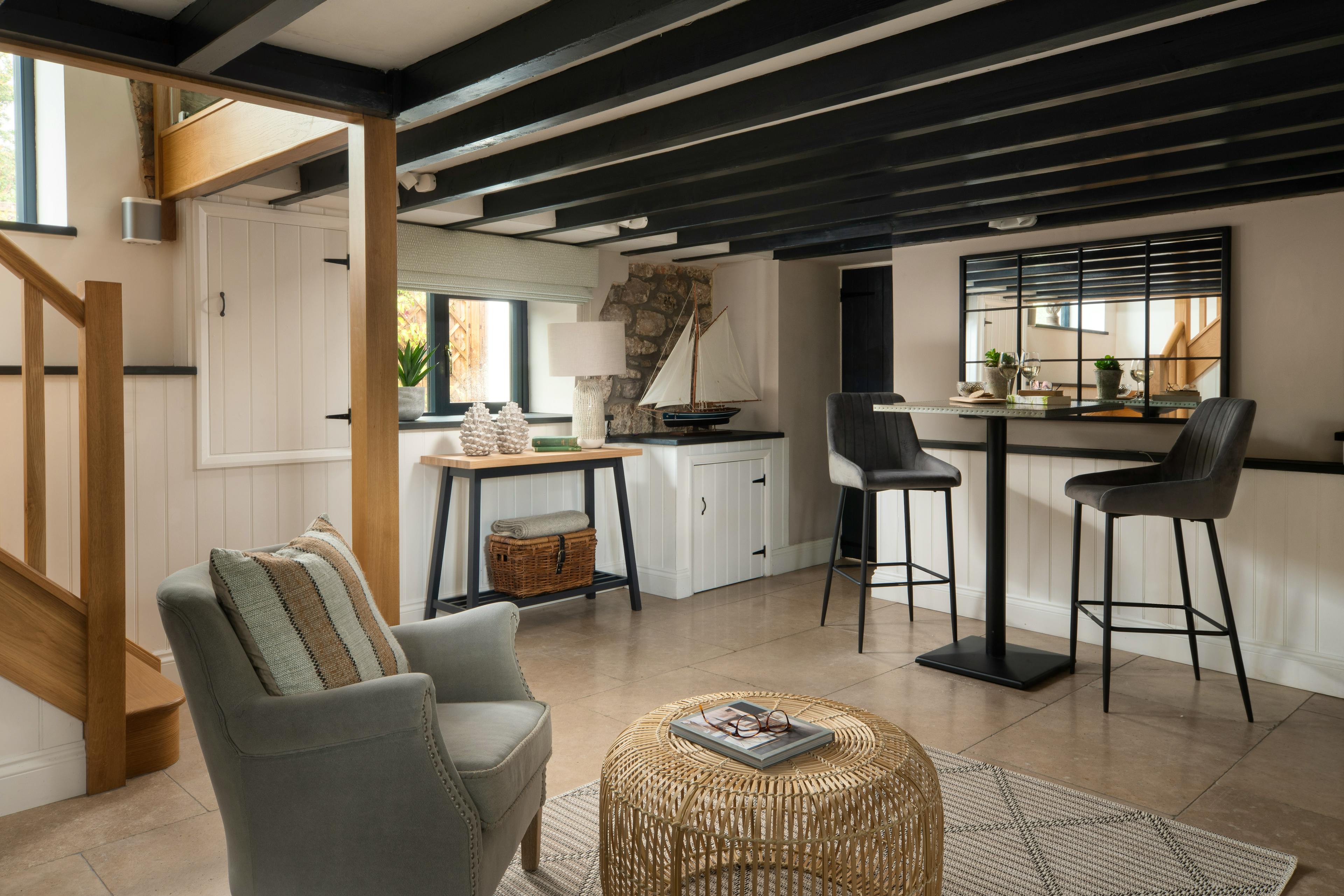 A 400-year-old water mill restored in a contemporary style provides modern luxury in the south Wales, as well as a log fire and professional kitchen.