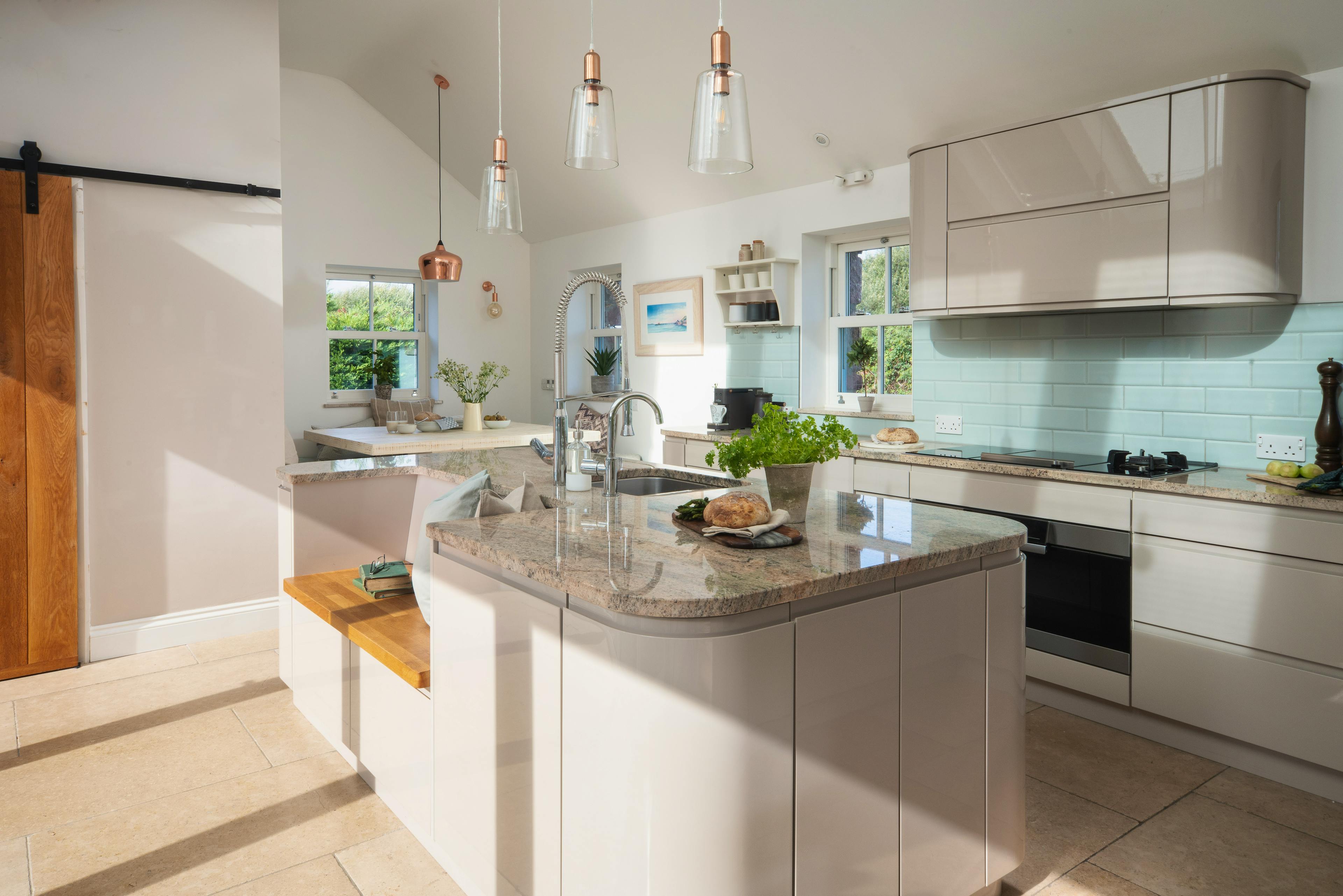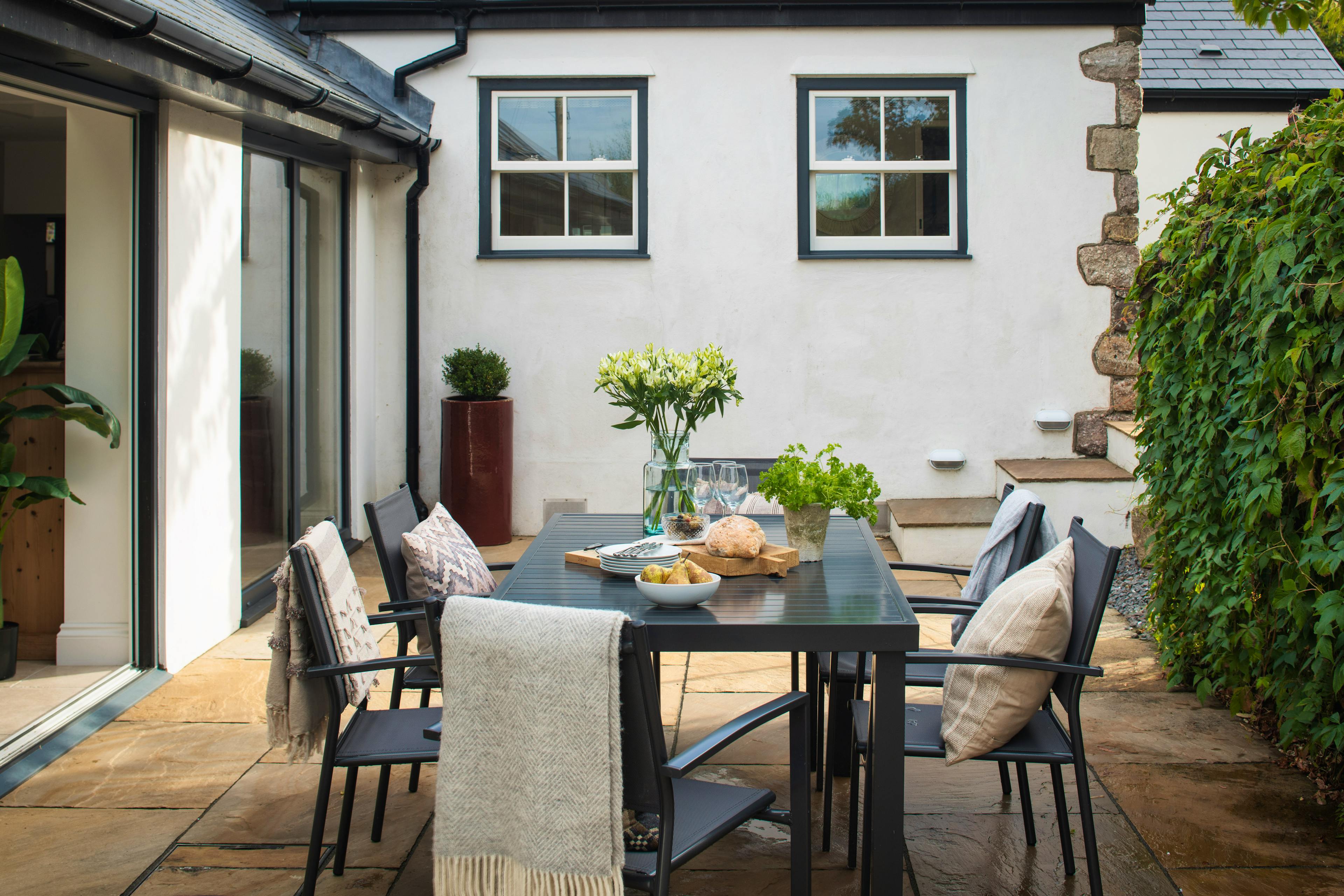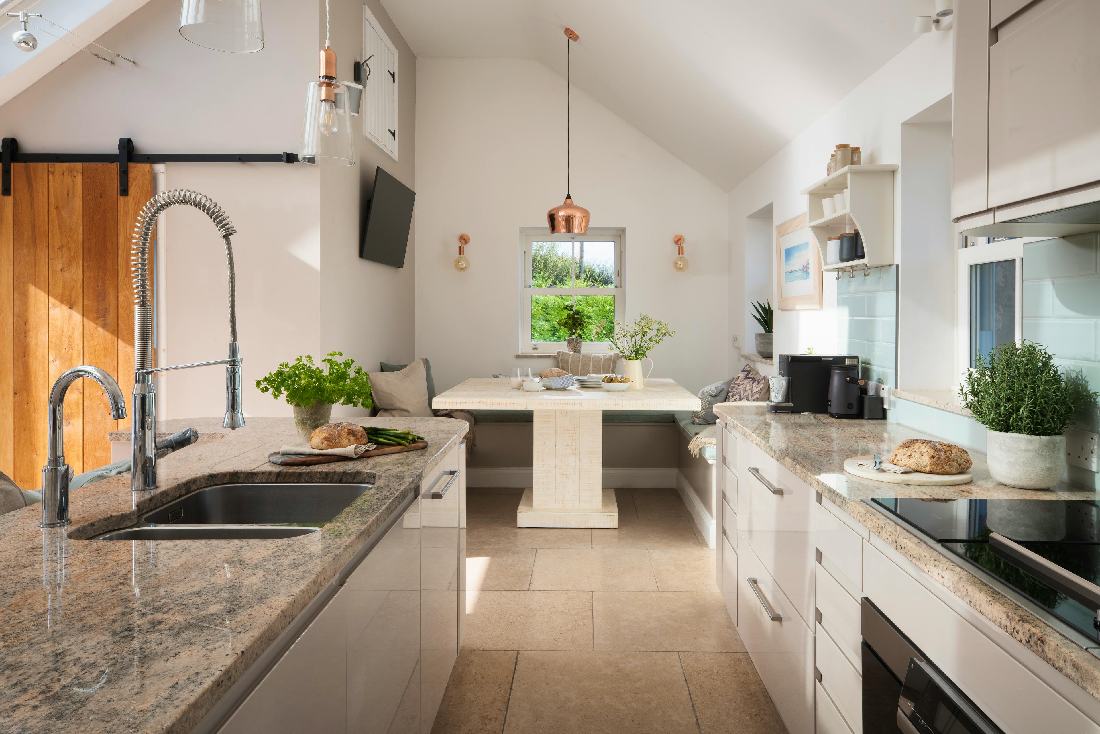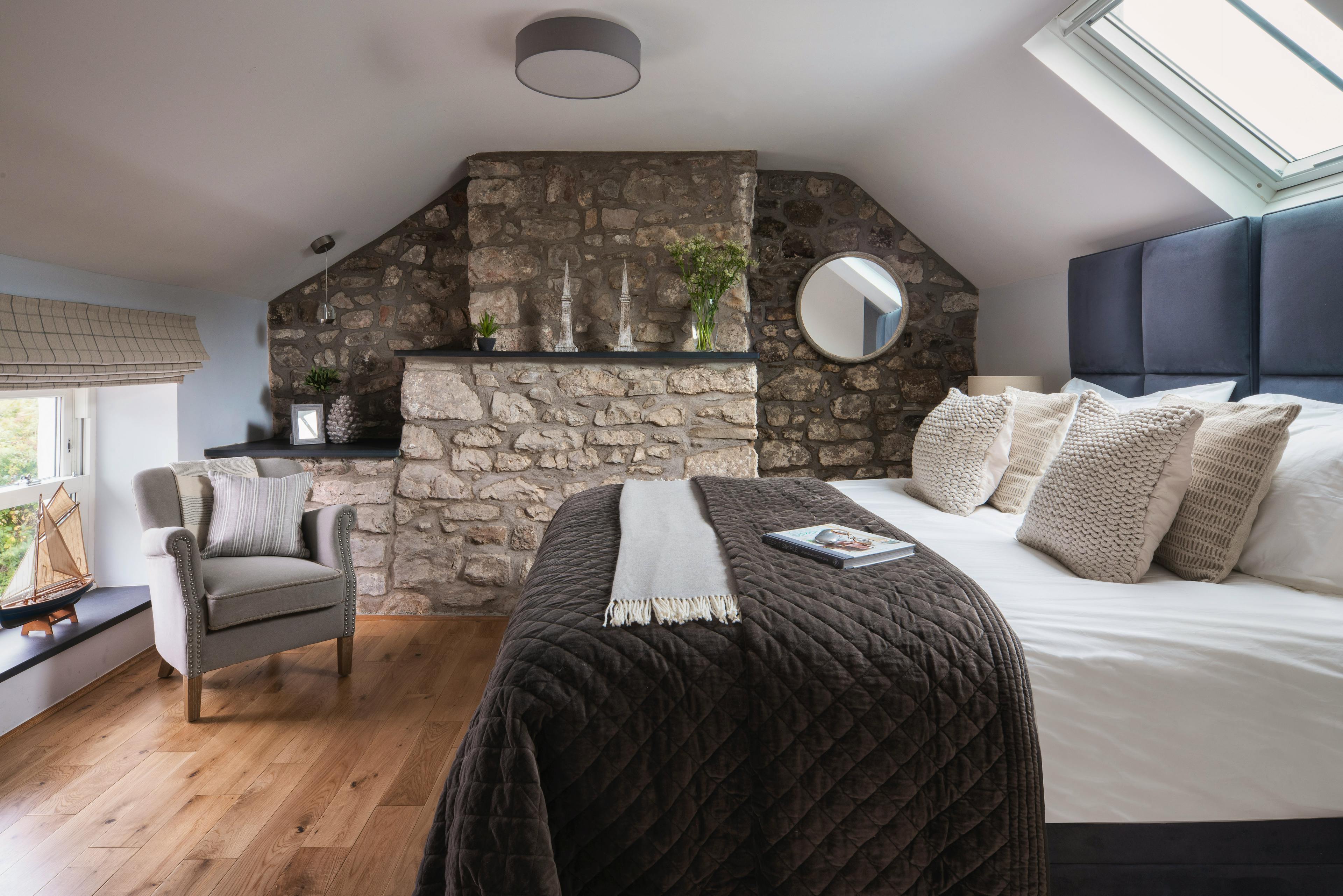 A 400-year-old water mill restored in a contemporary style provides modern luxury in the south Wales, as well as a log fire and professional kitchen.