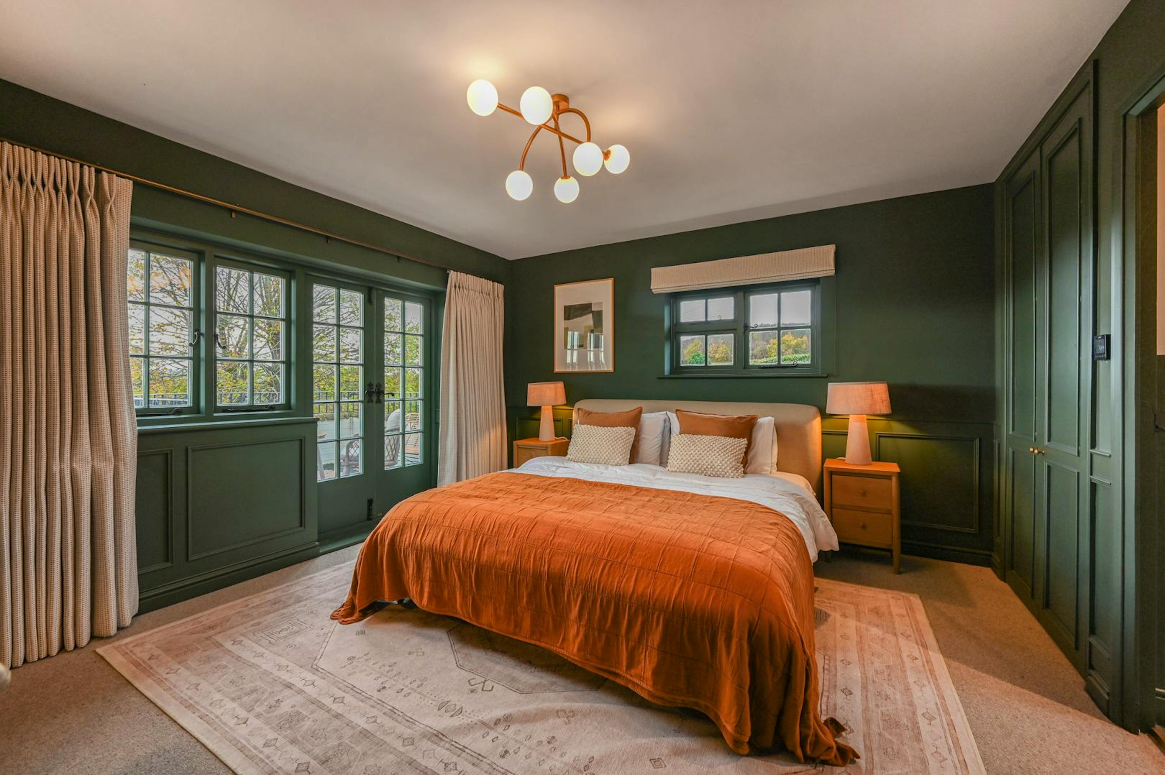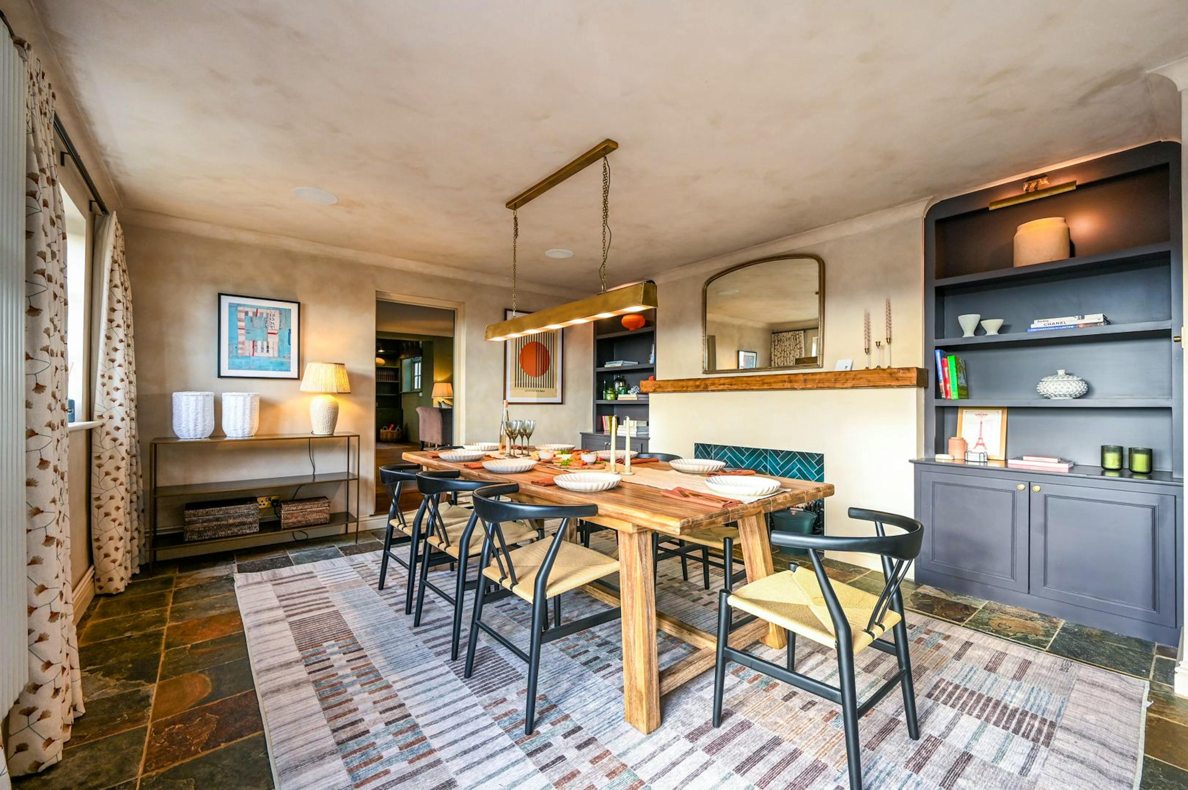 Wake each morning to rolling fruit orchards and birdsong drifting across the garden at Merryweather, a beautifully designed countryside home just outside historic Canterbury. This is a place where rural calm meets easy access to city culture, with sweeping green views all around and the cobbled streets, cafés and cathedral of Canterbury only a five-minute drive away. Inside, the house is thoughtfully laid out for relaxed group stays. A semi-open plan design keeps everyone connected while still offering quiet corners to retreat to. The kitchen is a real highlight, with hand-crafted cabinetry, a hand-selected marble worktop and a vaulted ceiling that floods the space with light. The sociable island invites slow breakfasts and lively evening cooking on the country-style range cooker, while sliding doors lead through to the dining room where long meals stretch late into the evening. After supper, settle into the cosy sitting room beside the woodburning stove with a bottle of local wine, or wander out to the garden room to enjoy views across the lawn as daylight fades. For those feeling competitive, the separate games room in the outbuilding is perfect for friendly tournaments, whatever the weather. Upstairs, four inviting bedrooms are framed by different countryside views. The generous master suite features a super-king size bed, a sleek ensuite shower room and French doors opening onto a private balcony. On warm mornings, it is hard to beat coffee overlooking the orchards. The remaining bedrooms are equally calm and comfortable, ideal for a restorative night’s sleep after days spent exploring. Outside, bi-fold doors open the dining space onto a large patio with seating and a barbecue, made for alfresco lunches and summer evenings. The enclosed lawn garden is ideal for children to roam freely, with colourful planting throughout the seasons and the gentle soundtrack of rural life beyond the hedges. Merryweather is perfectly placed for discovering Kent. Pull on your walking boots for countryside rambles from the door, explore Canterbury’s medieval streets and riverside punts, head to Whitstable for oysters by the sea or tour the nearby Kentish vineyards, all just a short drive away.