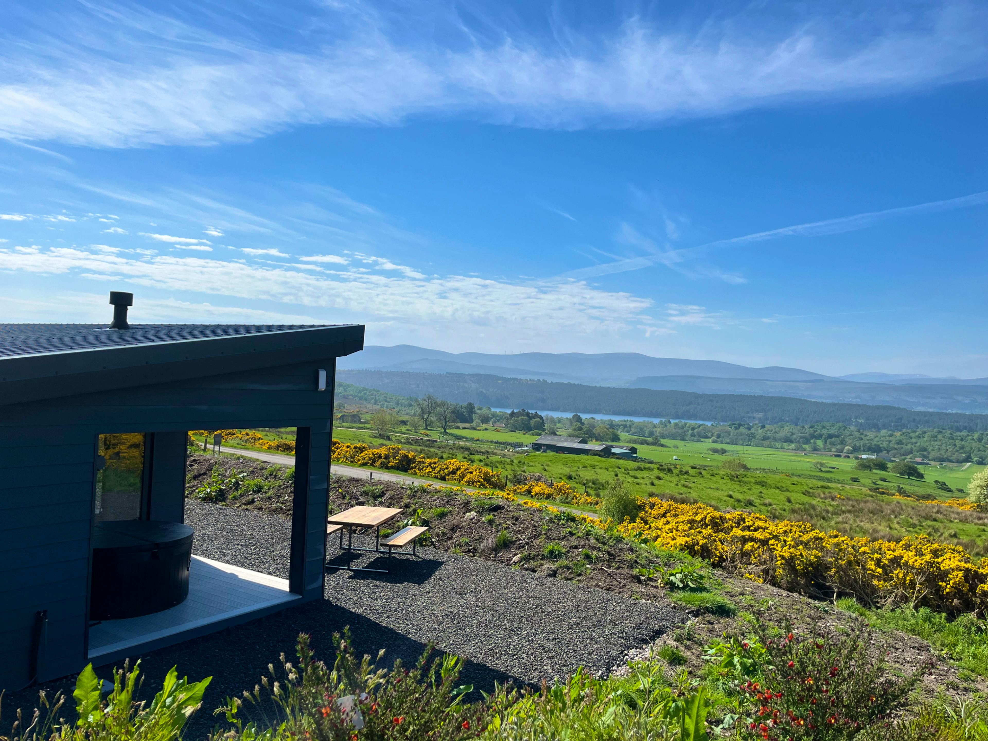 Cosy and stylish cabins nestled amongst the Scottish Highlands with hot tubs and spectacular views over Loch Migdale.