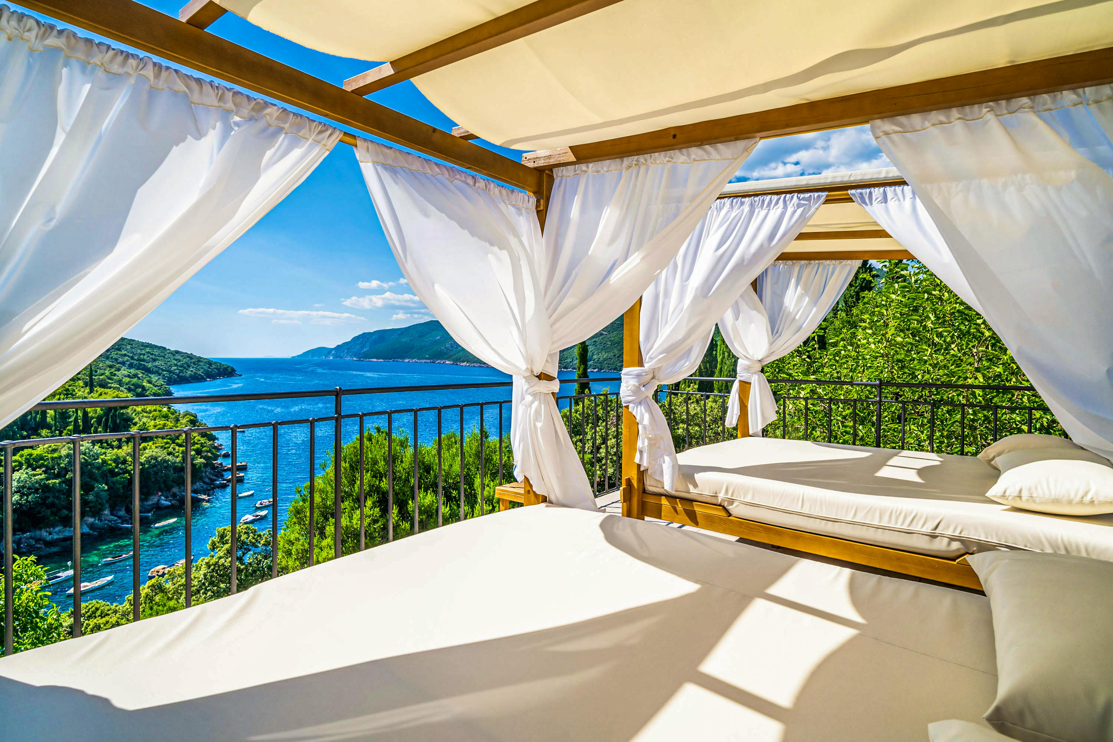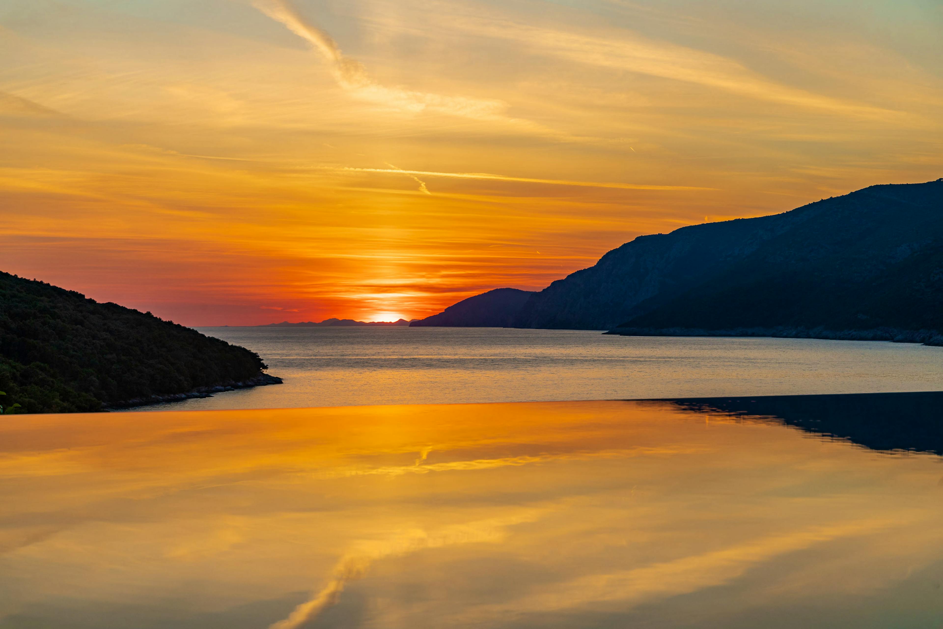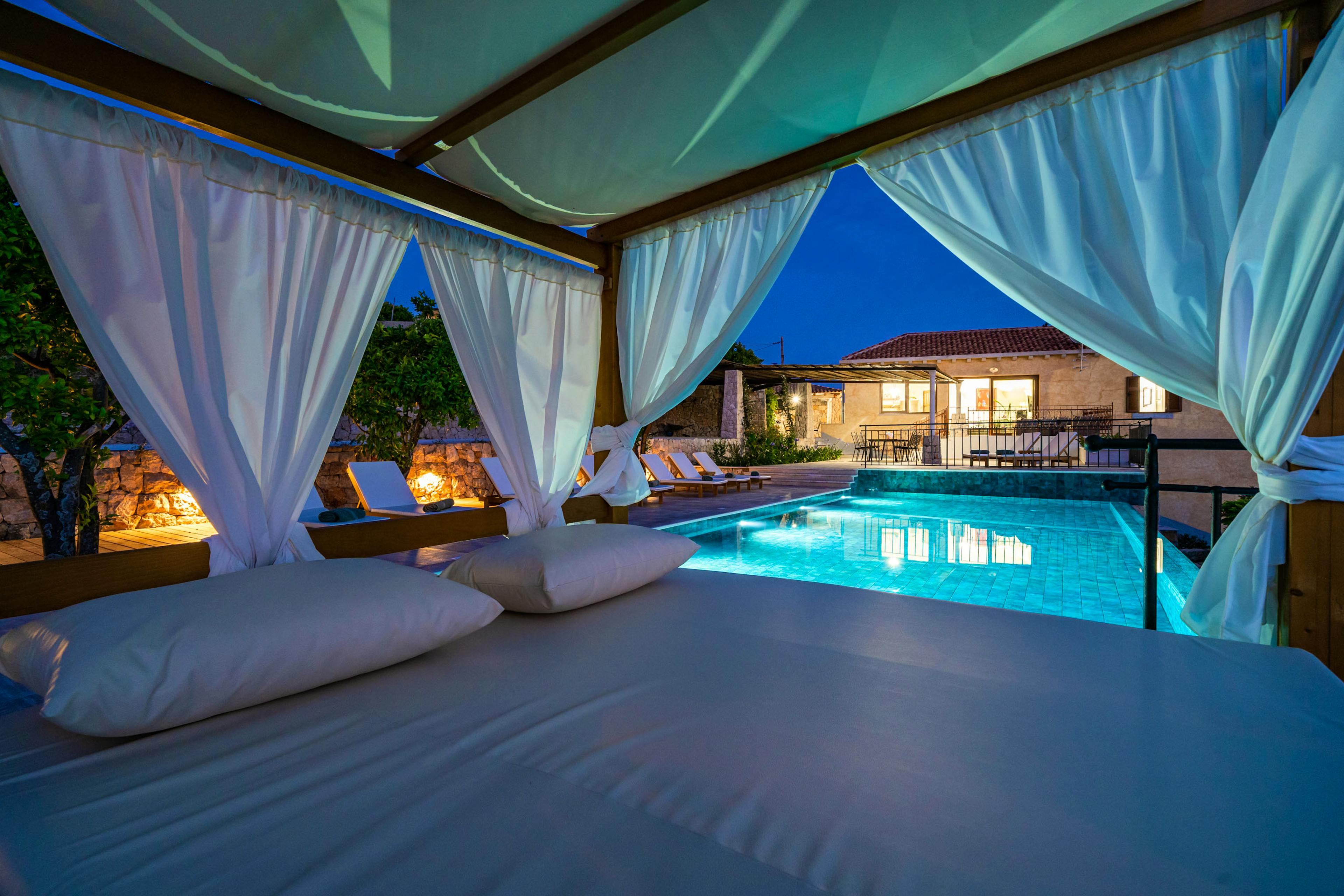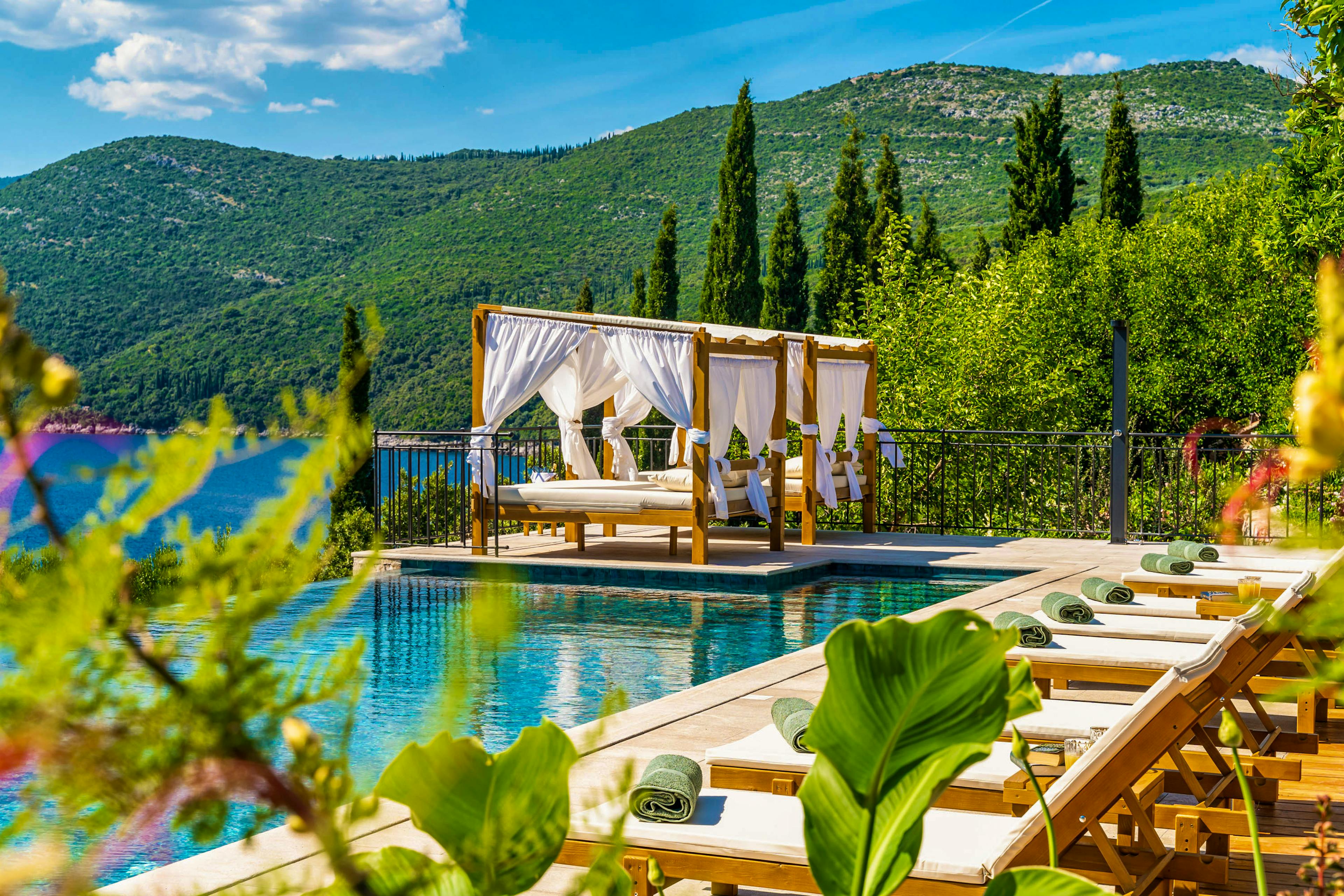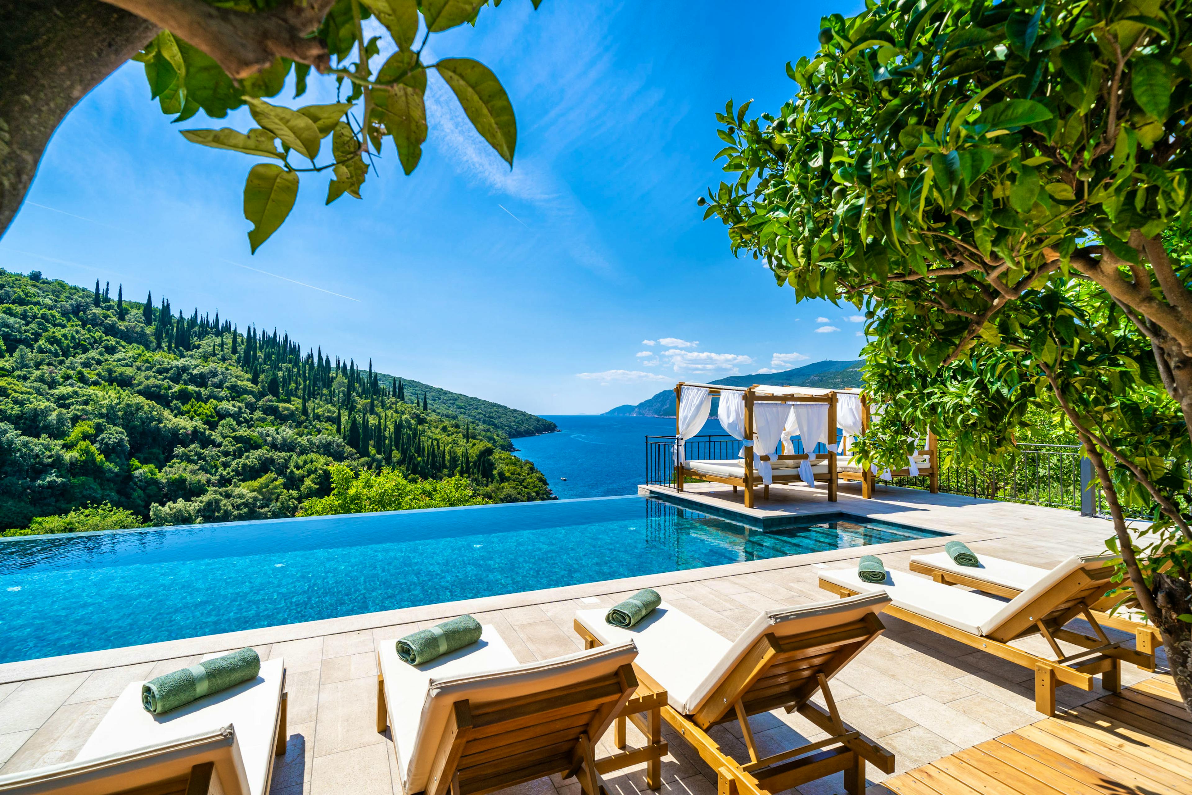 Magnificent 14-metre infinity pool that seems to merge with the sea, complete with canopied daybeds and sun loungers for blissful days under the Adriatic sun.