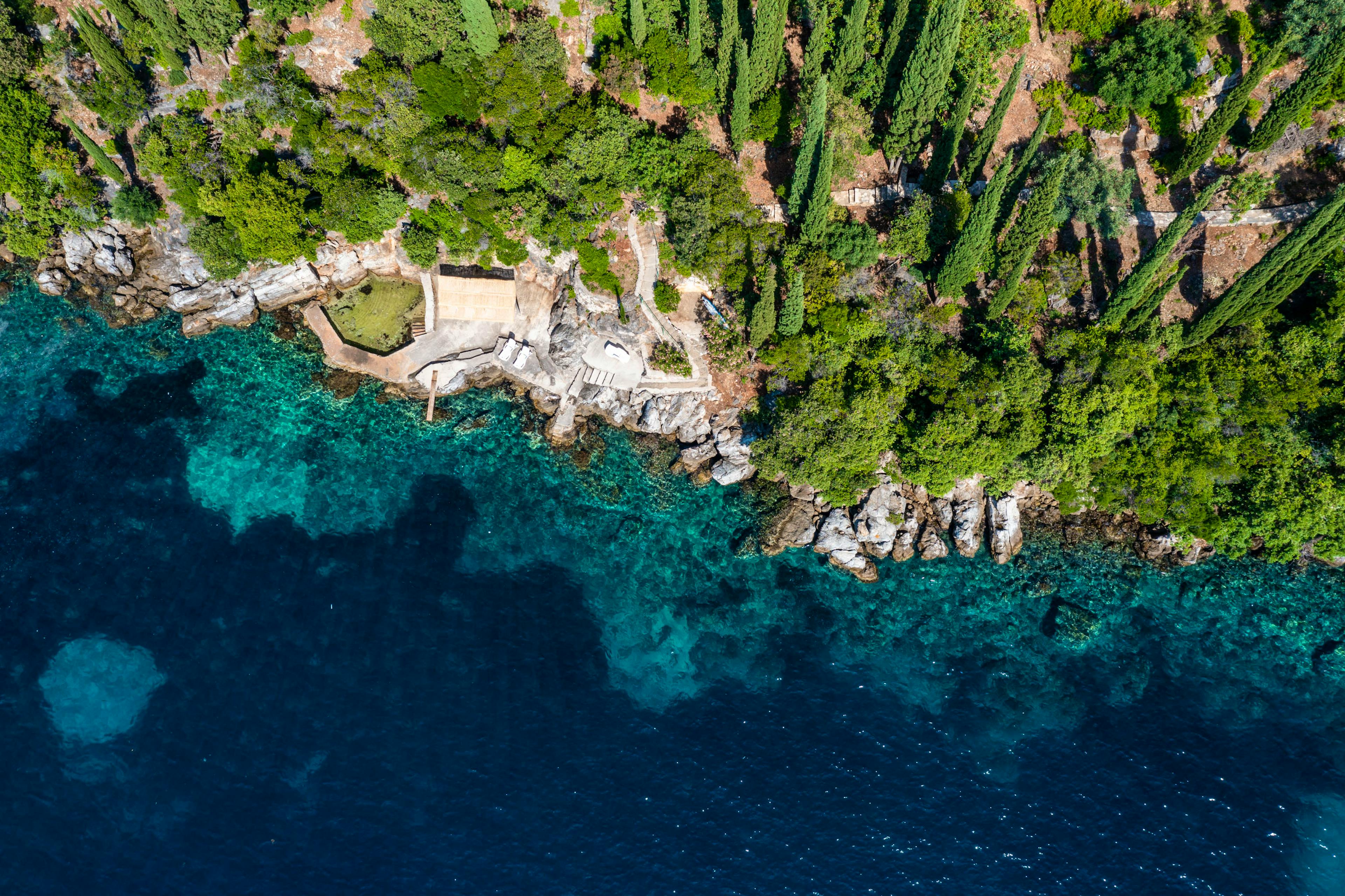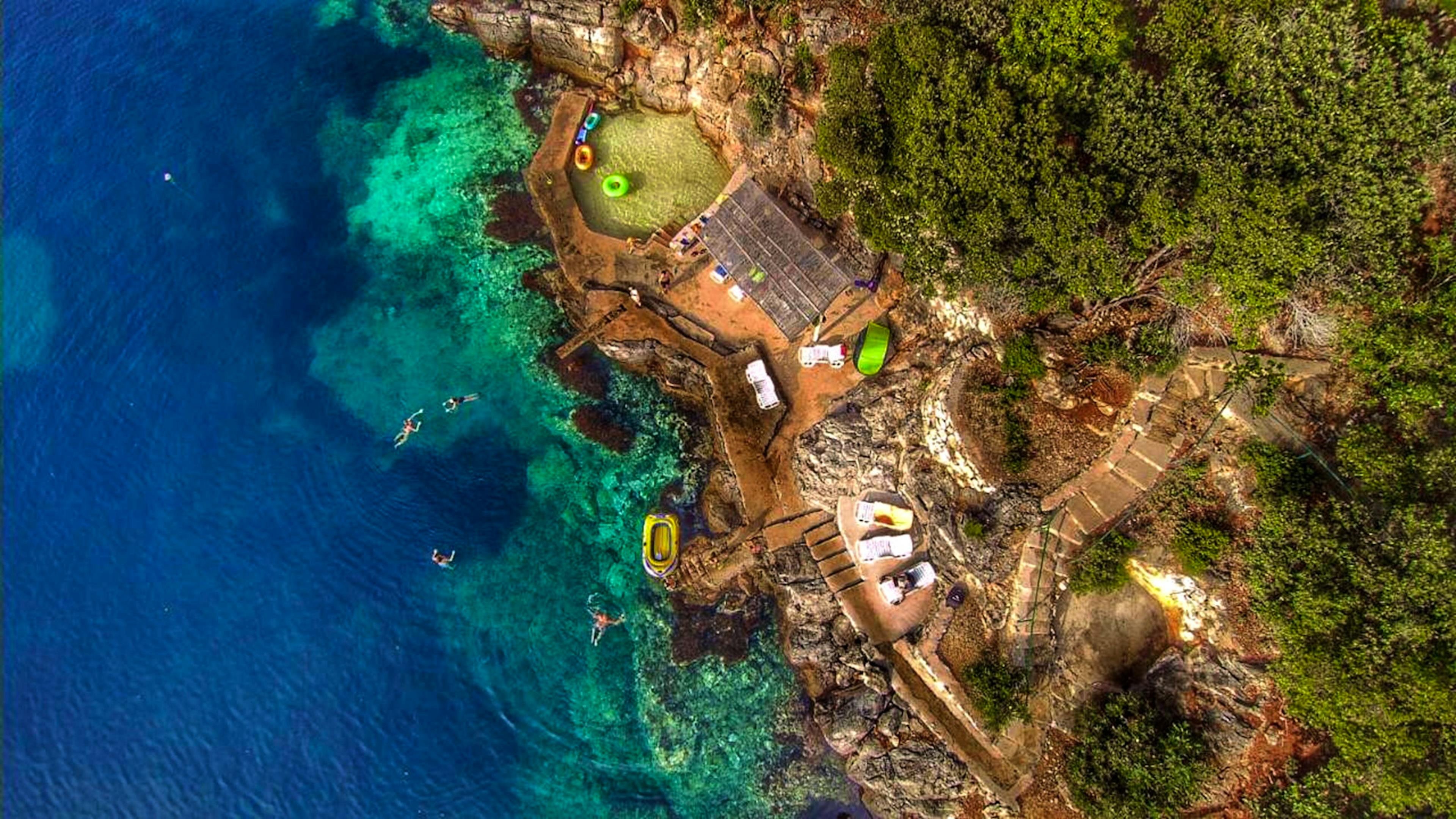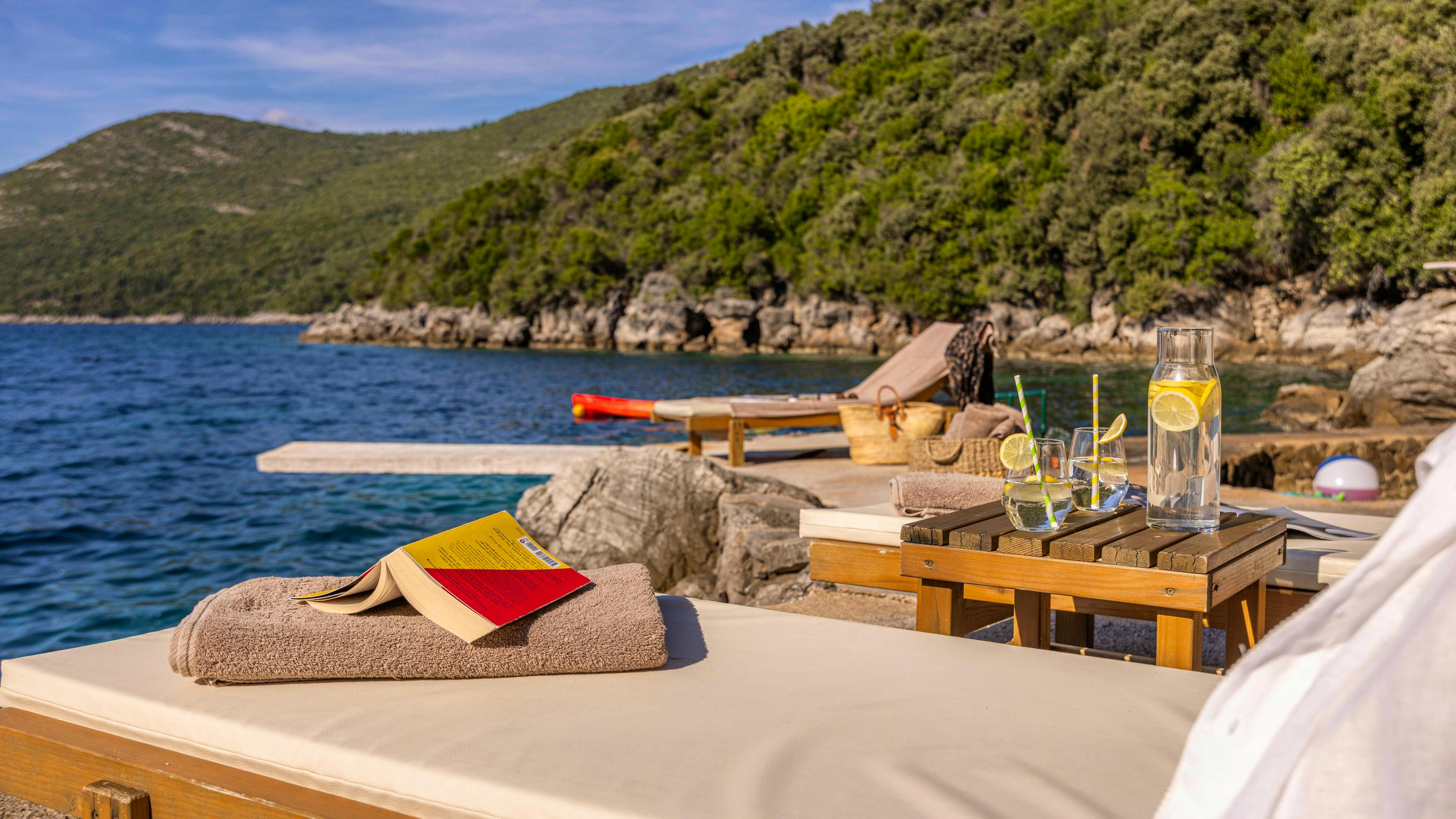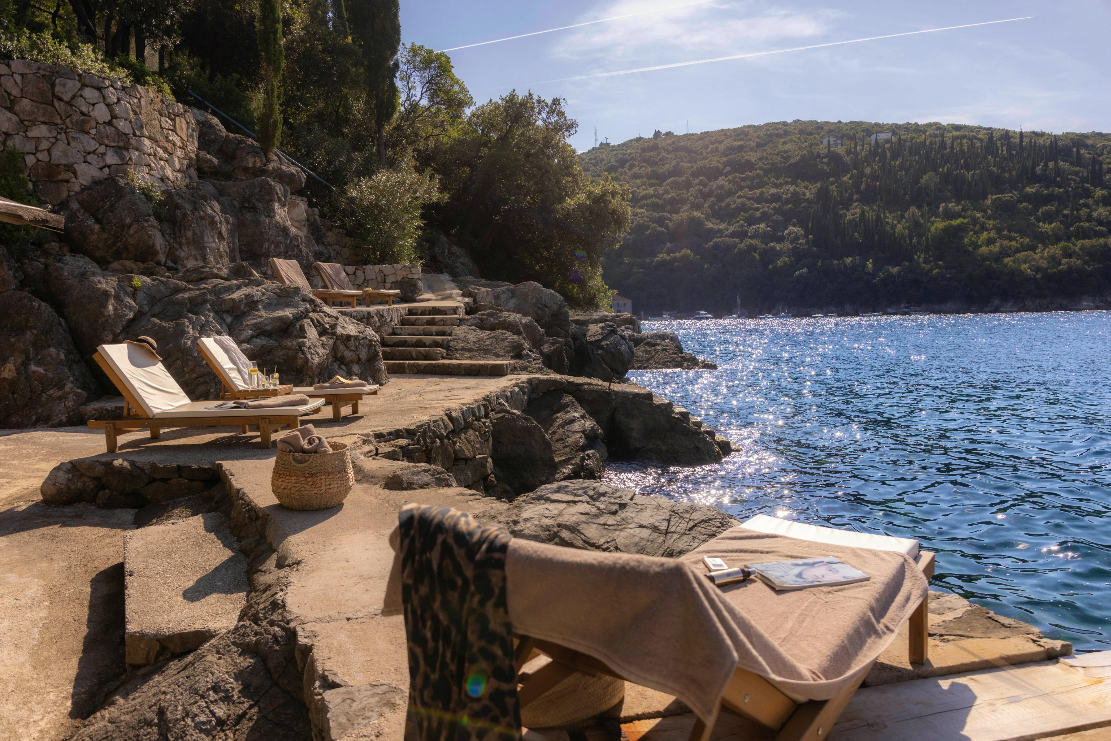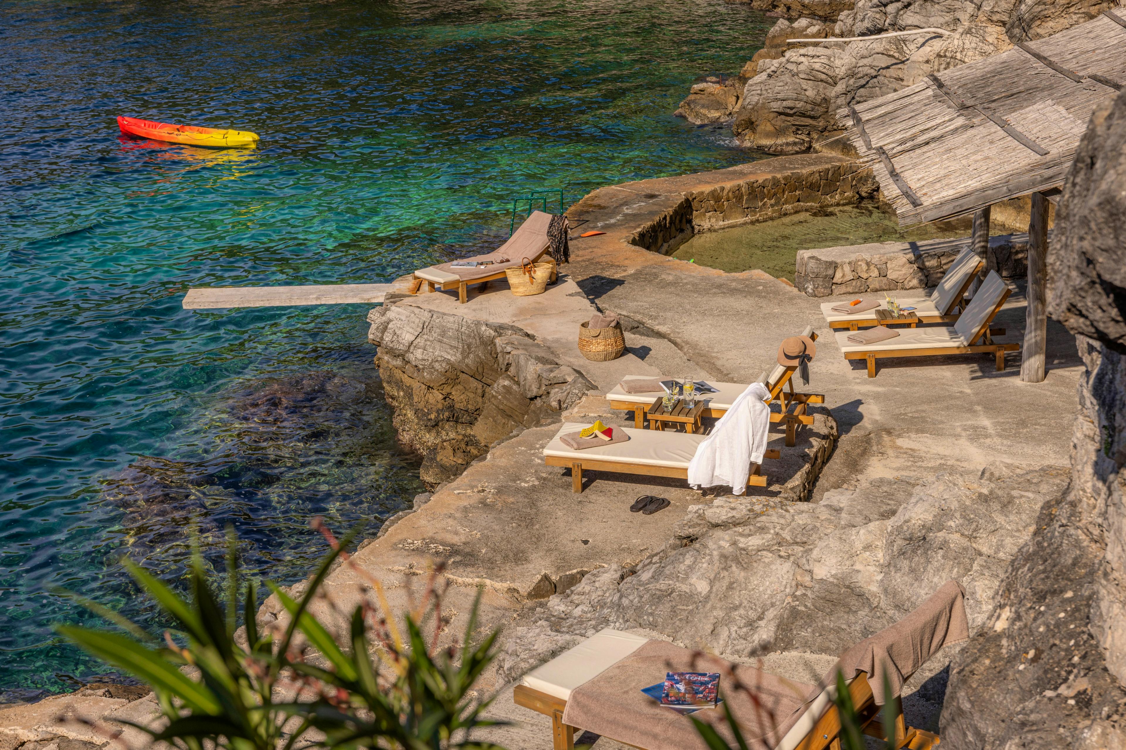 Hidden private beach cove where you can swim in crystal-clear waters, bask on warm stone ledges and listen to the rhythm of the sea in perfect seclusion.