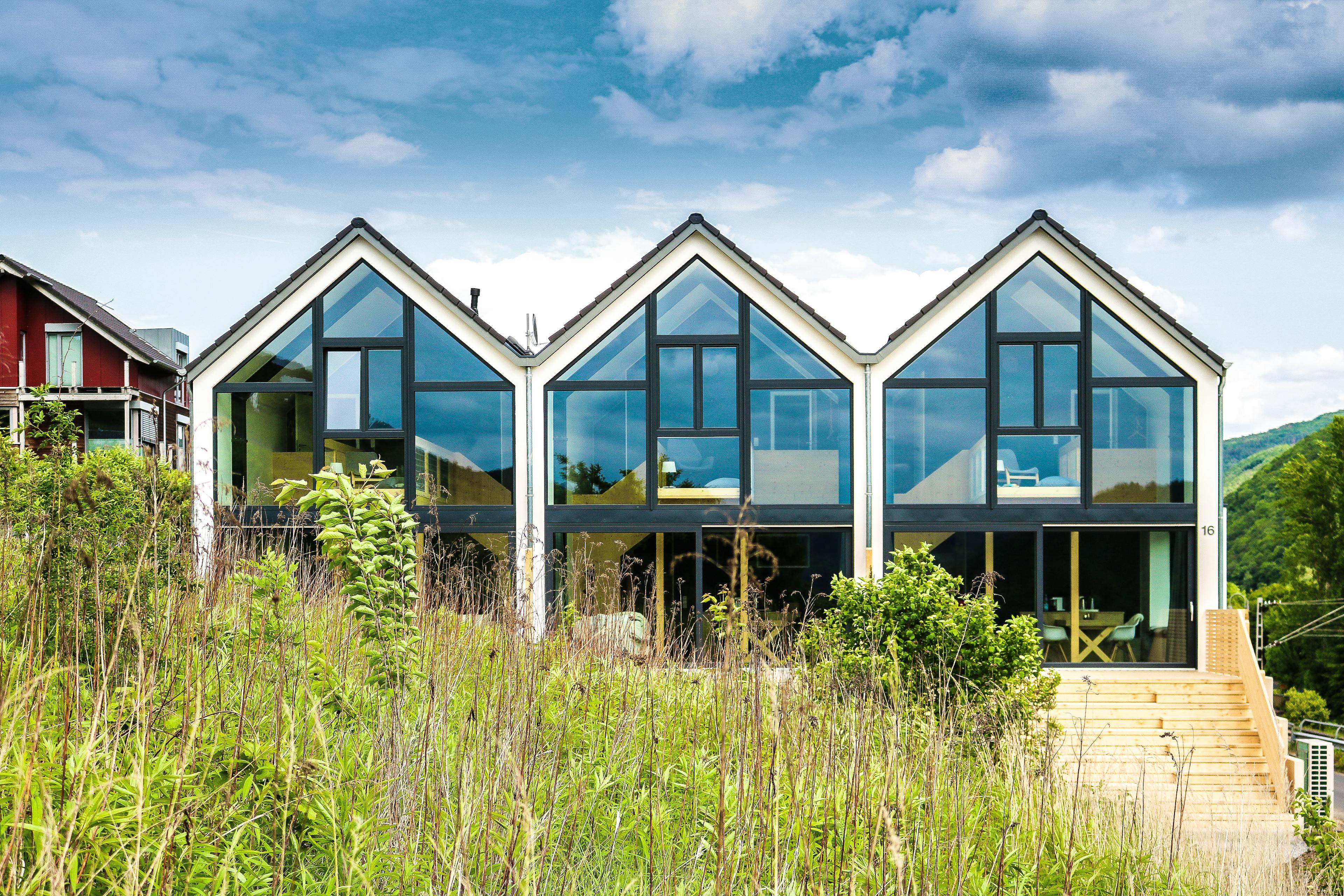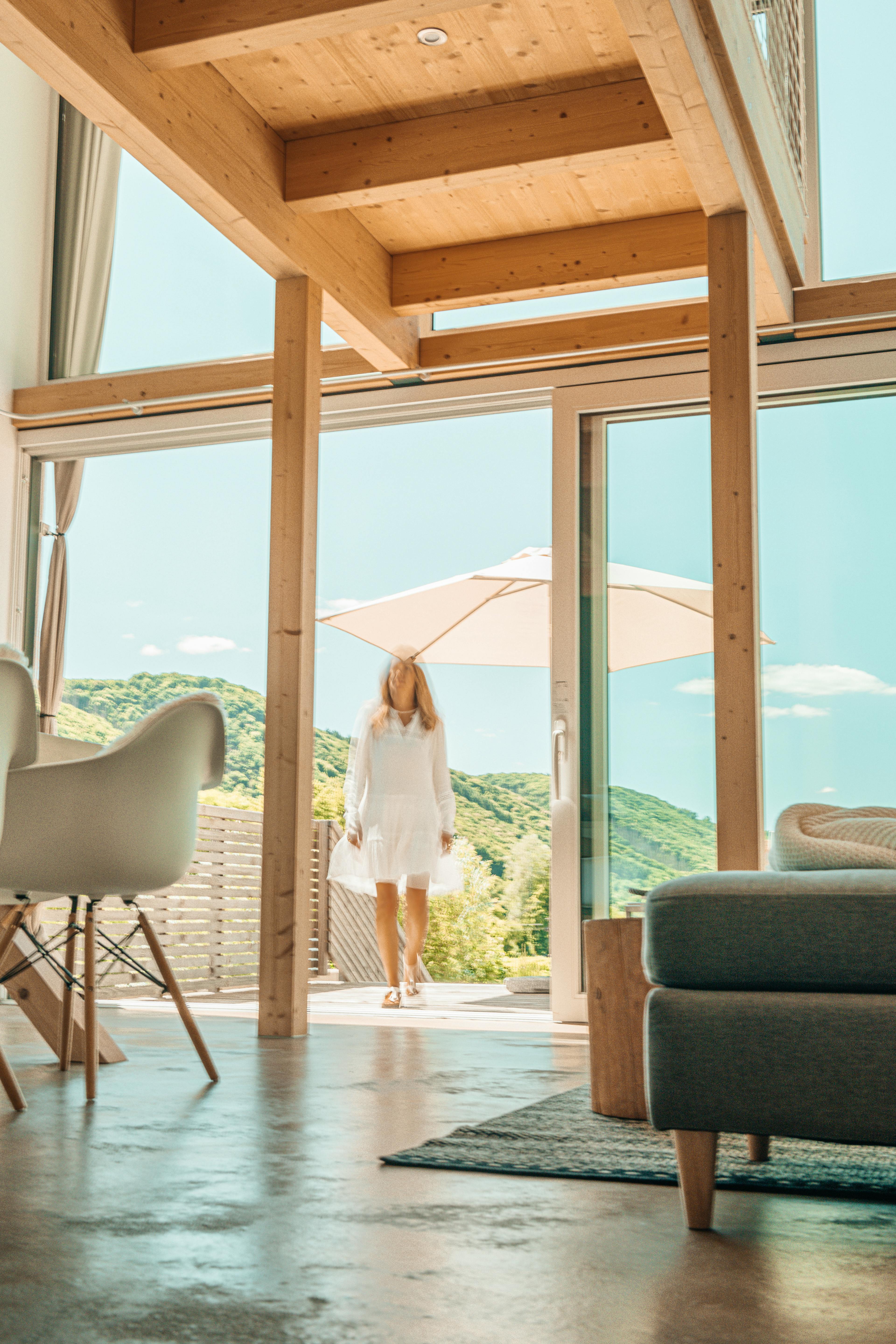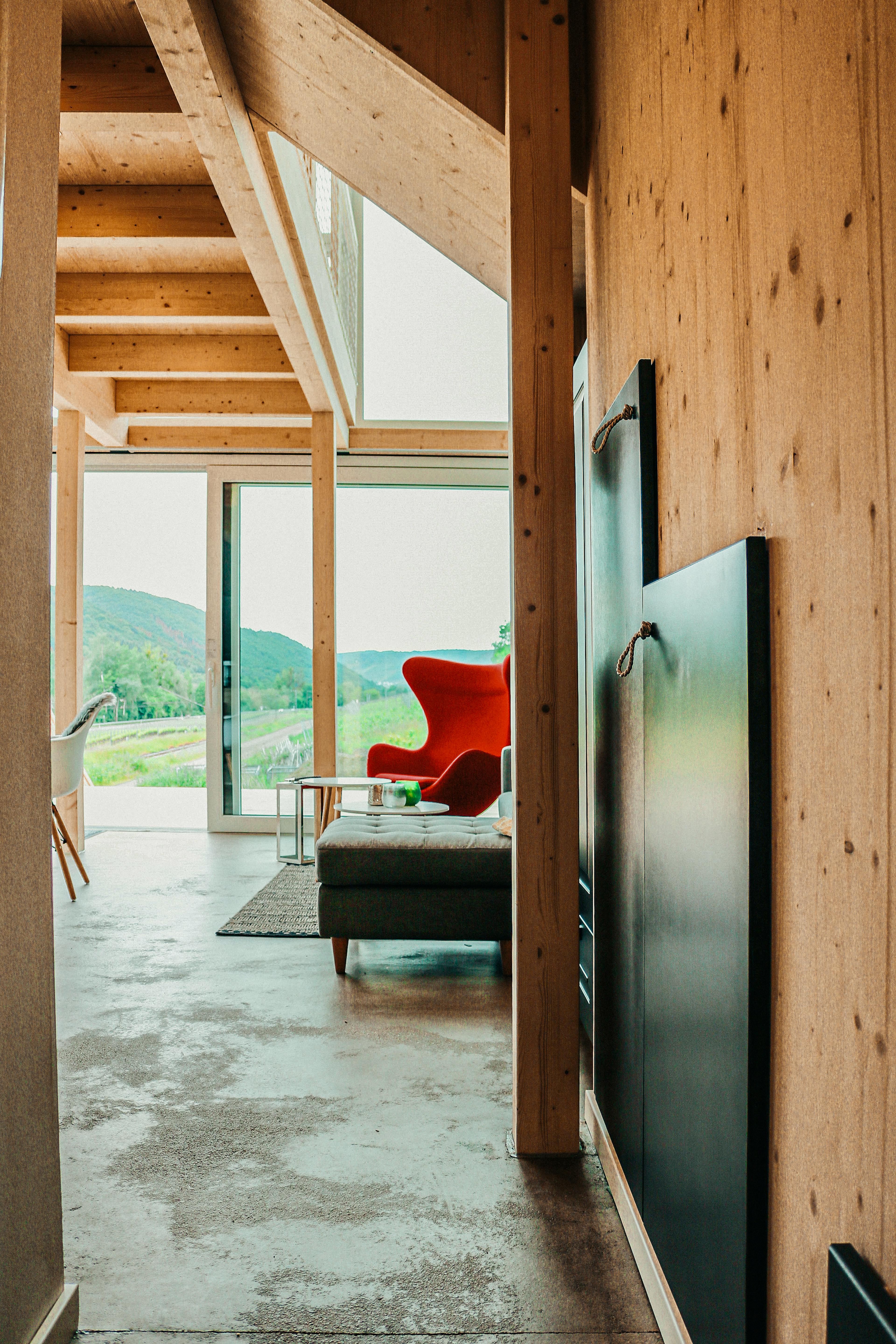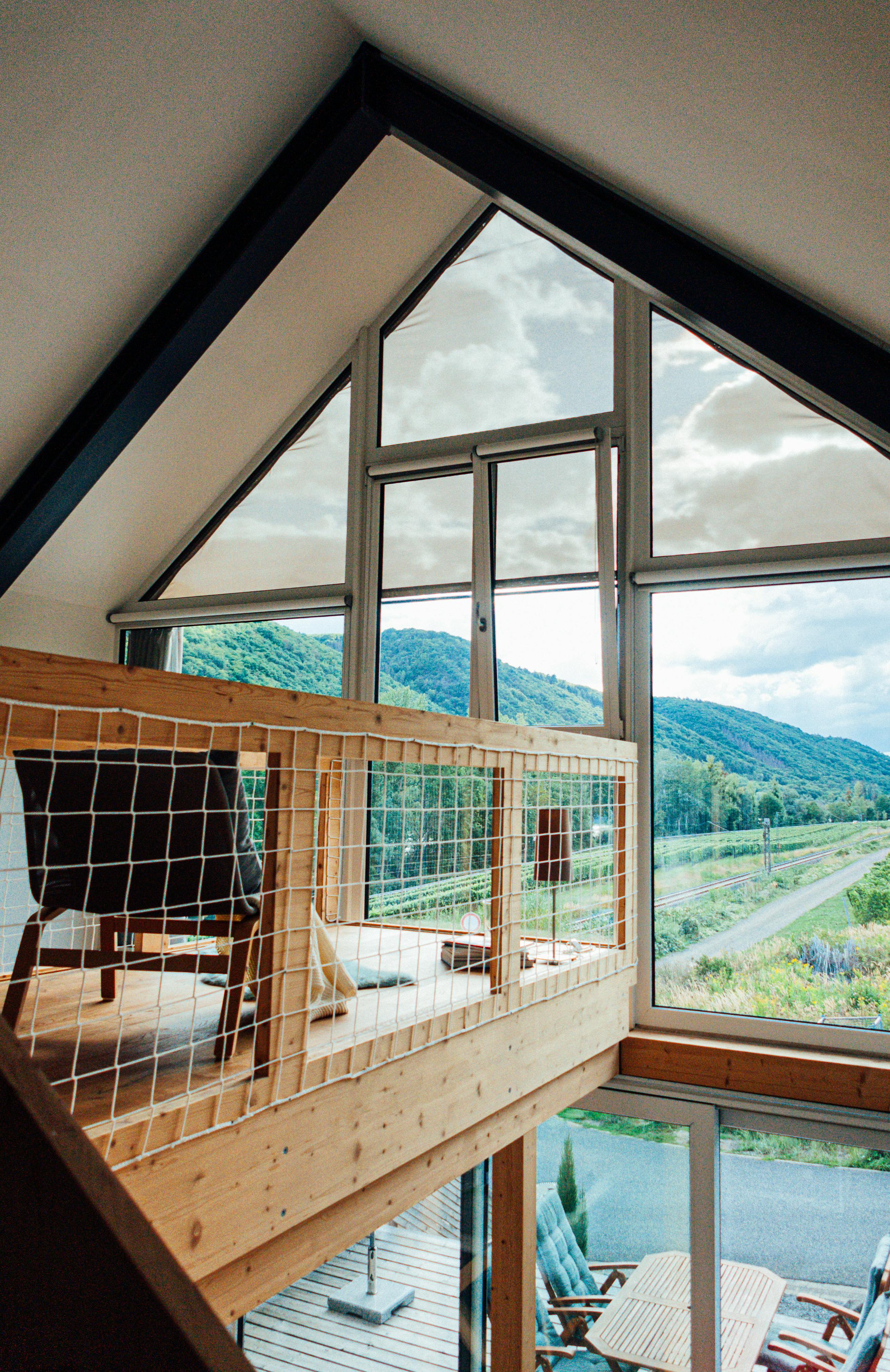 Collection of three fabulous eco-friendly chalets with stunning views and luxury amenities set amidst vineyards in Rheinland-Pfalz, Germany.