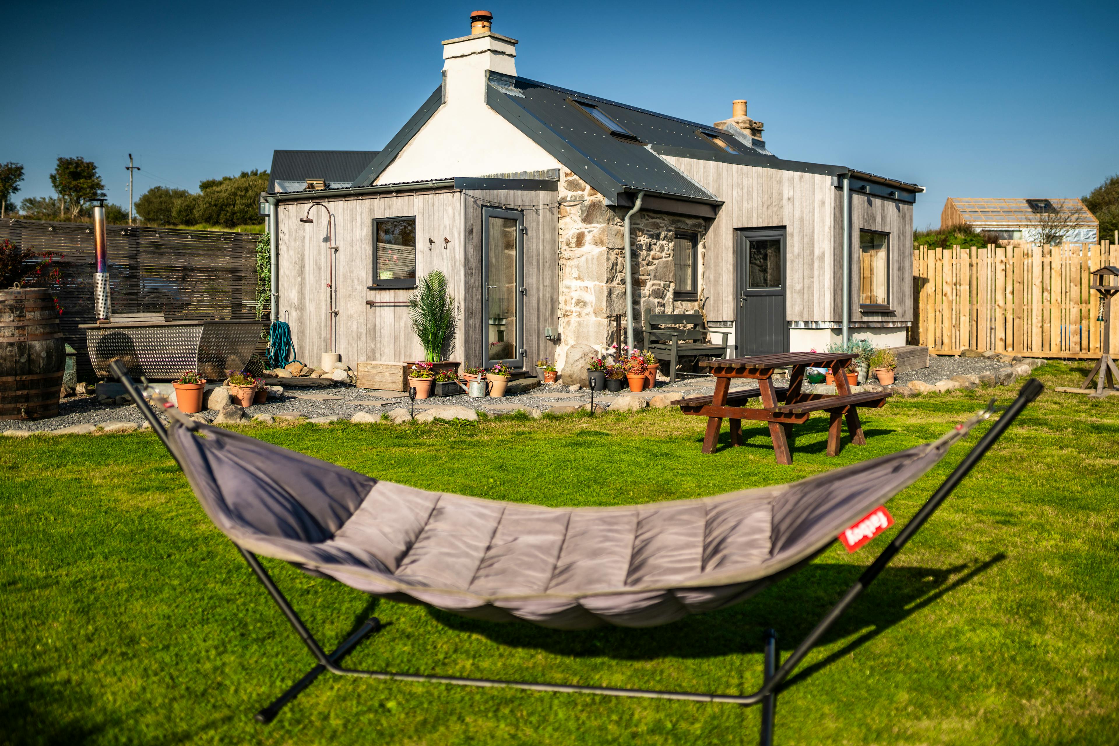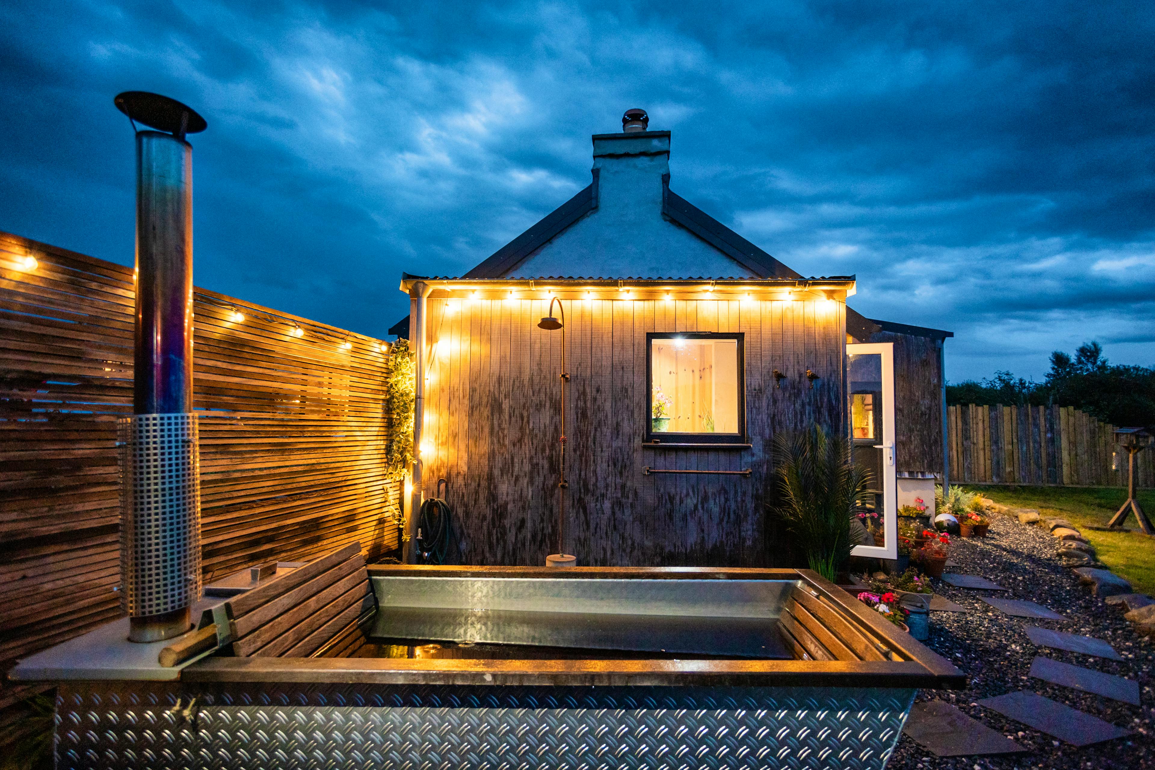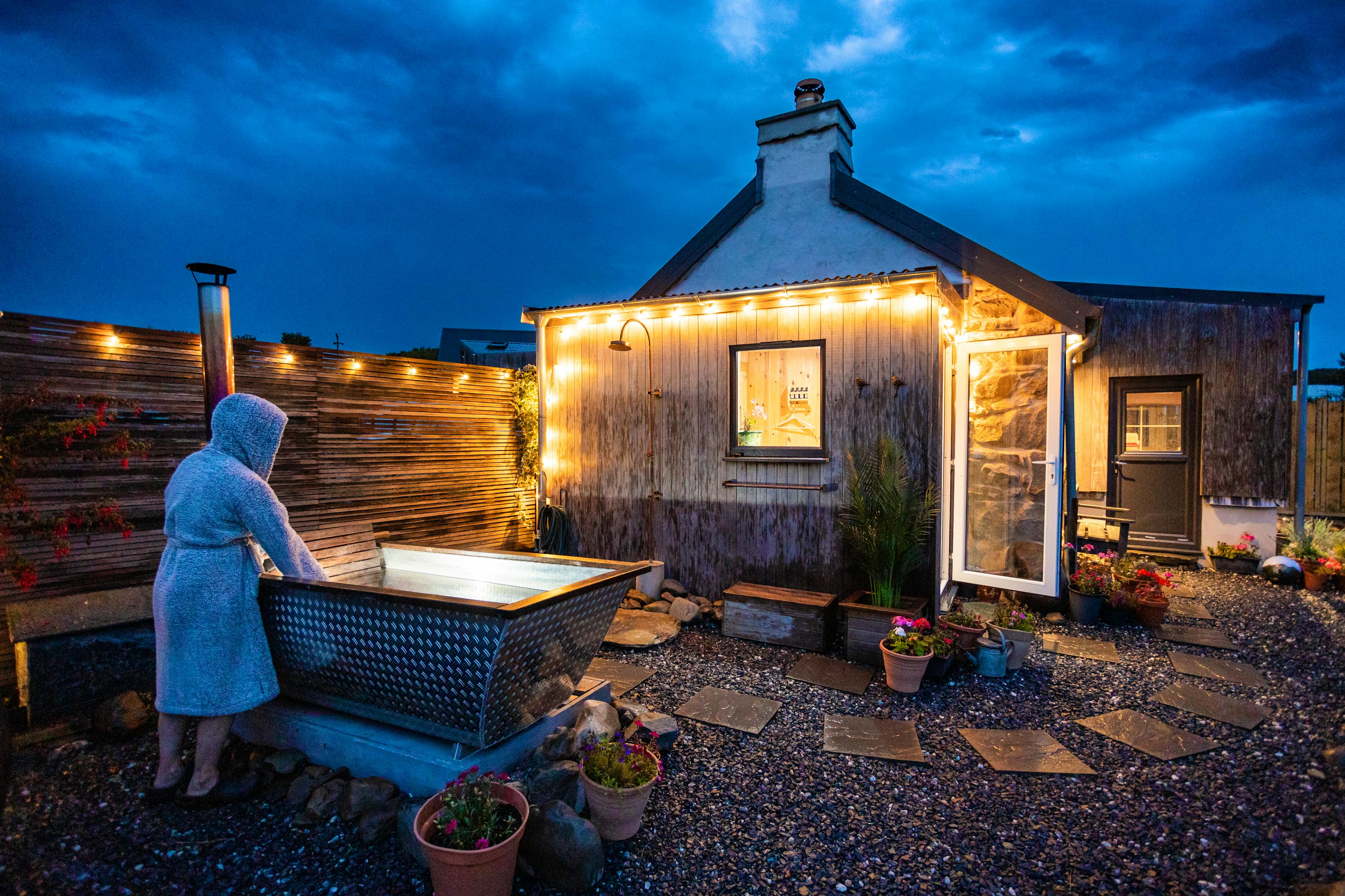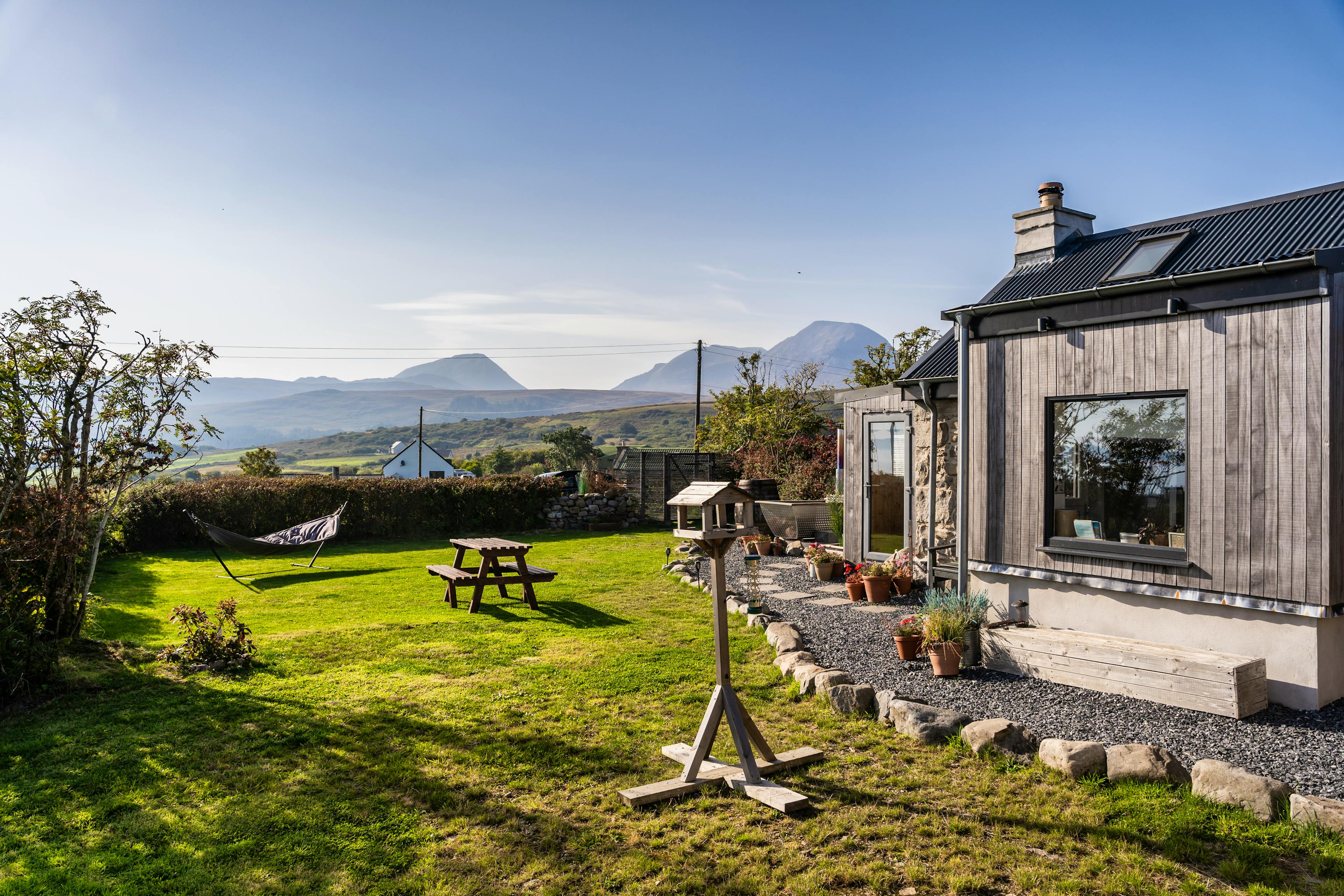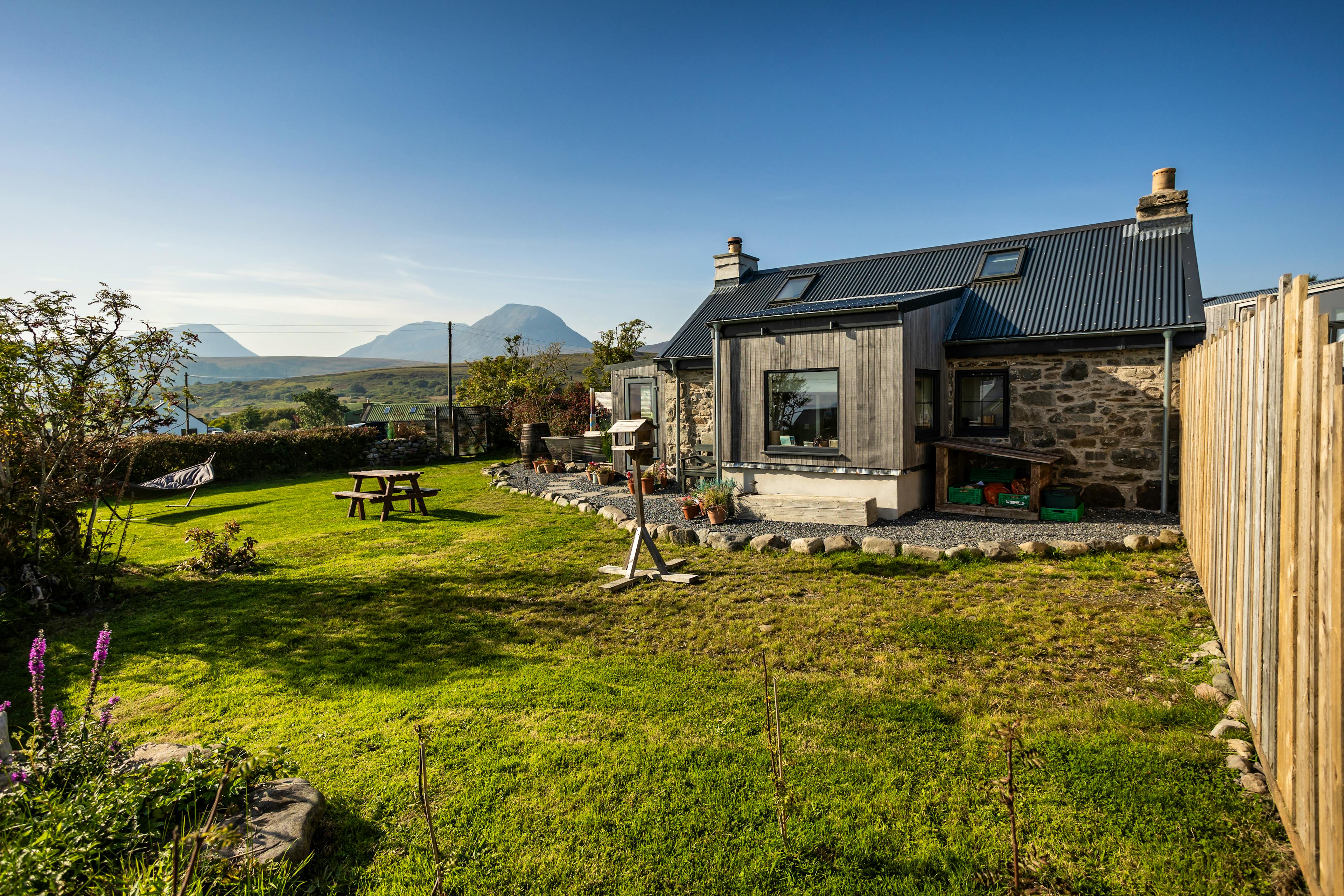 Cosy cottage with a hot tub, sauna and stunning mountain views on the island of Jura in the Scottish Hebrides, perfect for a peaceful escape.