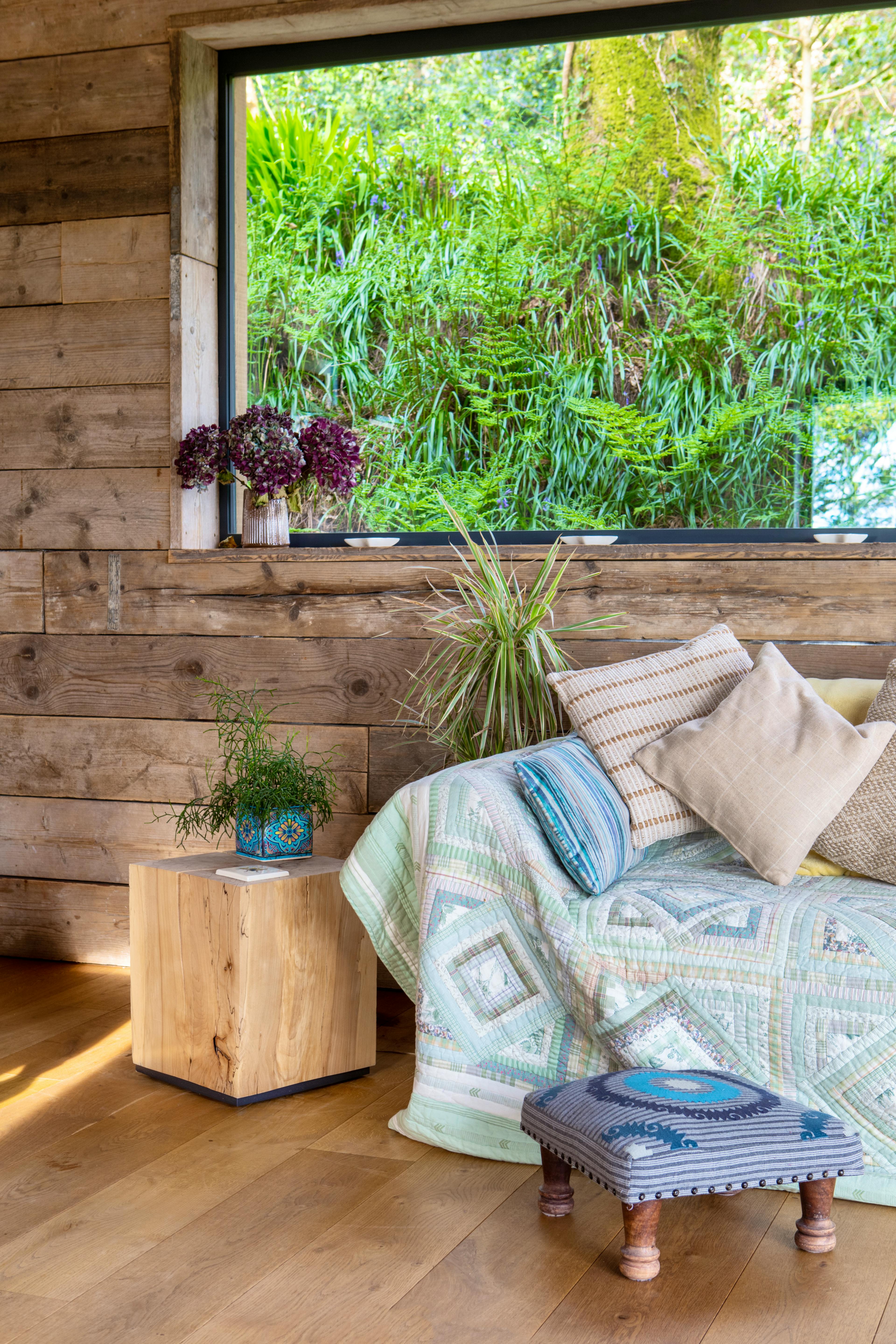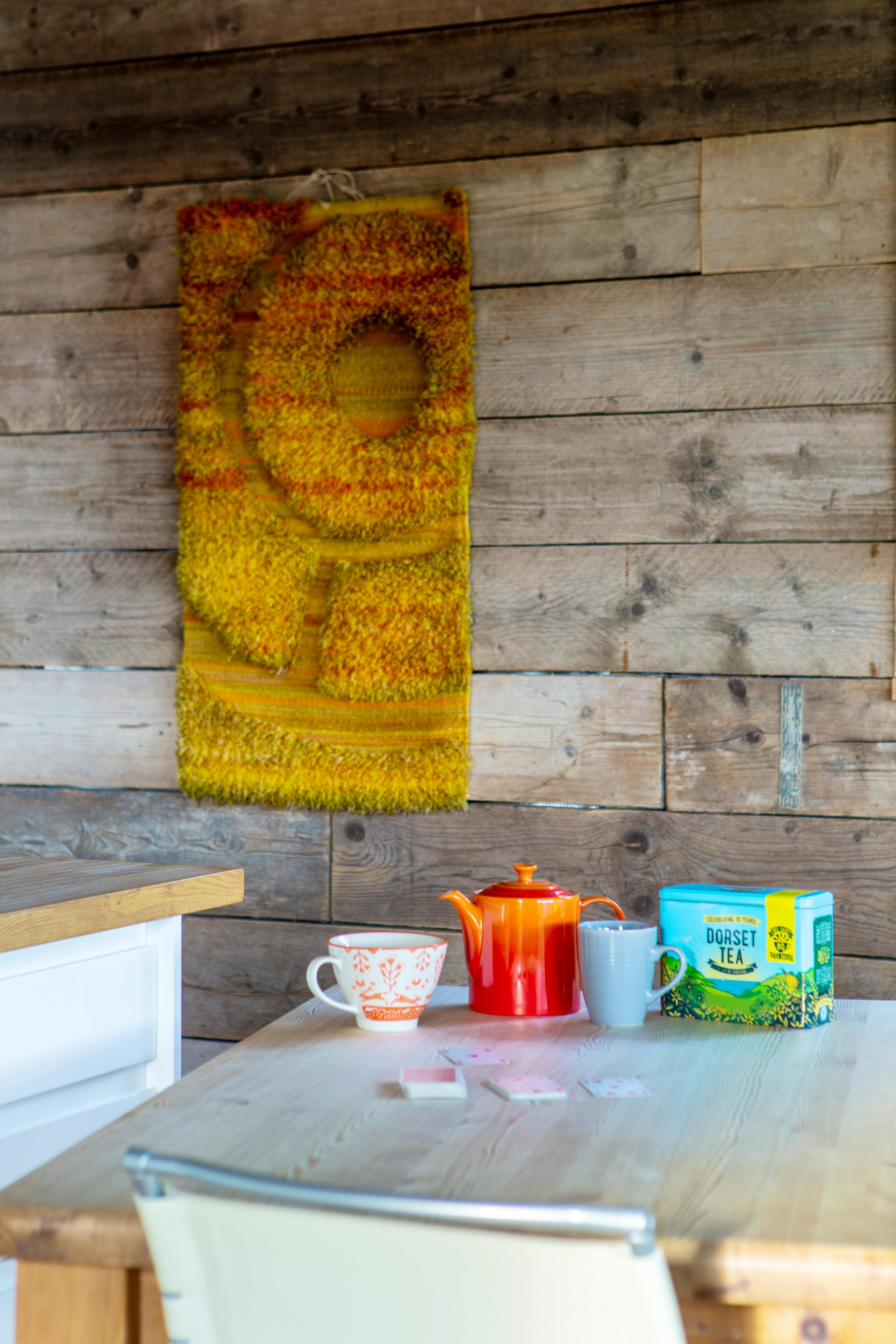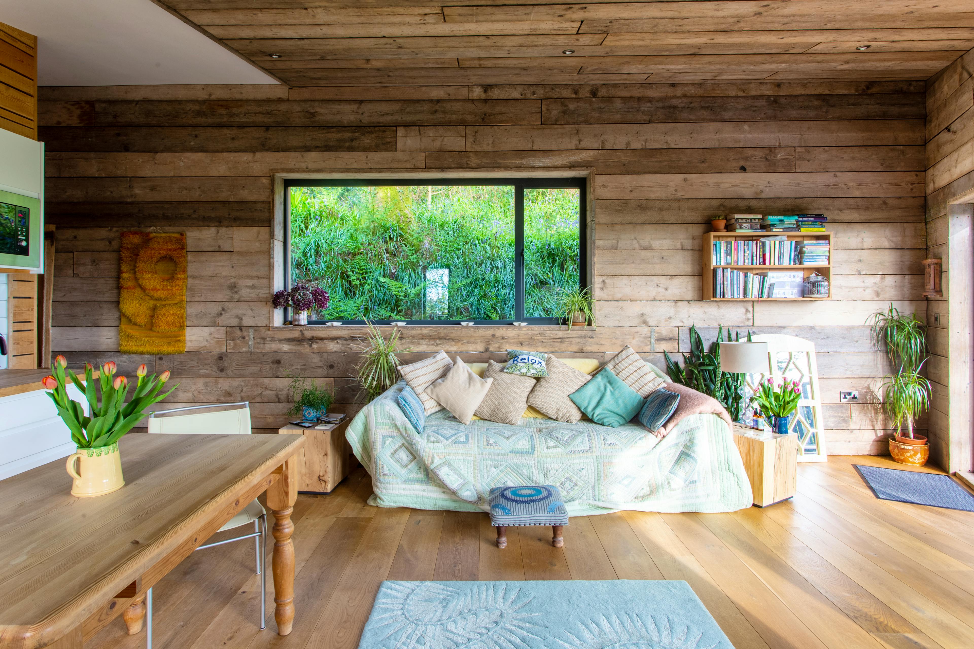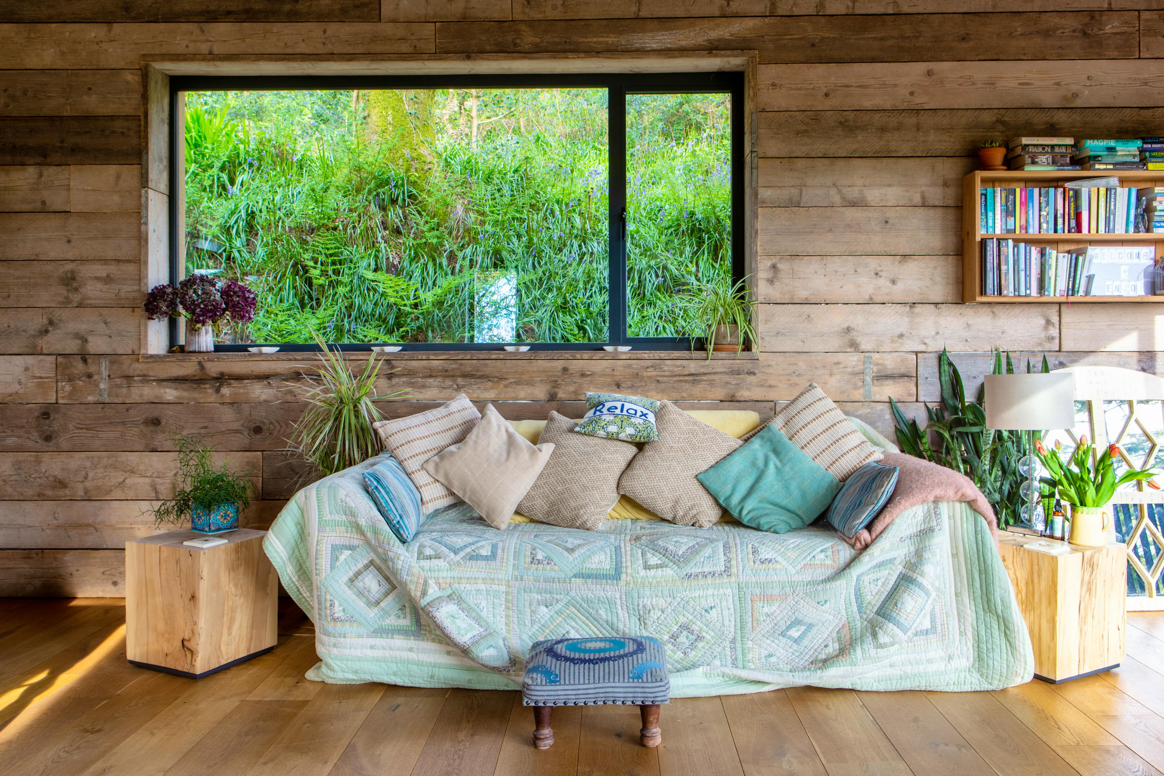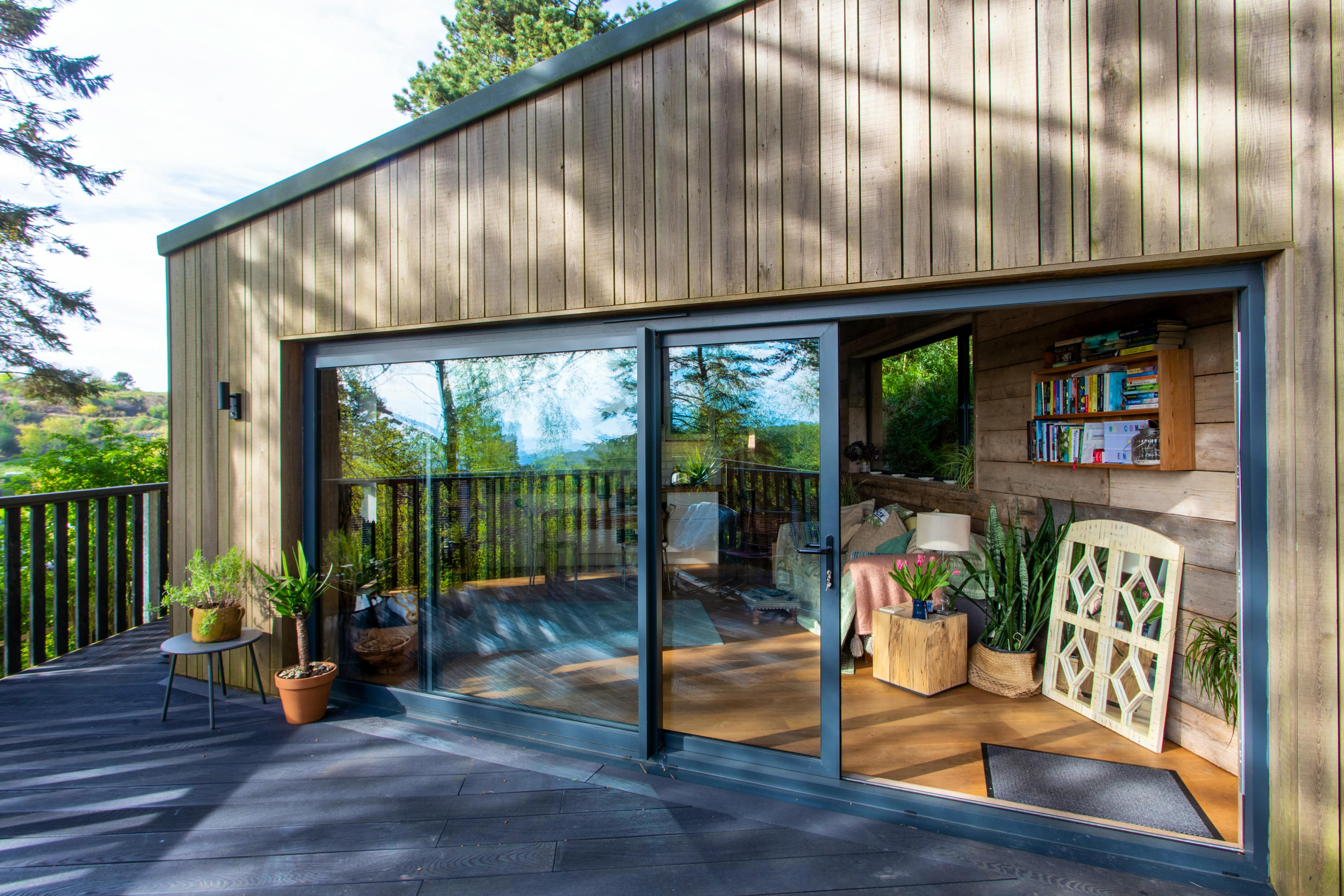 Luxurious timber framed chalet nestled into the hillside close to heathland walks and beaches with cosy interior and open deck in Morcombelake, Dorset.